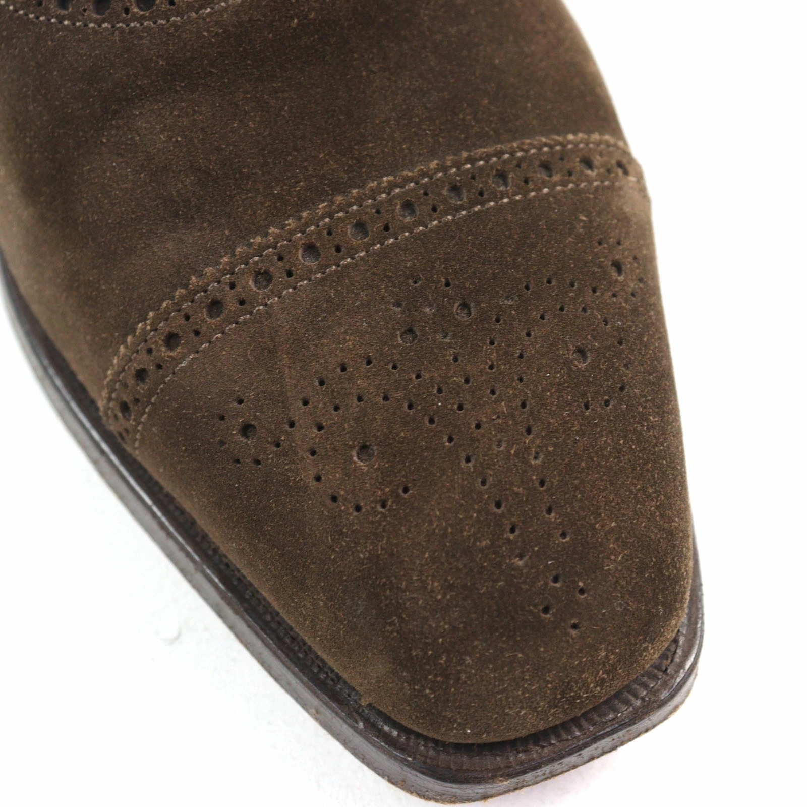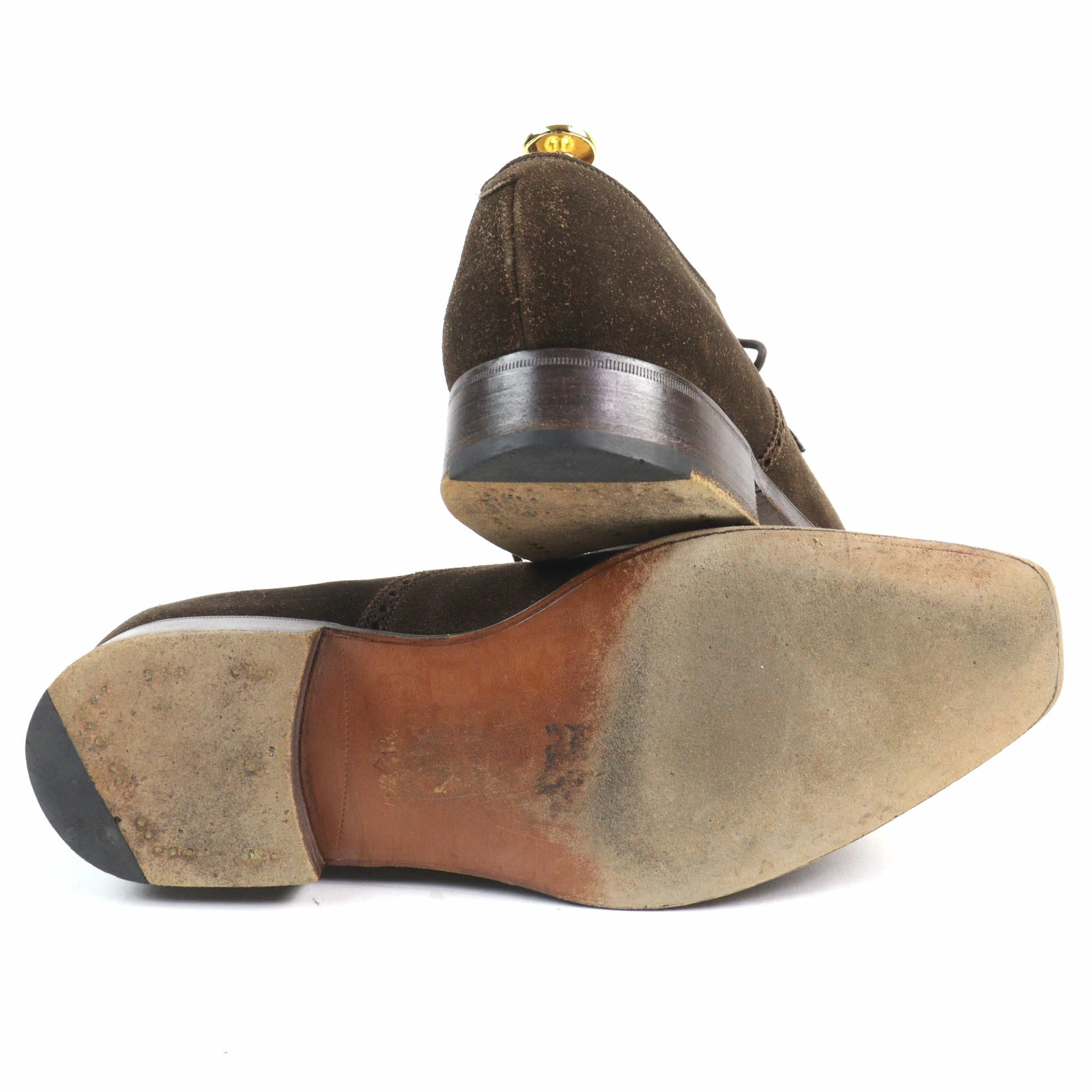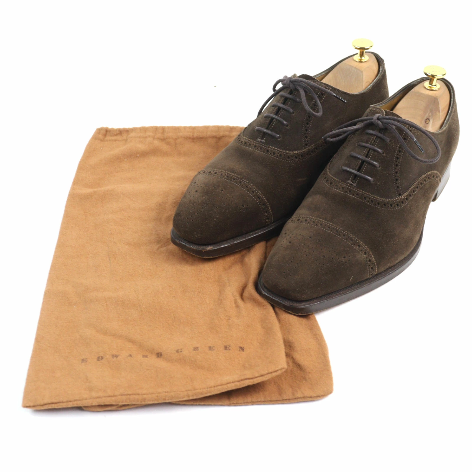 Excellent condition Edward Green CADOGAN suede leather shoes, 888 last, semi-brogue style, wingtip style, lace-up style, brown, size 8.5, made in England, dust bag included. Pre-owned.