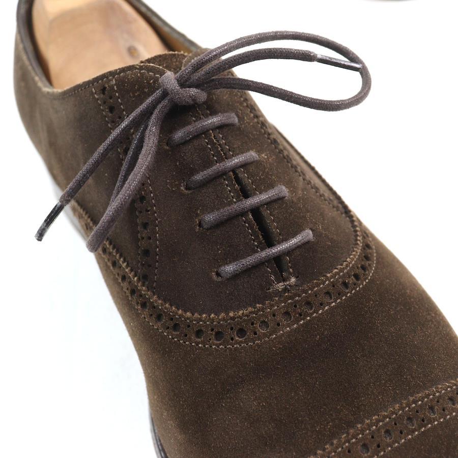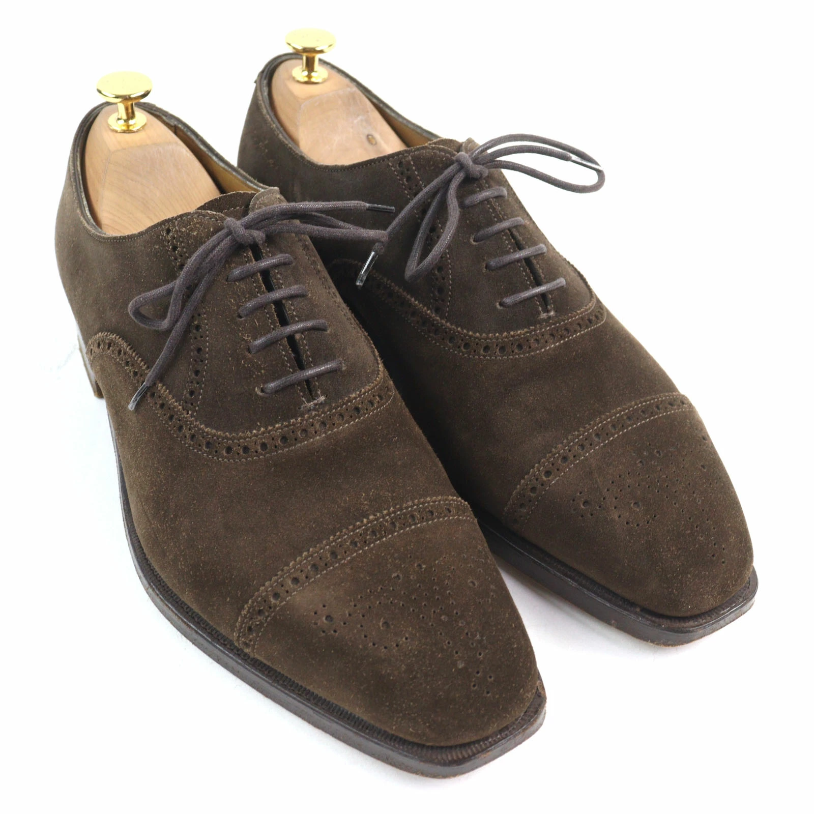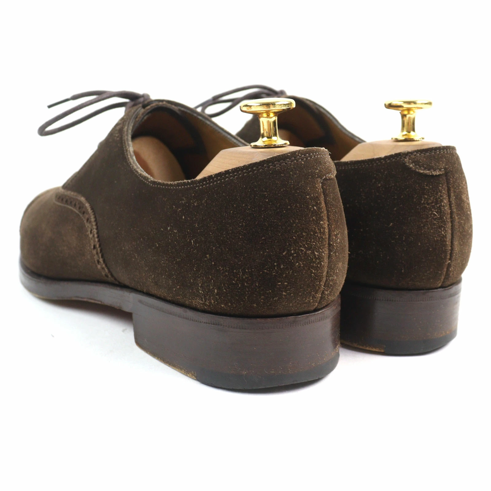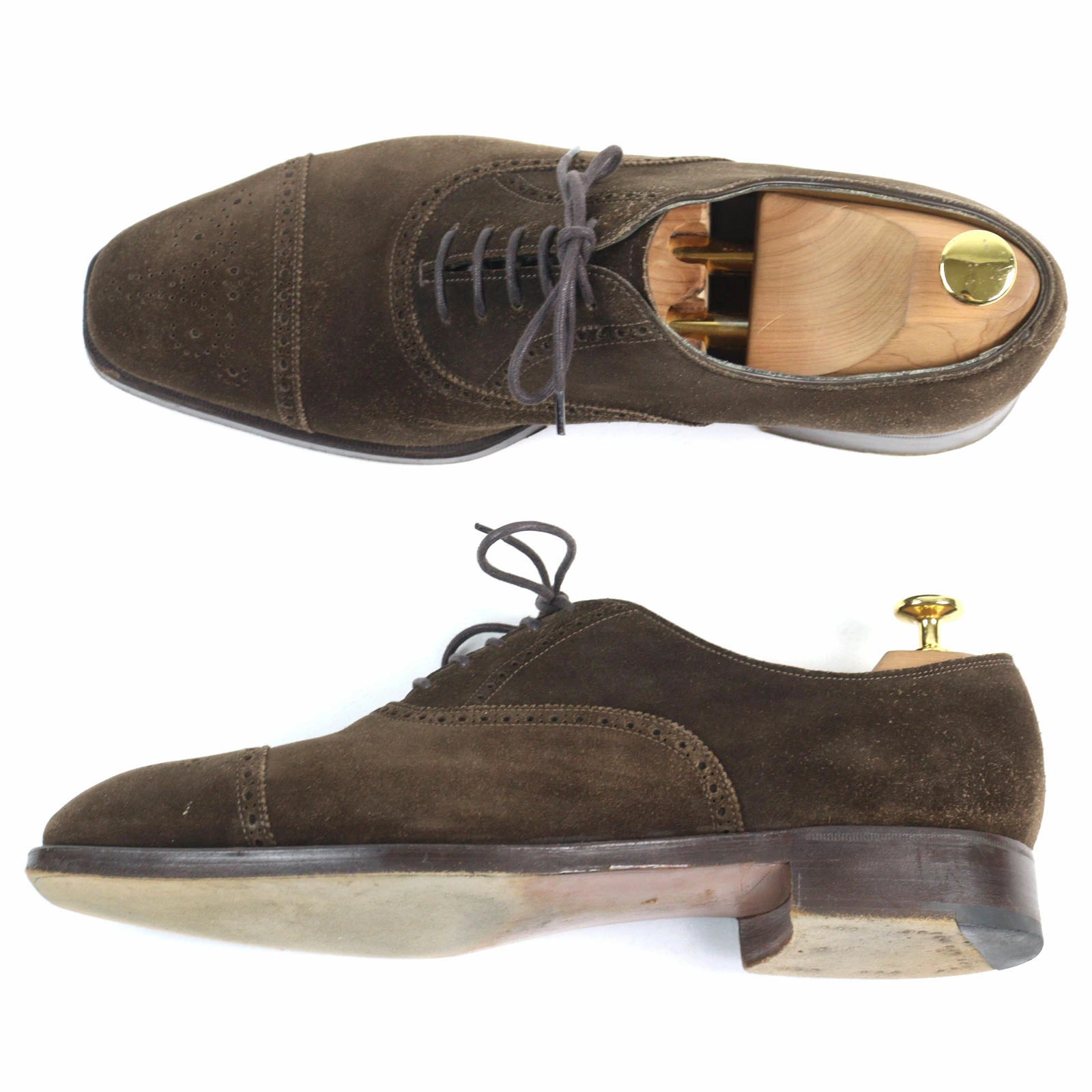 Excellent condition Edward Green CADOGAN suede leather shoes, 888 last, semi-brogue style, wingtip style, lace-up style, brown, size 8.5, made in England, dust bag included. Pre-owned.