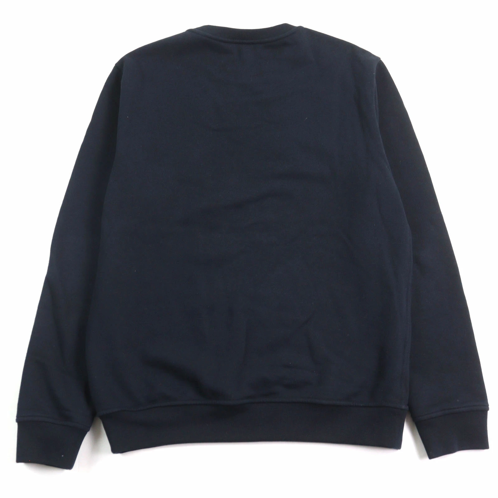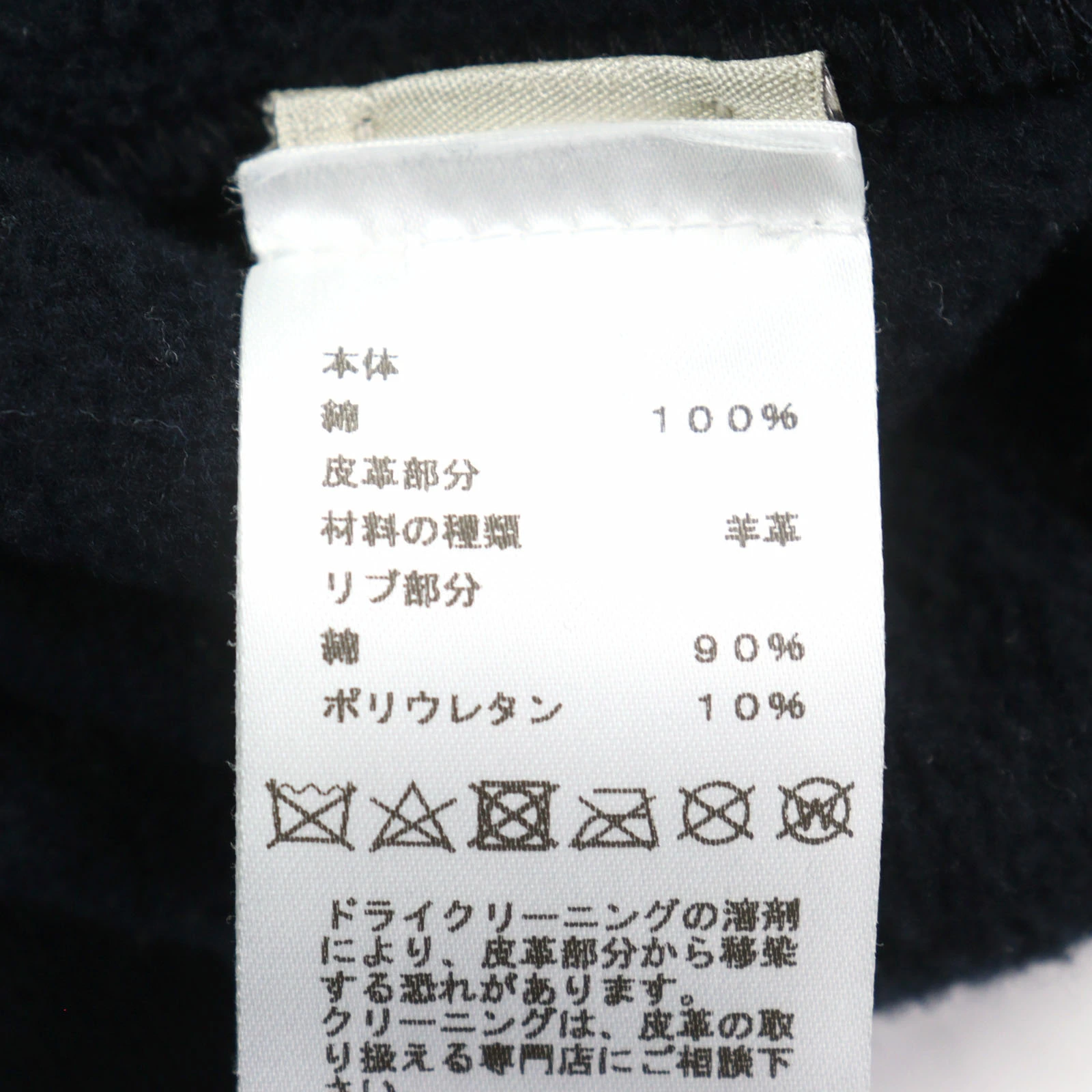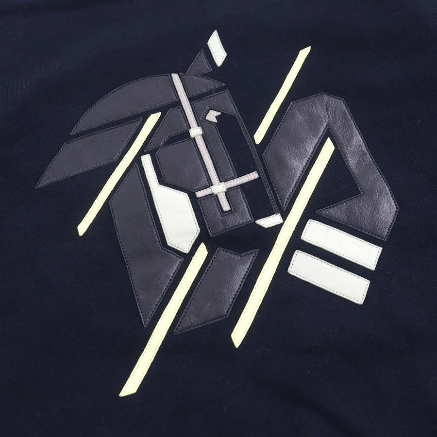 Excellent condition HERMES 23SS Chevaux en Symmetrie crew neck pullover sweatshirt, 100% cotton, sheepskin leather with leather patches and a brushed lining, size S, navy, made in Italy, authentic, pre-owned.