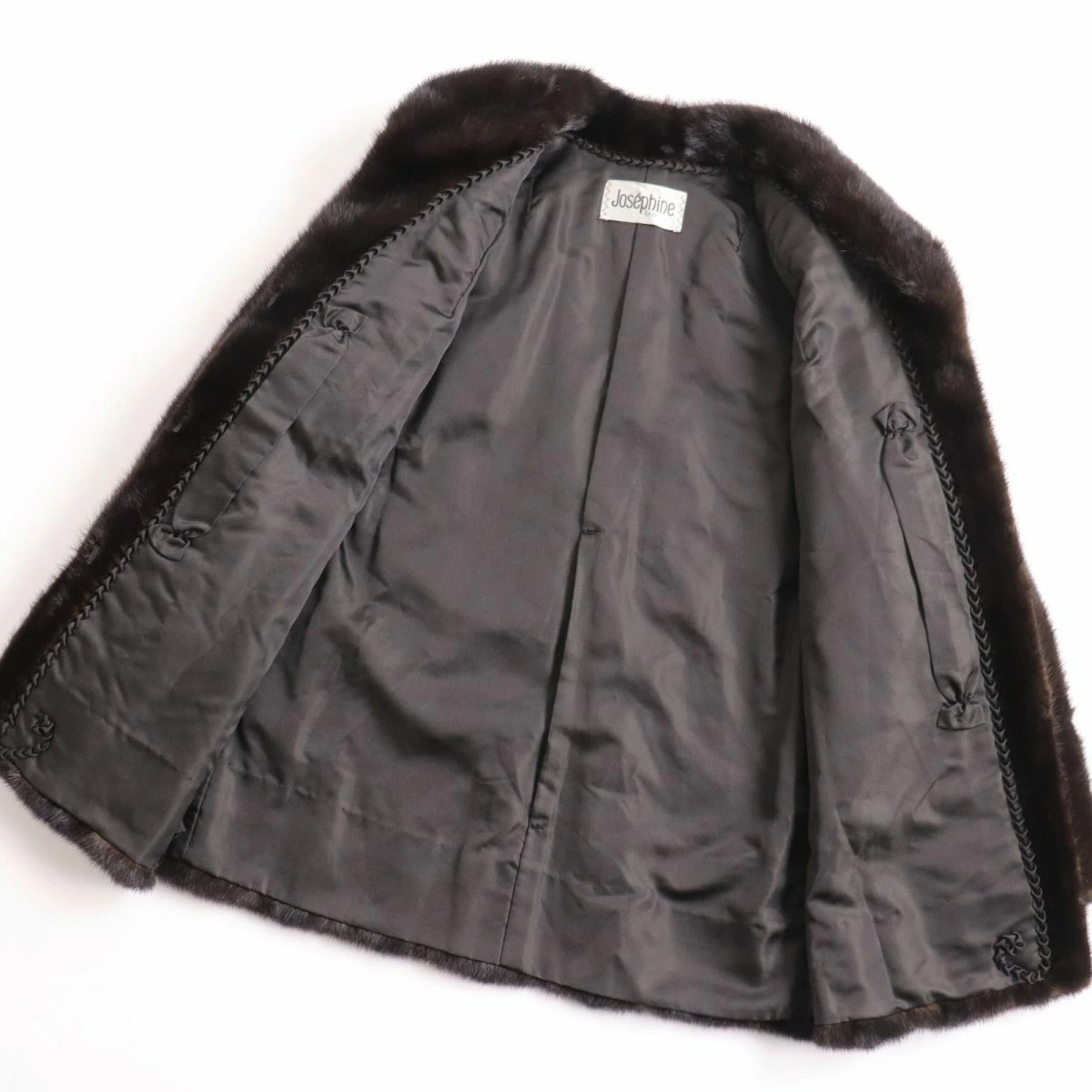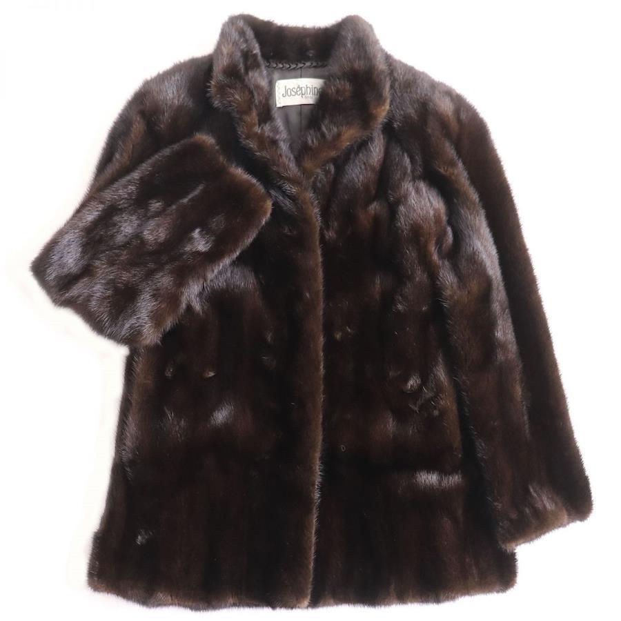 Excellent condition: Josephine reverse-combed genuine fur short coat, dark brown, size 9. Shiny and soft fur. Pre-owned.