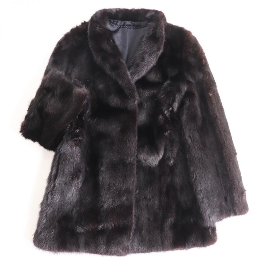 Excellent condition: Mink genuine fur short coat, jacket, dark brown (close to black), size 9. Shiny and soft fur. [Pre-owned]