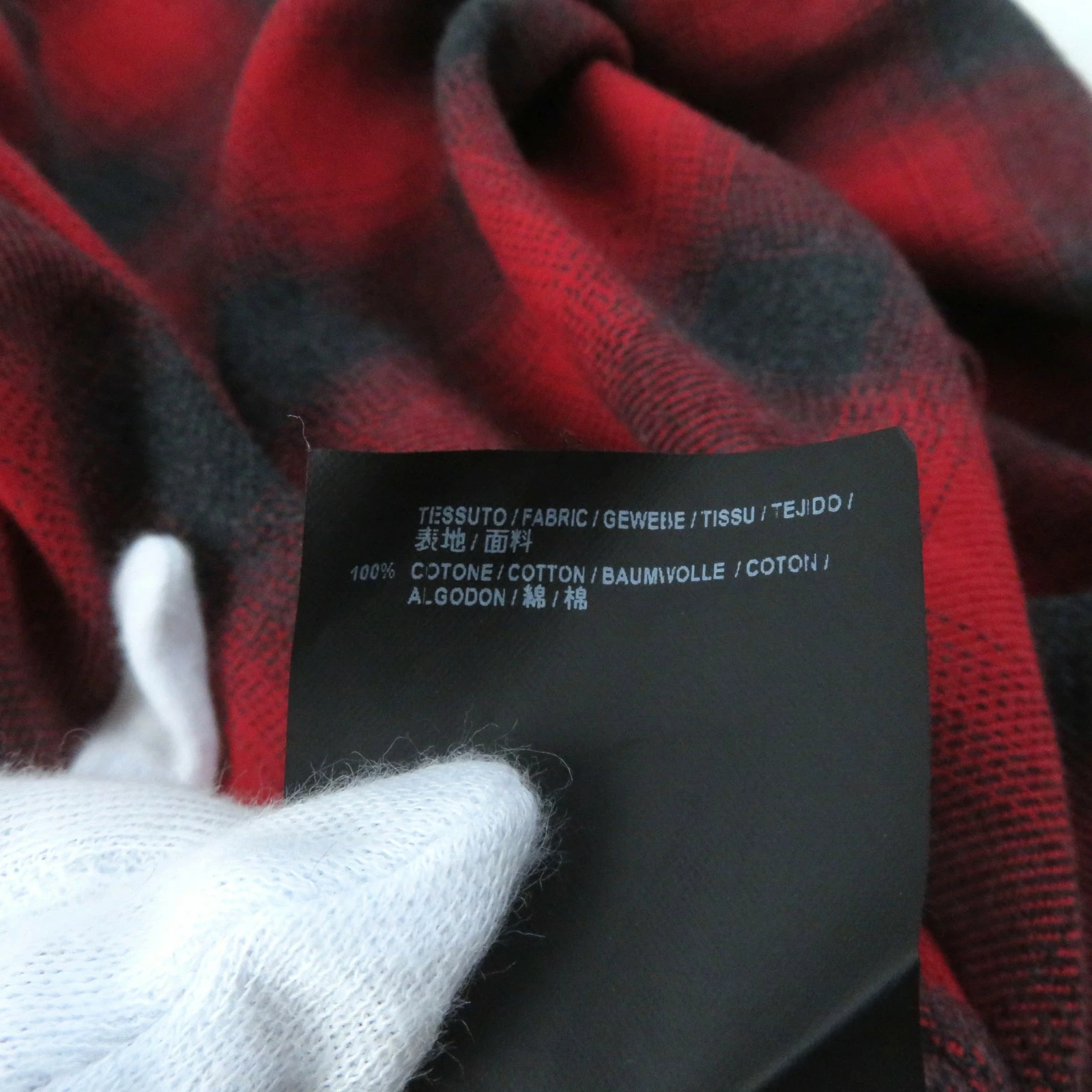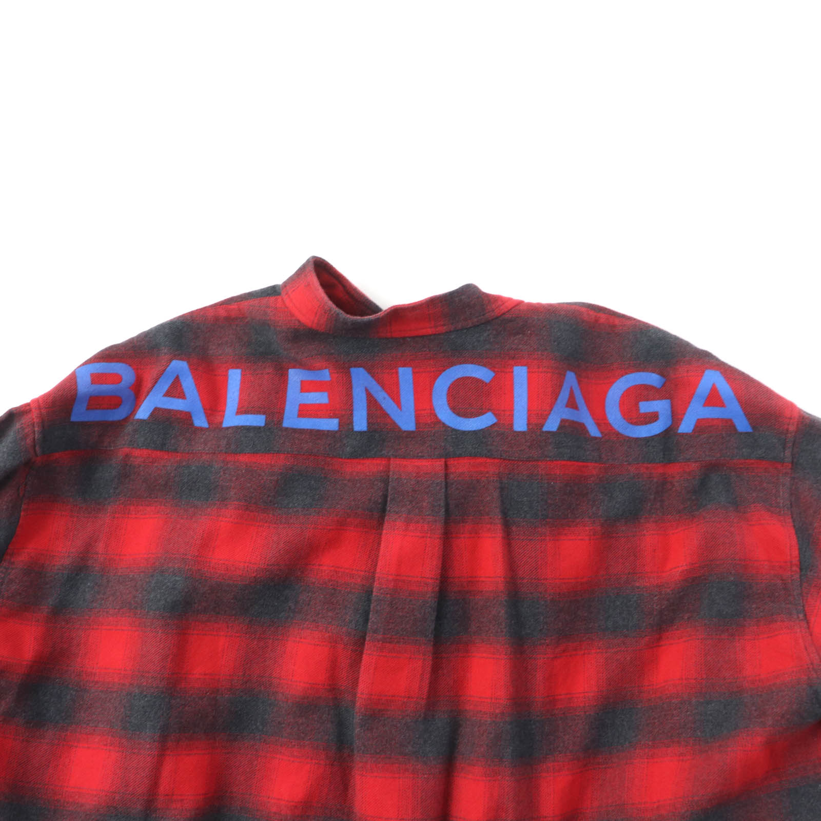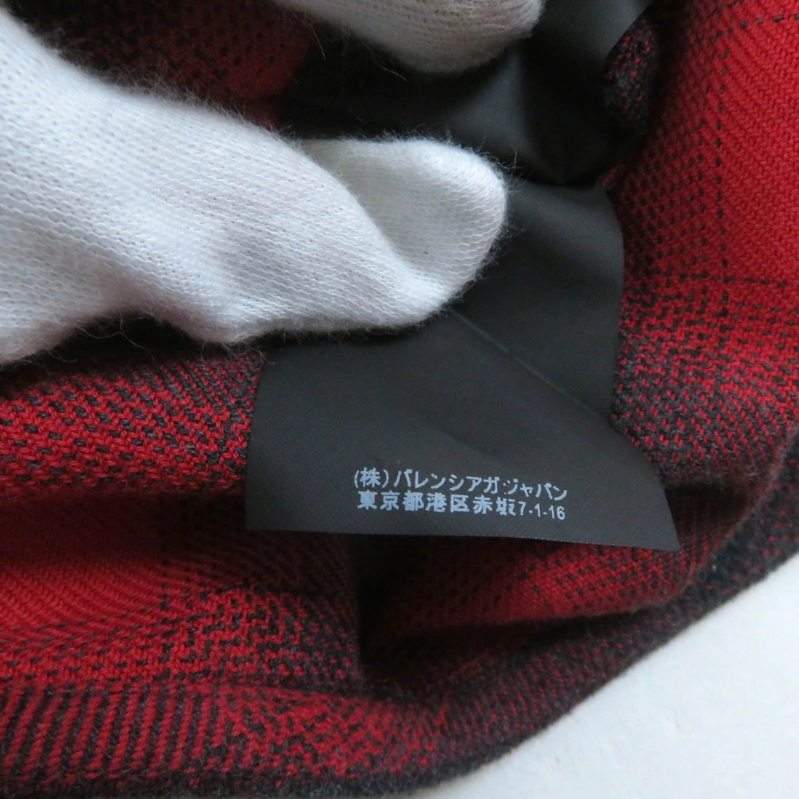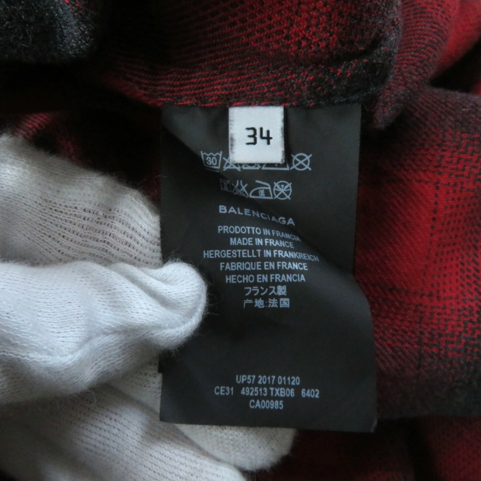 Excellent condition BALENCIAGA New Swing 492513 100% cotton long-sleeved shirt with a check pattern and back logo print, red and black, size 34, made in France, authentic, women's [pre-owned]