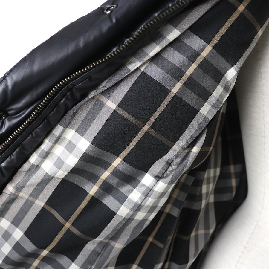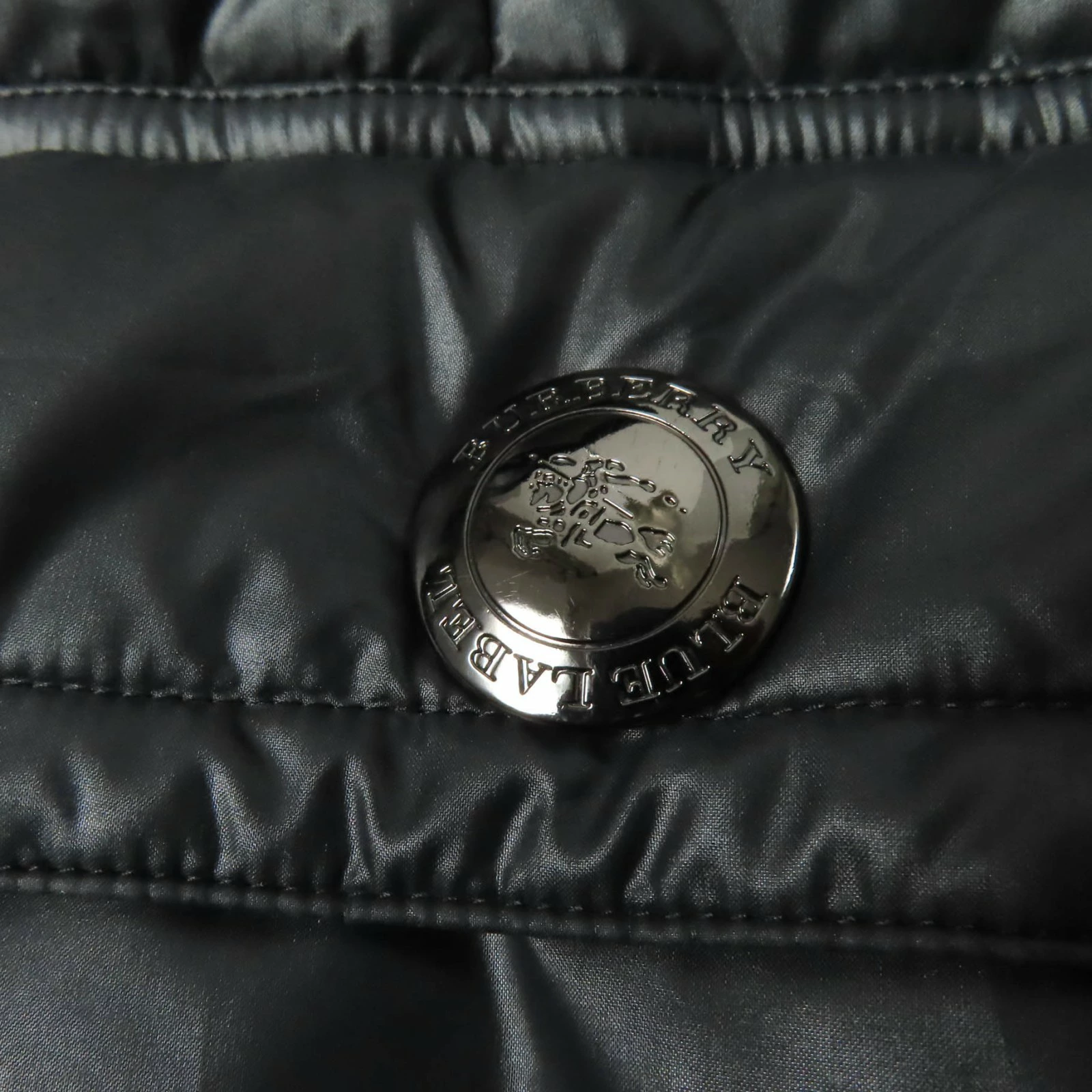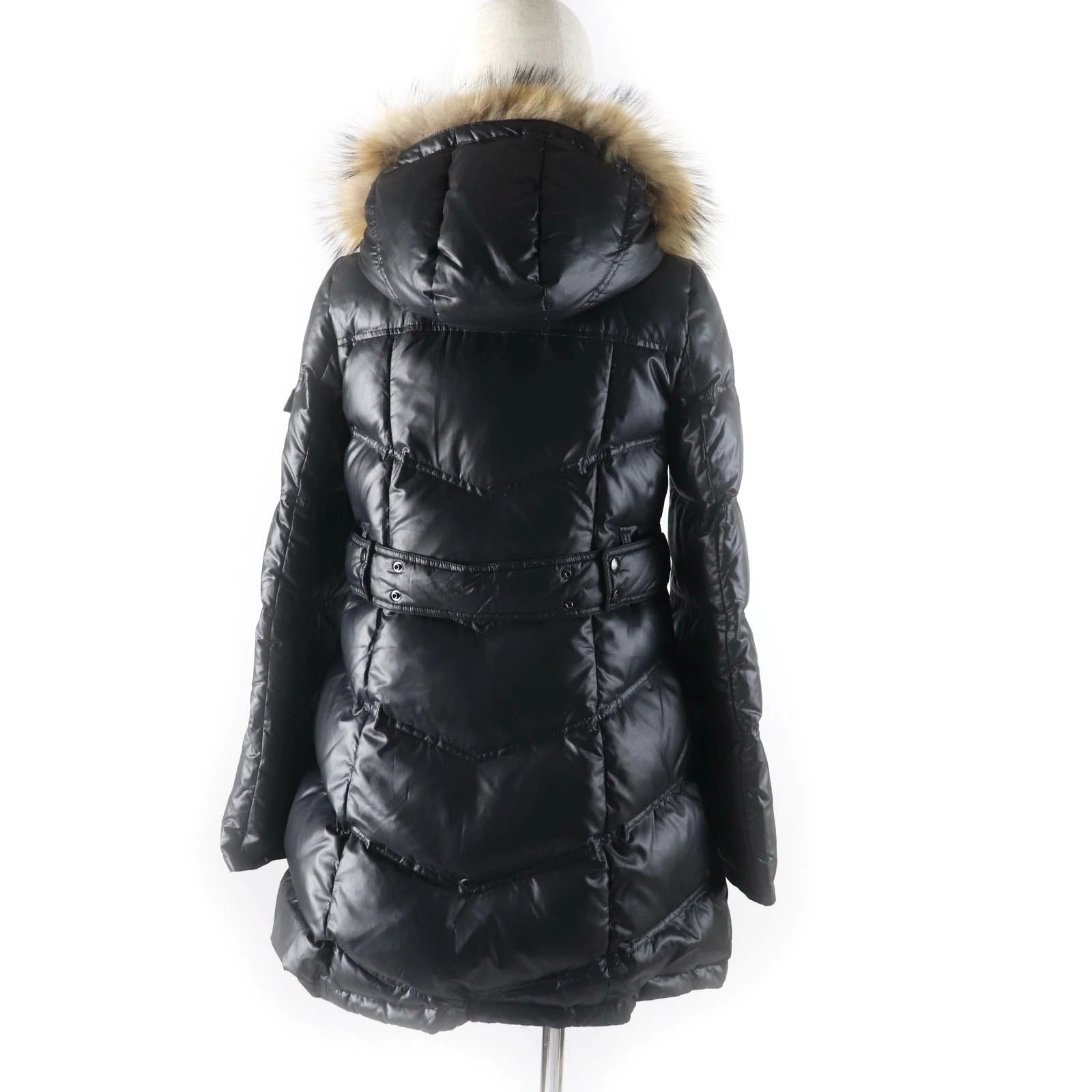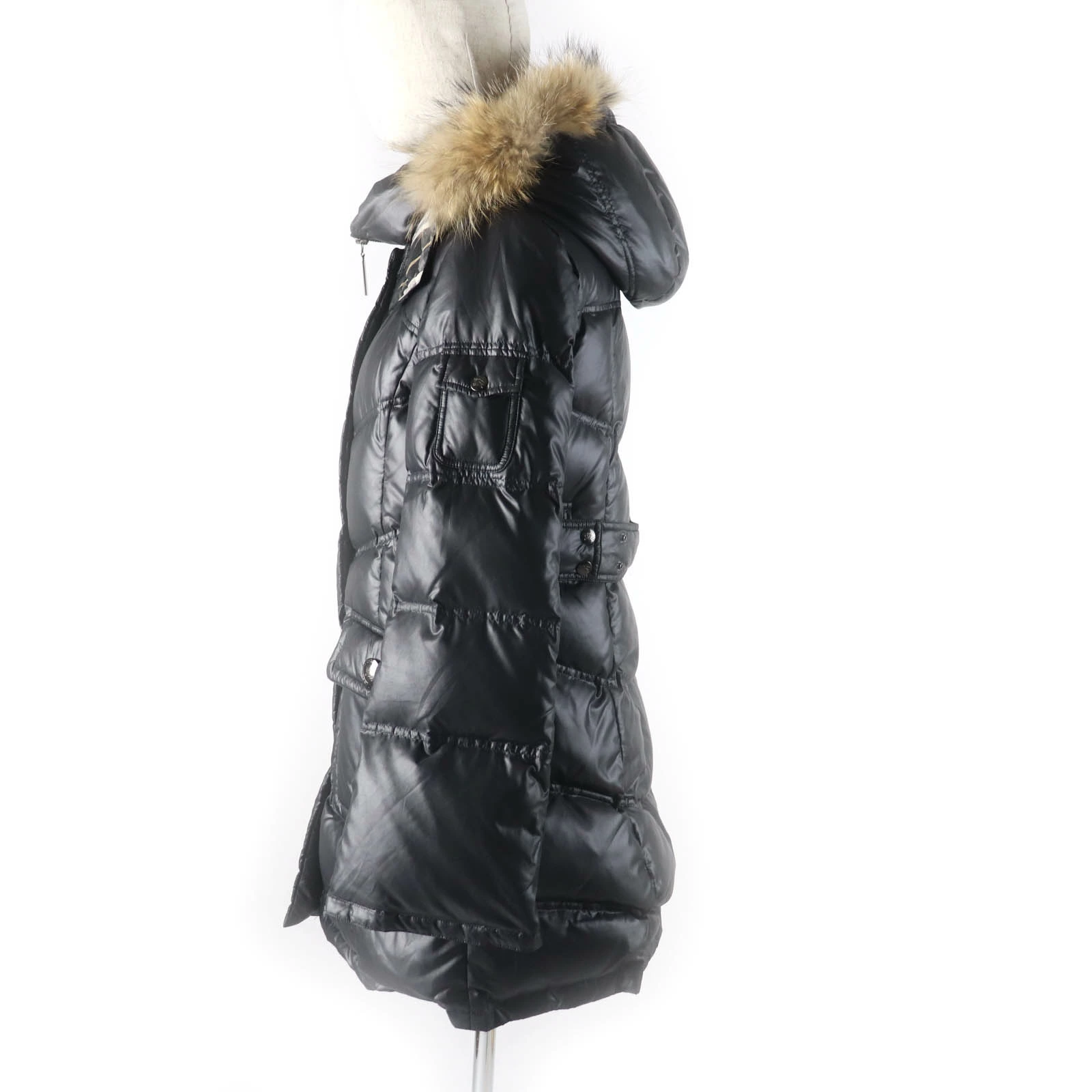 Excellent condition BURBERRY BLUE LABEL FRF09-693-09 raccoon fur down coat with hood and belt, checkered lining, black, size 40, authentic, women's [pre-owned]