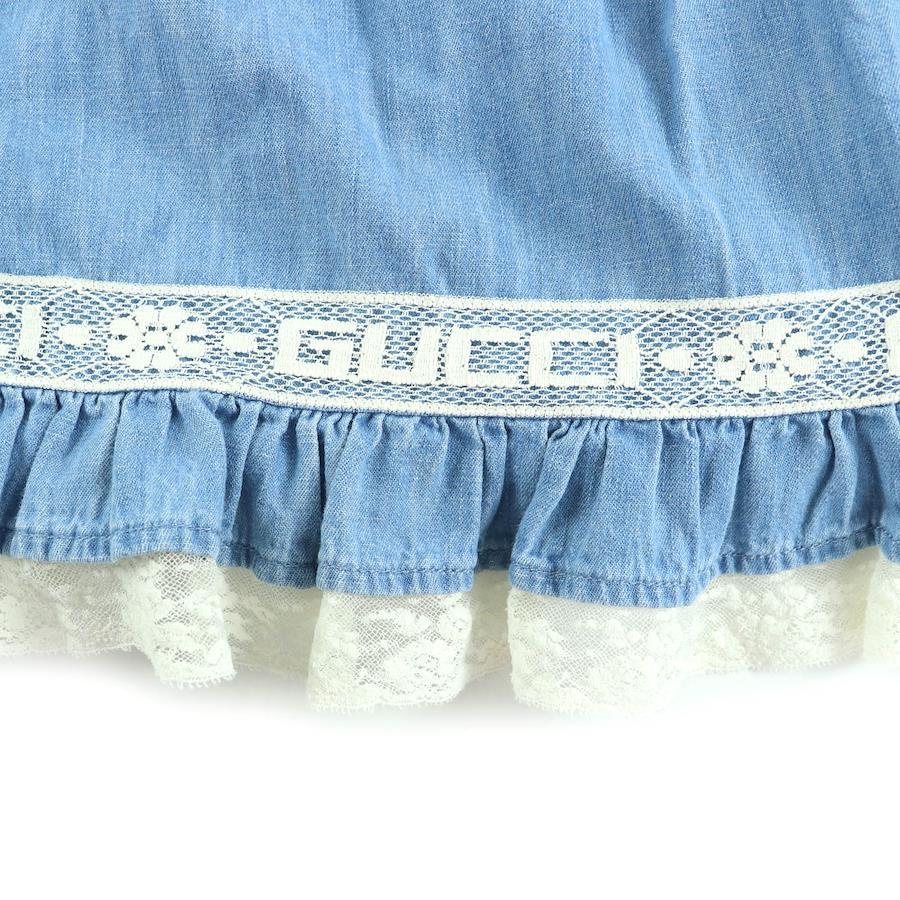 Excellent condition GUCCI 527609 cotton dungaree skirt with logo lace, long length, indigo, size 38, with box, made in Italy, authentic, women's [pre-owned]