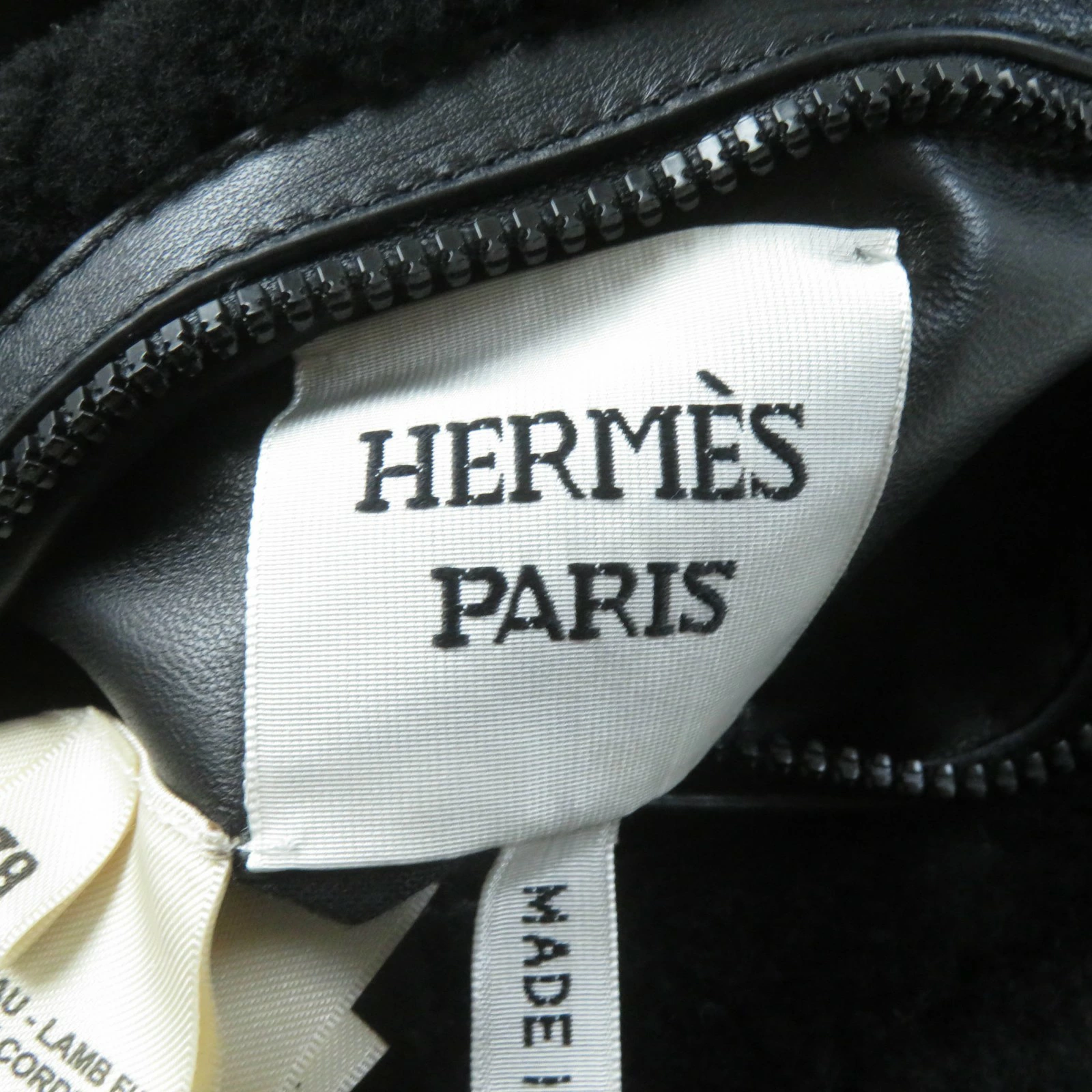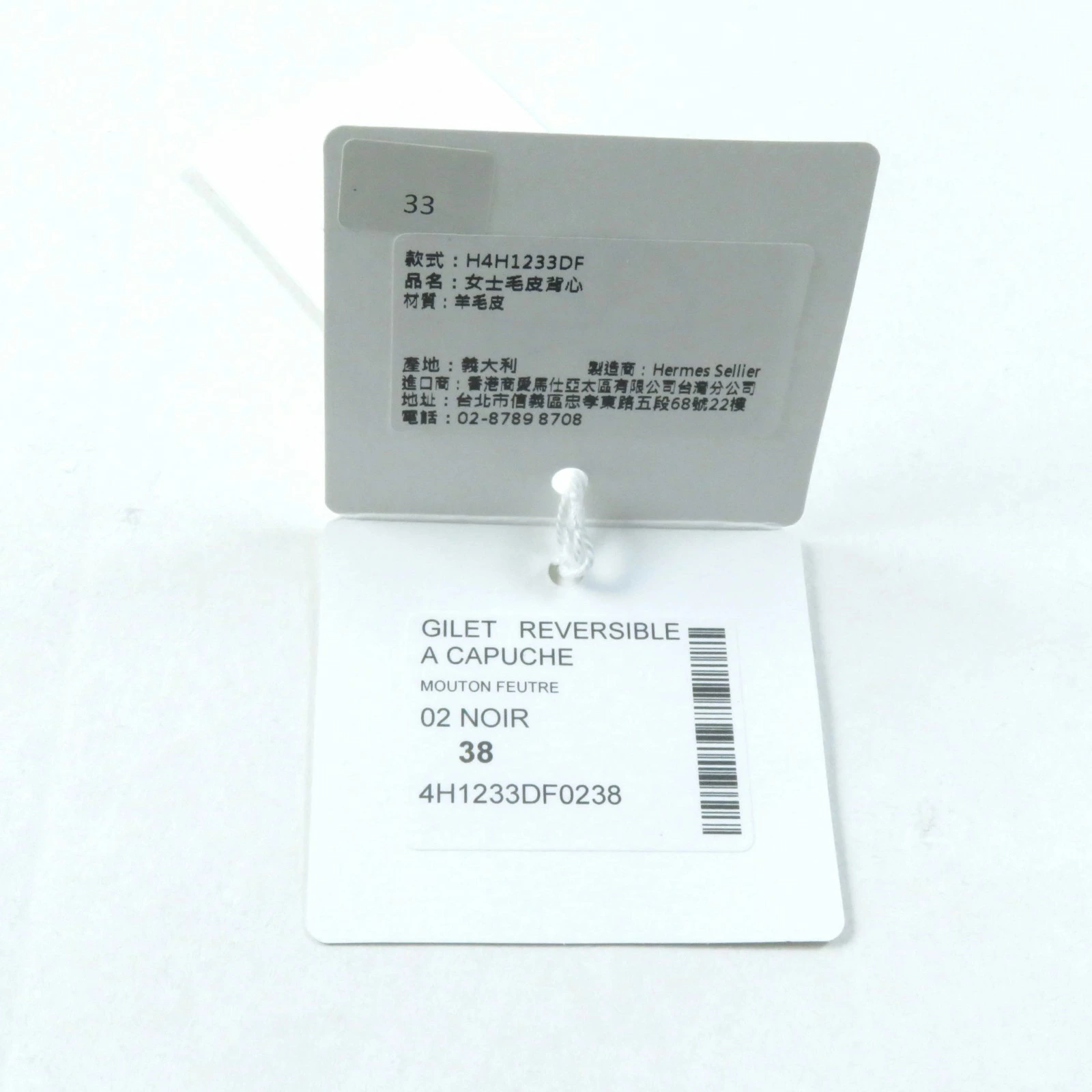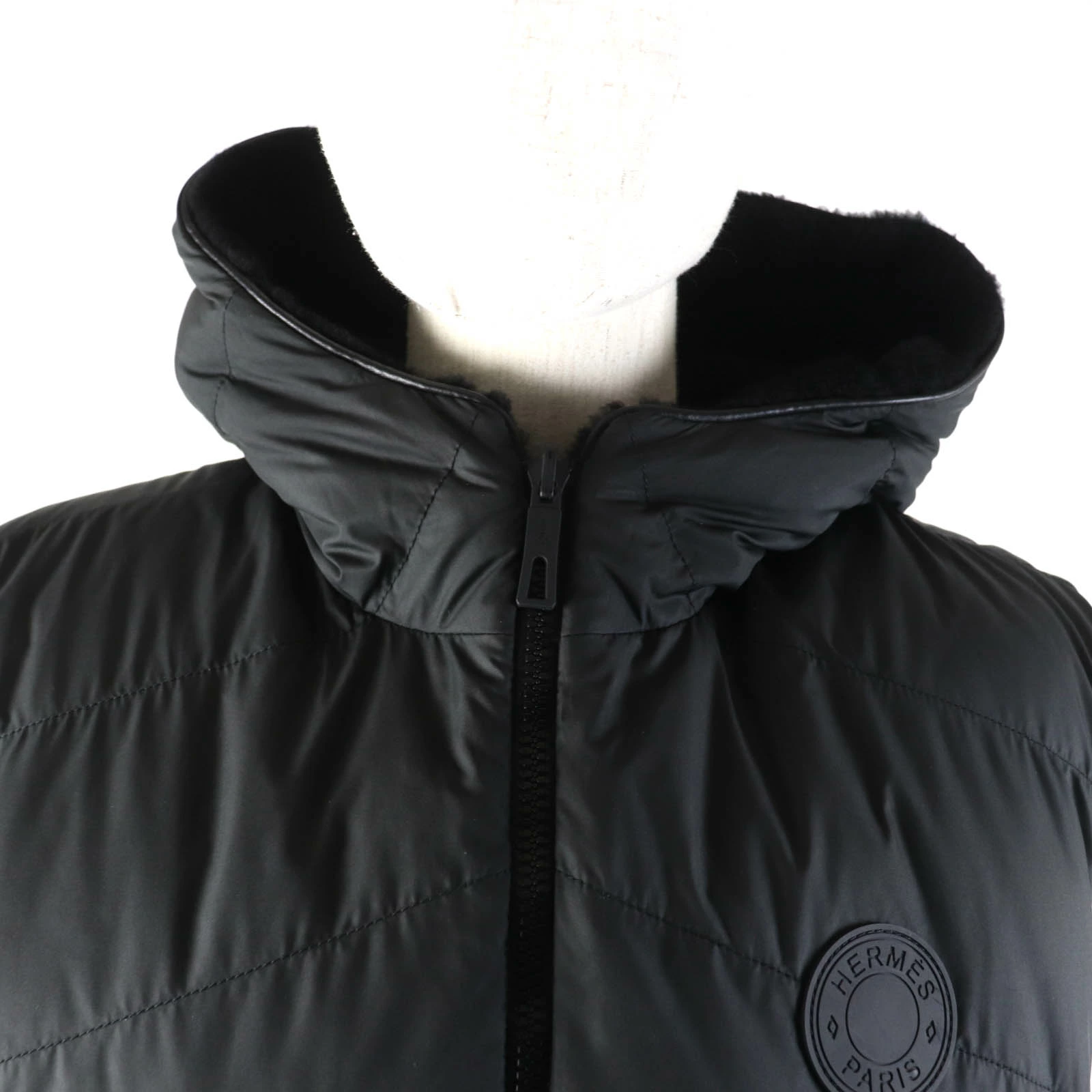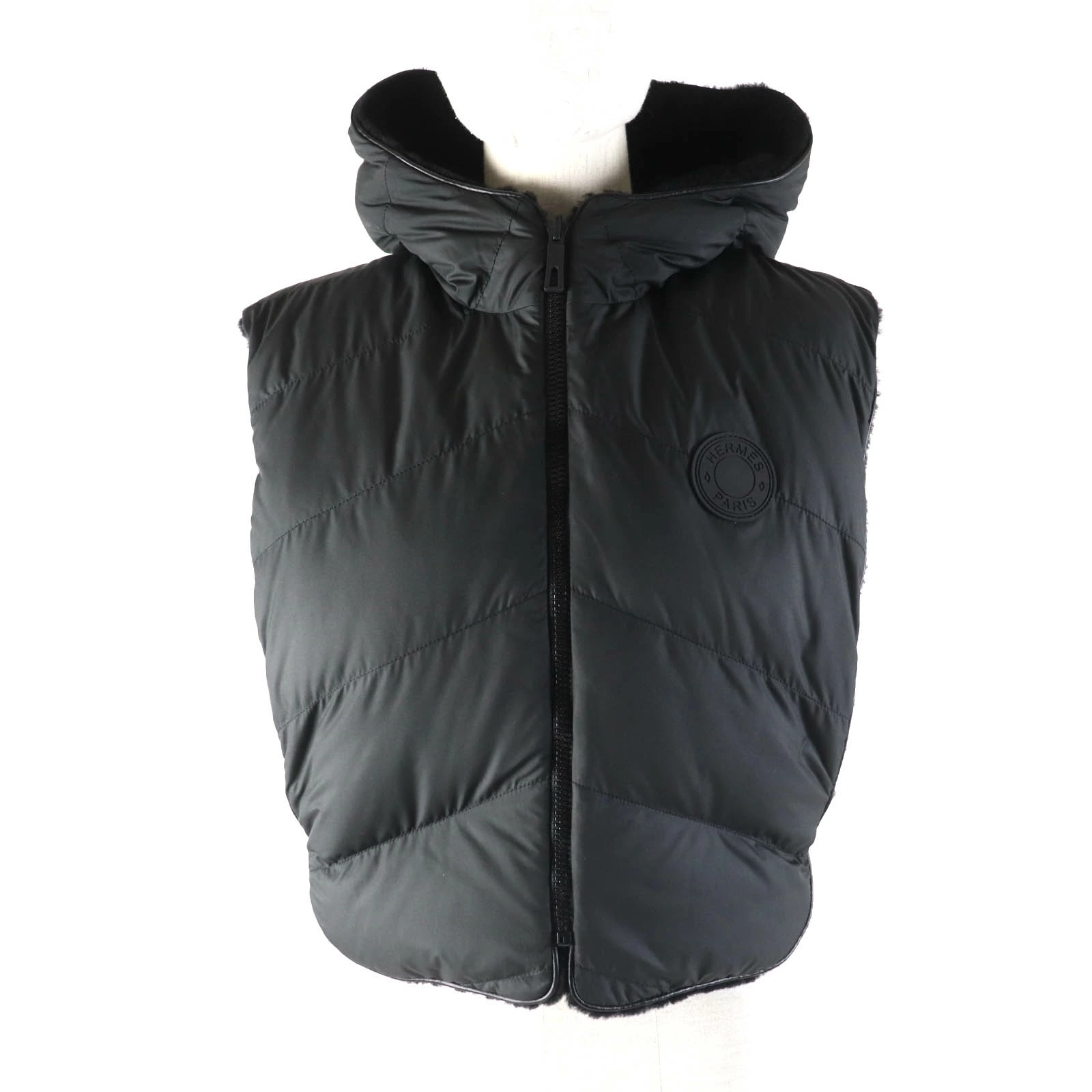 Excellent condition HERMES 24AW 4H1233DF reversible leather and lamb fur down vest with Serie patch, black, size 38, made in Italy, women's [pre-owned]