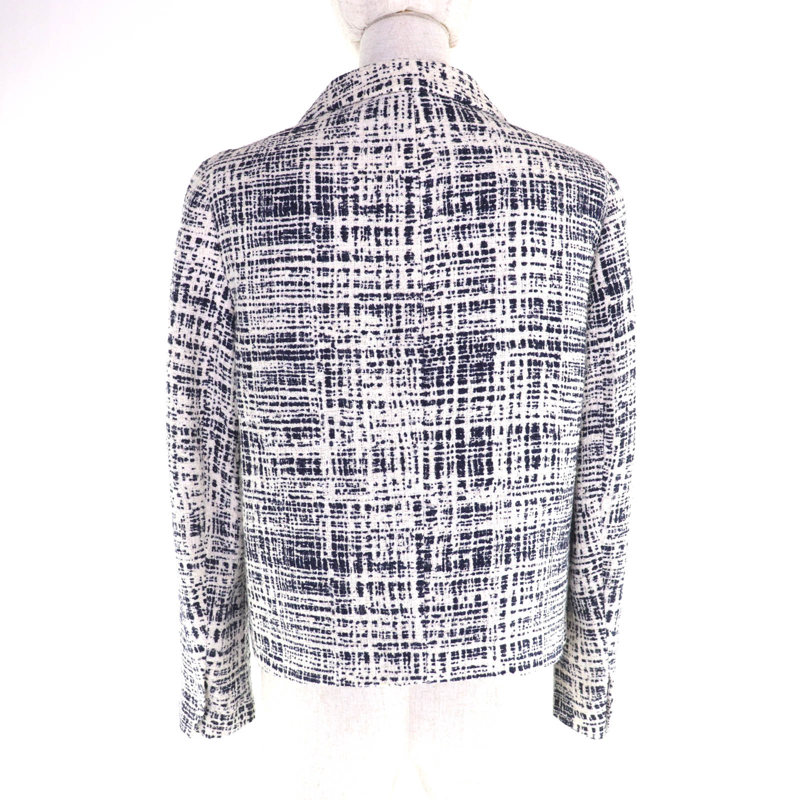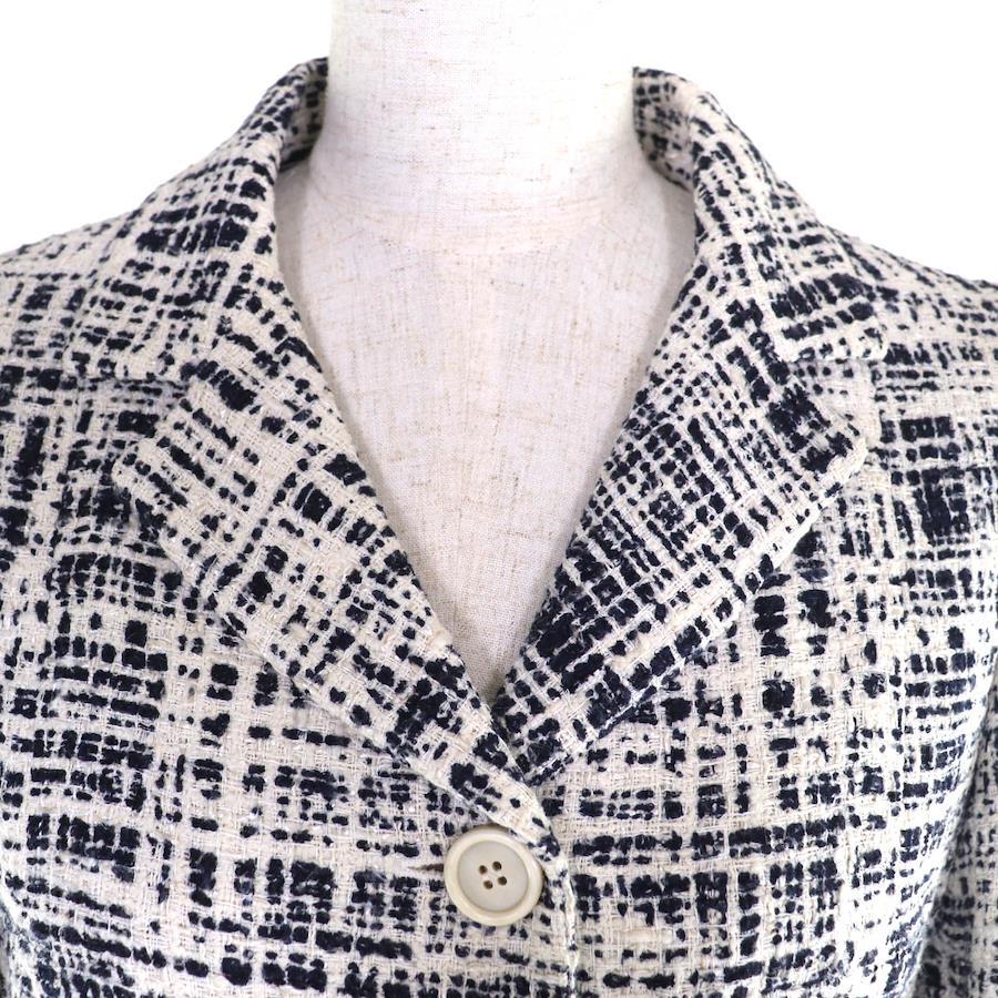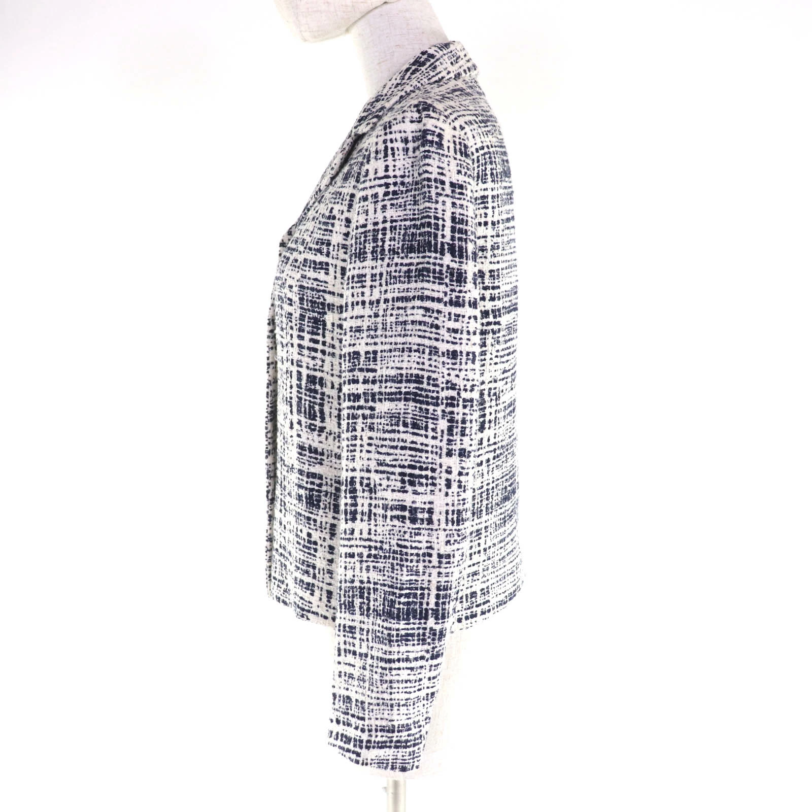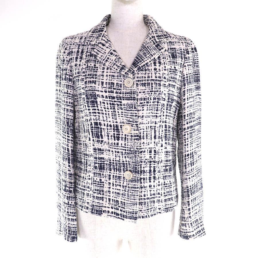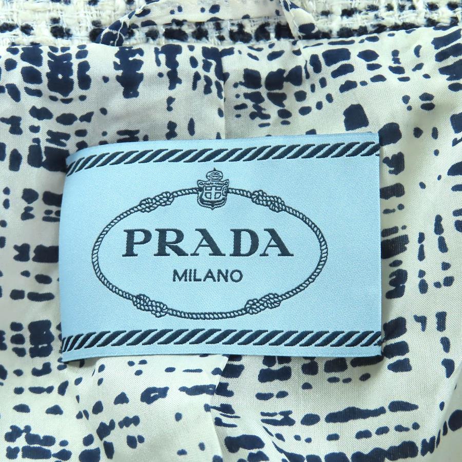 Excellent condition PRADA 100% silk lining tweed jacket, single-breasted, white, navy, size 44, made in Italy, authentic, women's [pre-owned]