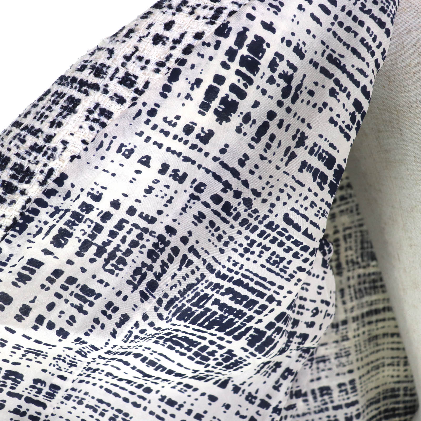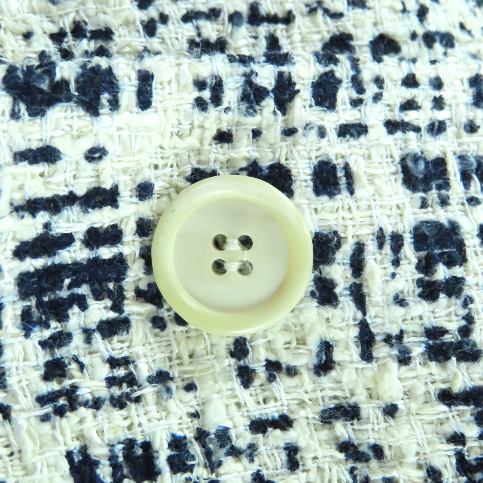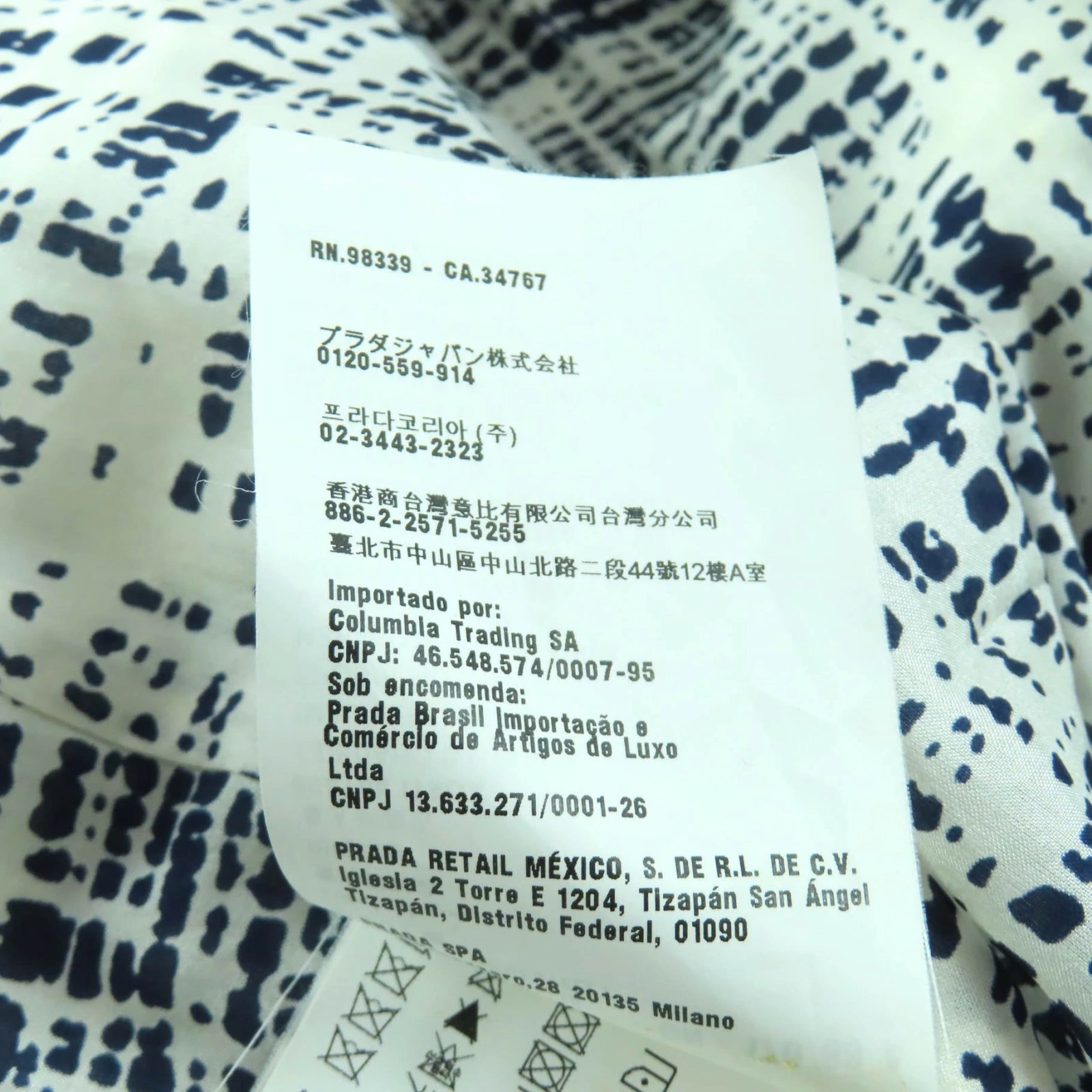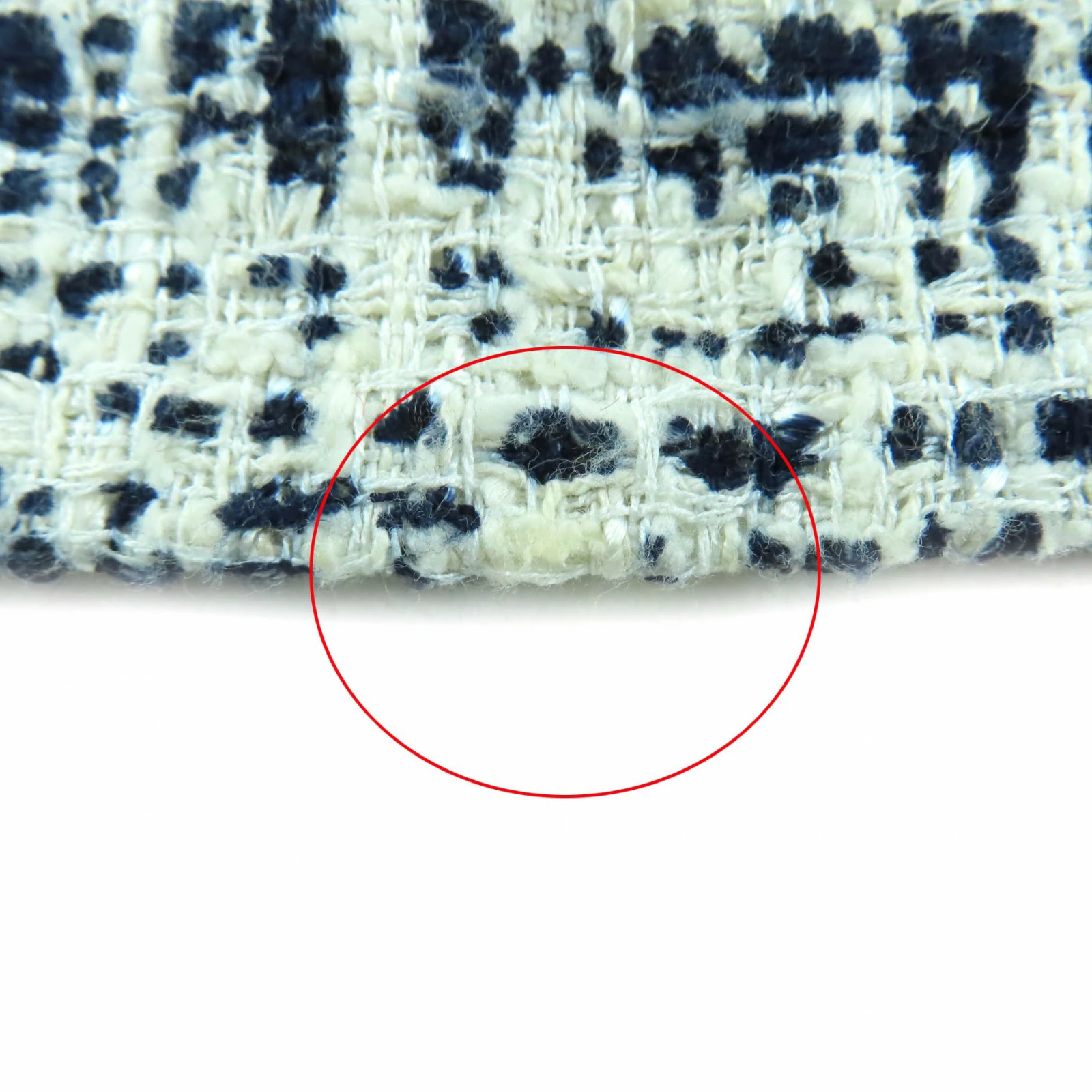 Excellent condition PRADA 100% silk lining tweed jacket, single-breasted, white, navy, size 44, made in Italy, authentic, women's [pre-owned]