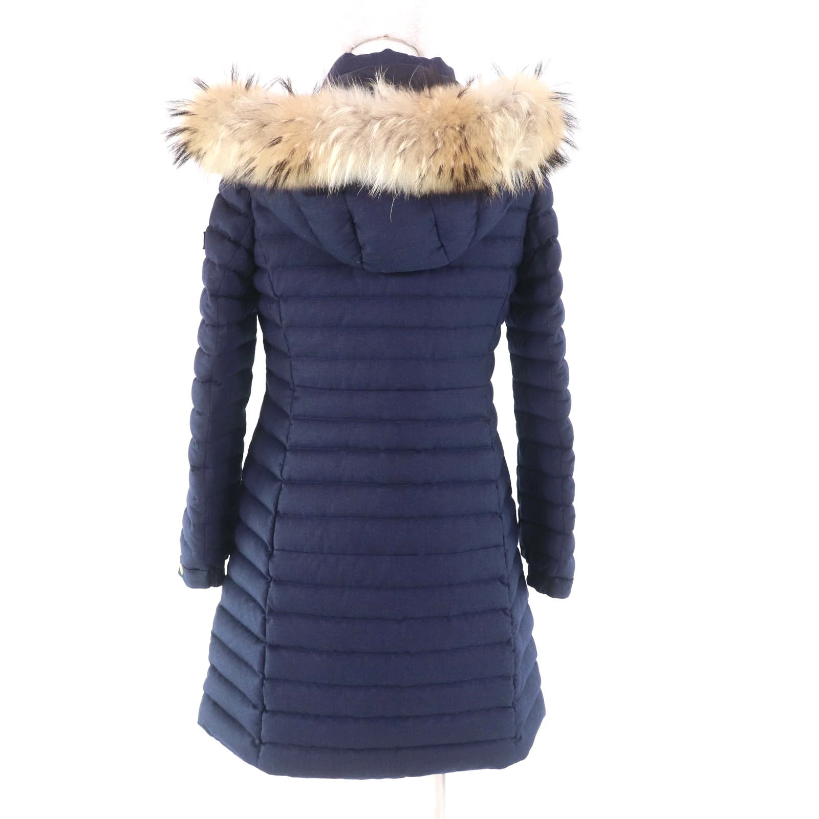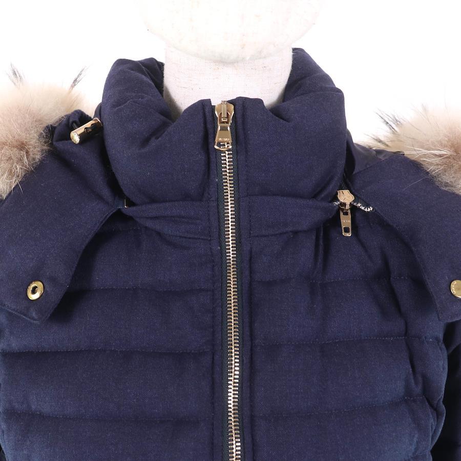 | 素材 (material) | 表地:ウール95% :シルク5% 中綿:ダウン90% :フェザー10% 裏地:ナイロン100% ファー:ラクーン | ||||||||||||||||