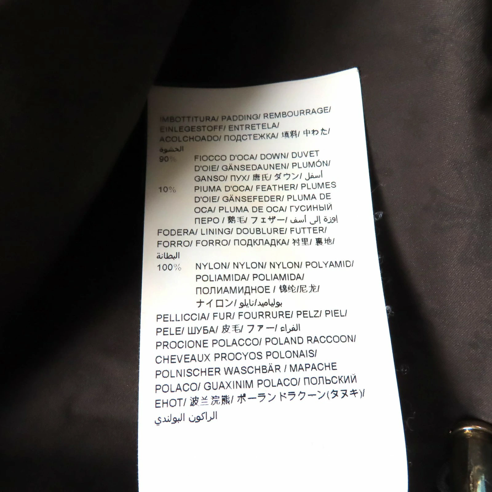 | 素材 (material) | 表地:ウール95% :シルク5% 中綿:ダウン90% :フェザー10% 裏地:ナイロン100% ファー:ラクーン 表地:ウール95% :シルク5% 中綿:ダウン90% :フェザー10% 裏地:ナイロン100% ファー:ラクーン | ||||||||||||||||