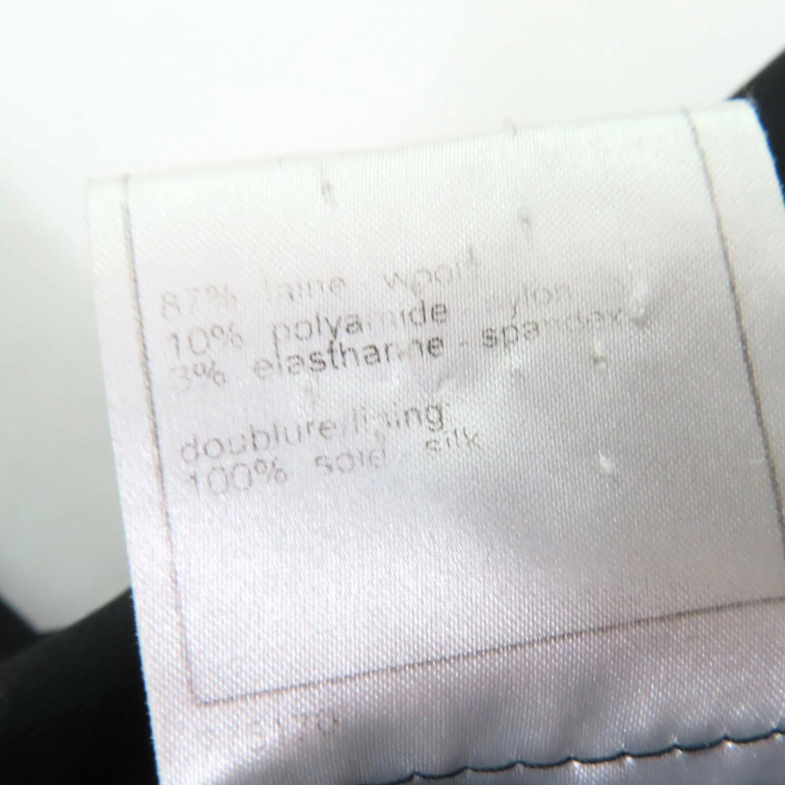 | 素材 (material) | 本体:ウール87% :ナイロン10% :エラステン3% 裏地:シルク100% | ||||||||||||||||