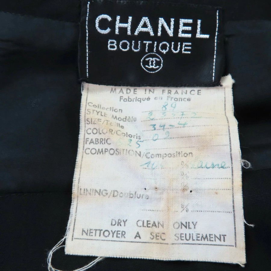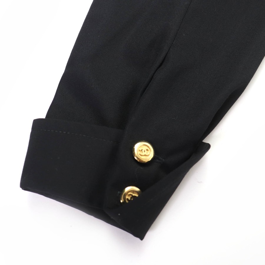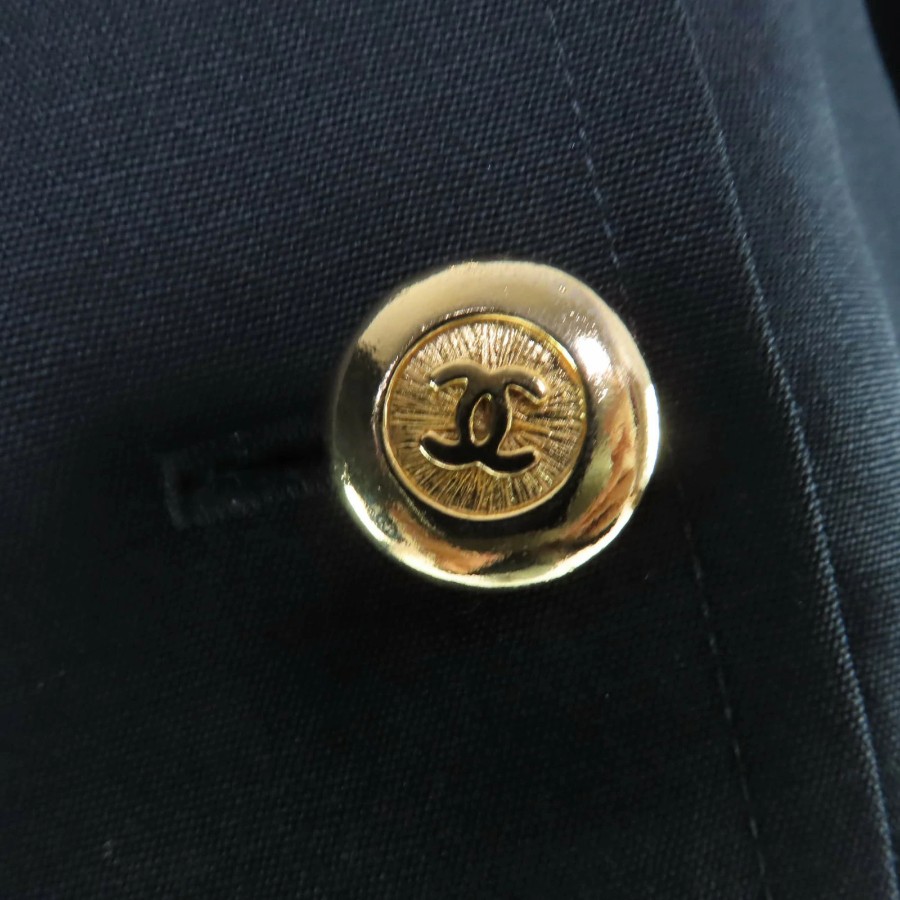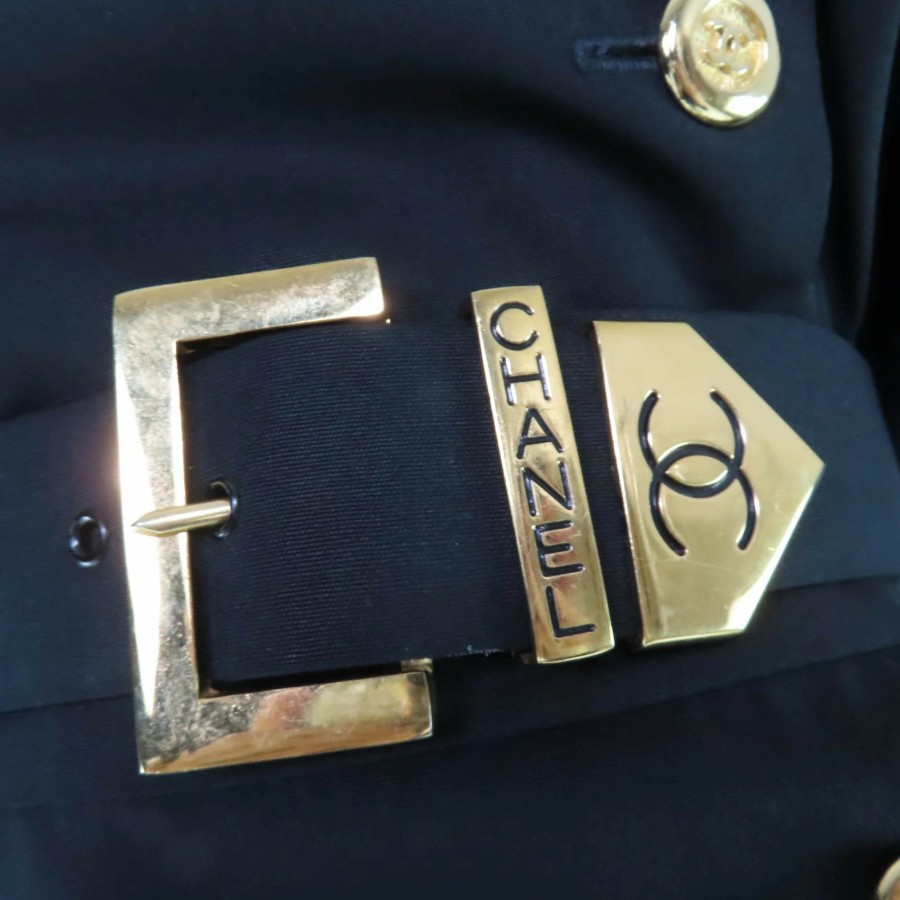 Excellent condition☆CHANEL vintage 23572 100% wool, Coco Mark button, belted, long-sleeved, fitted dress, black, size 34, made in France, women's [used]