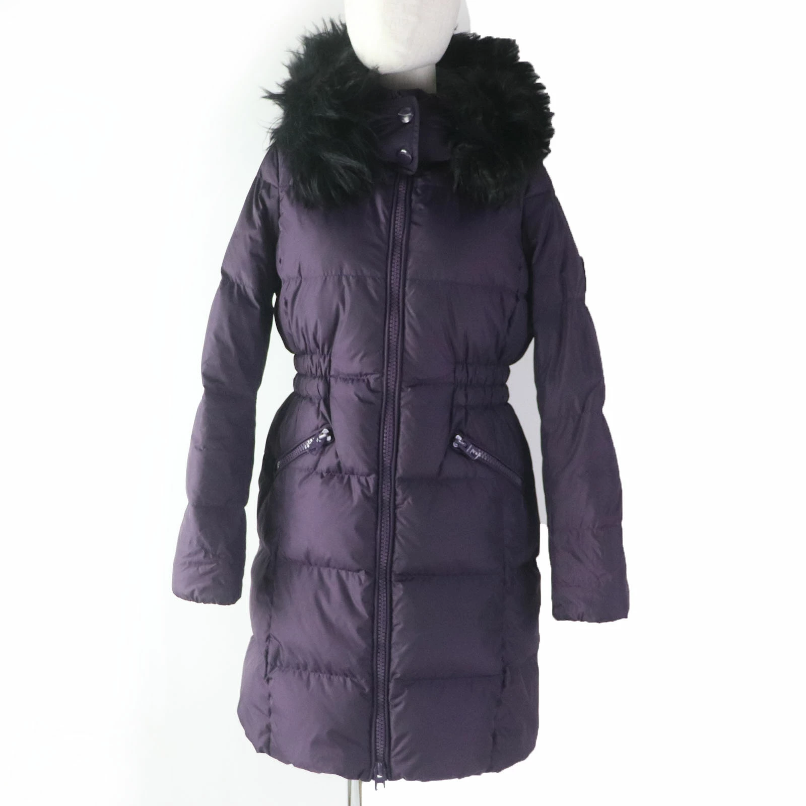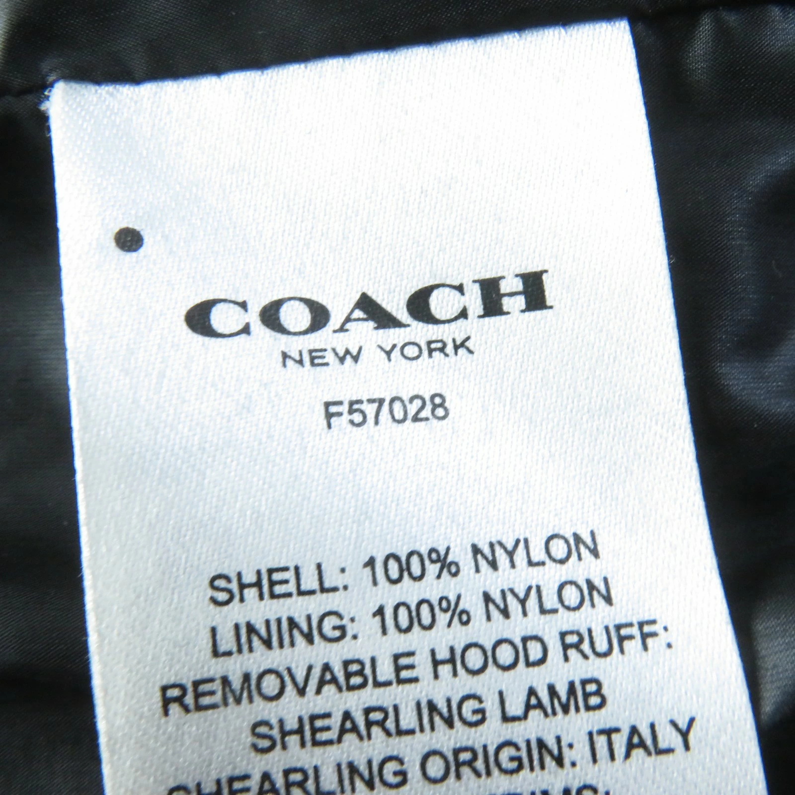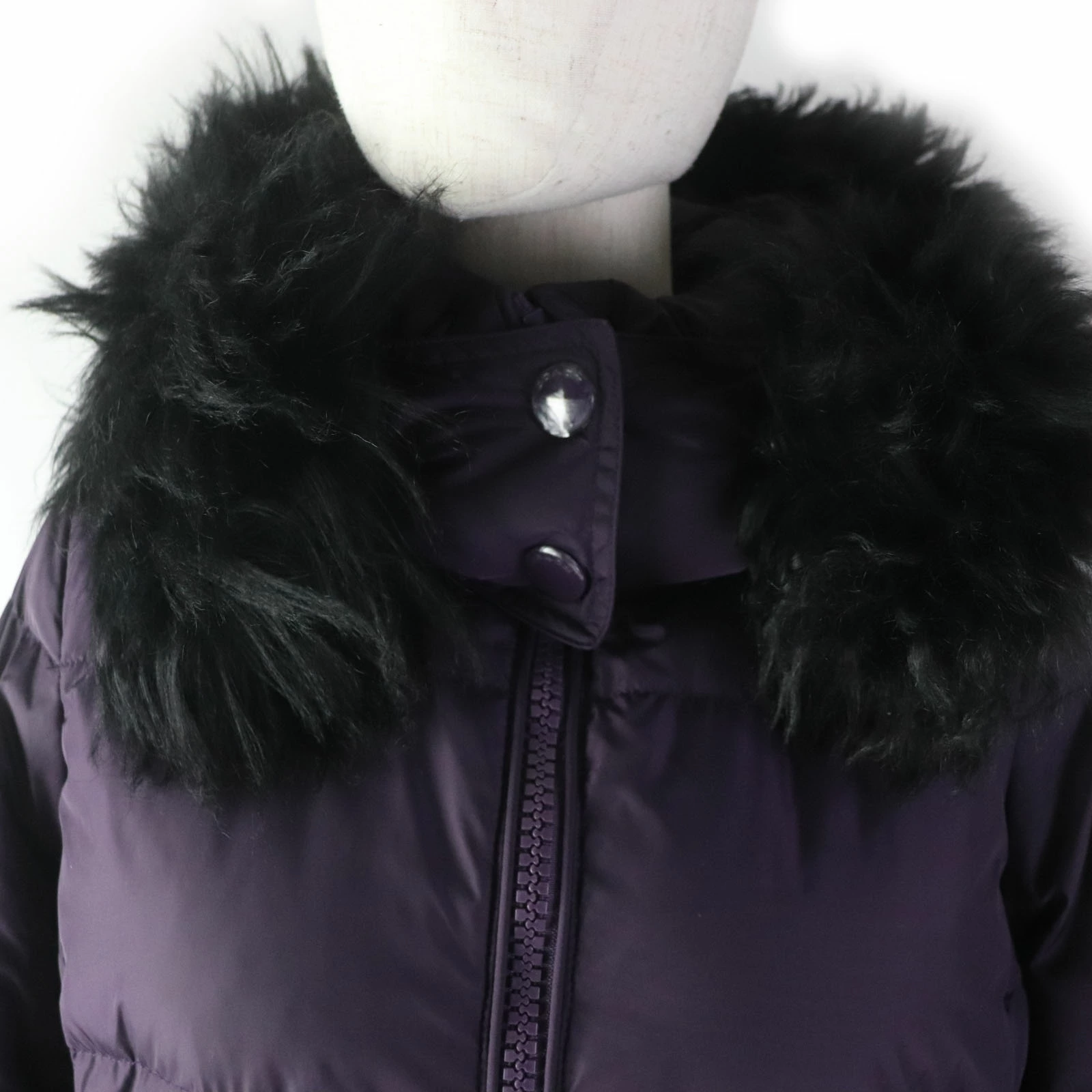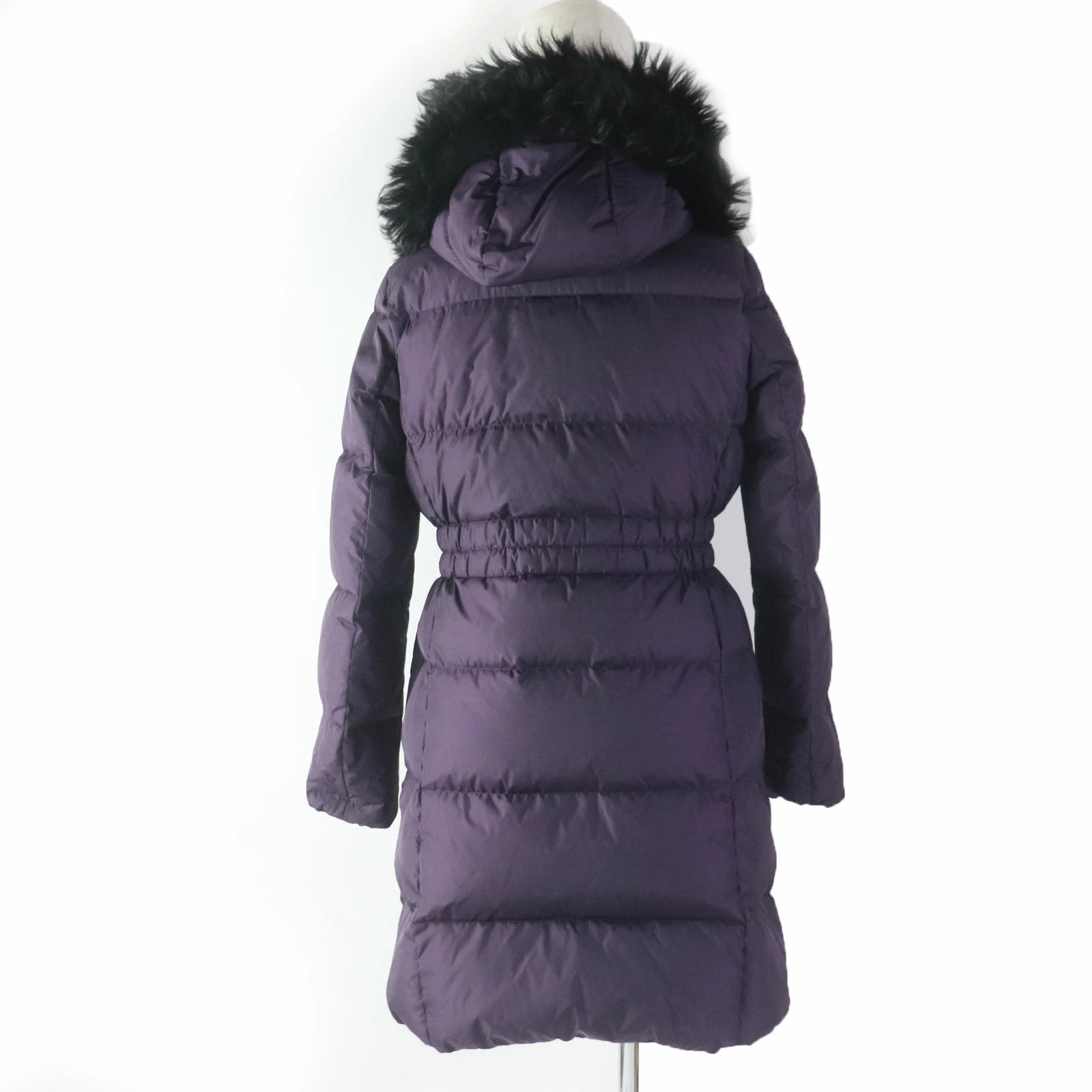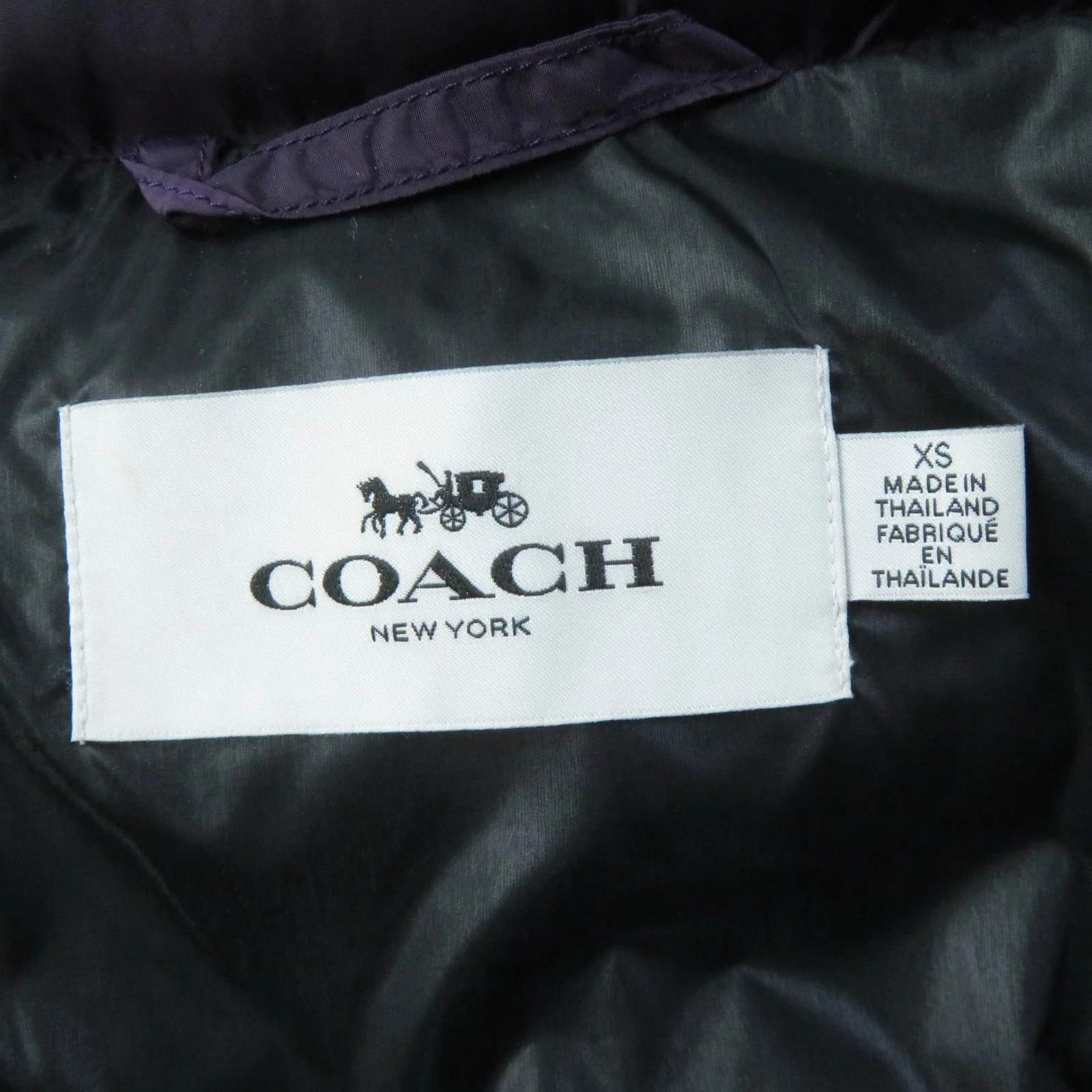 Excellent condition COACH F57028 Lamb Fur Hooded Down Coat with Leather Logo Patch, Purple, Size XS, Garment Included, Authentic, Women's [Pre-owned]