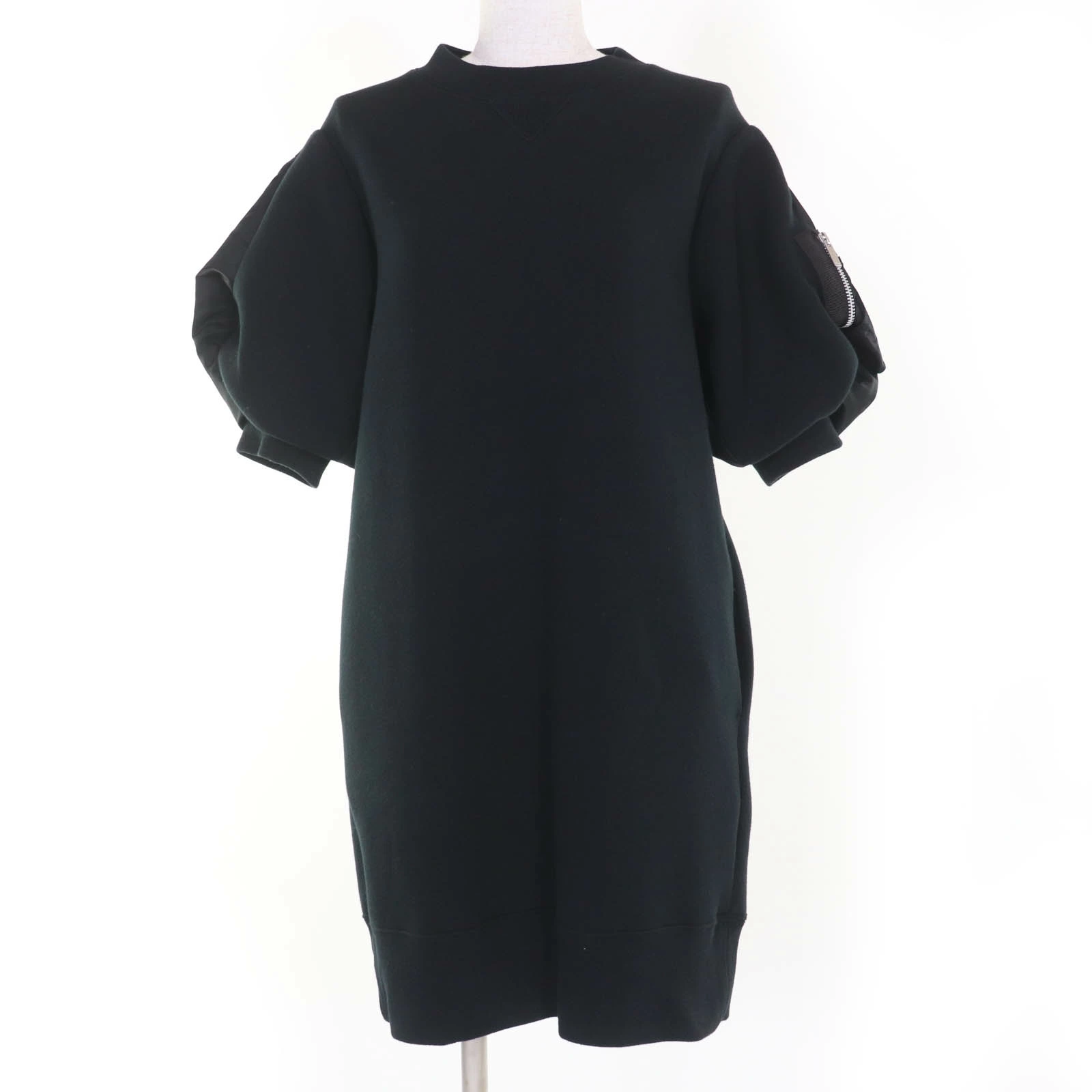 Excellent condition: Sacai 24-07261 Cotton Docking Knee-Length Mini Dress, Black, Size 2, Made in Japan, Authentic, Women's [Pre-owned]