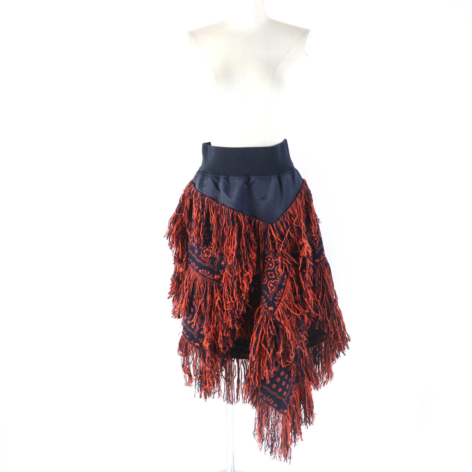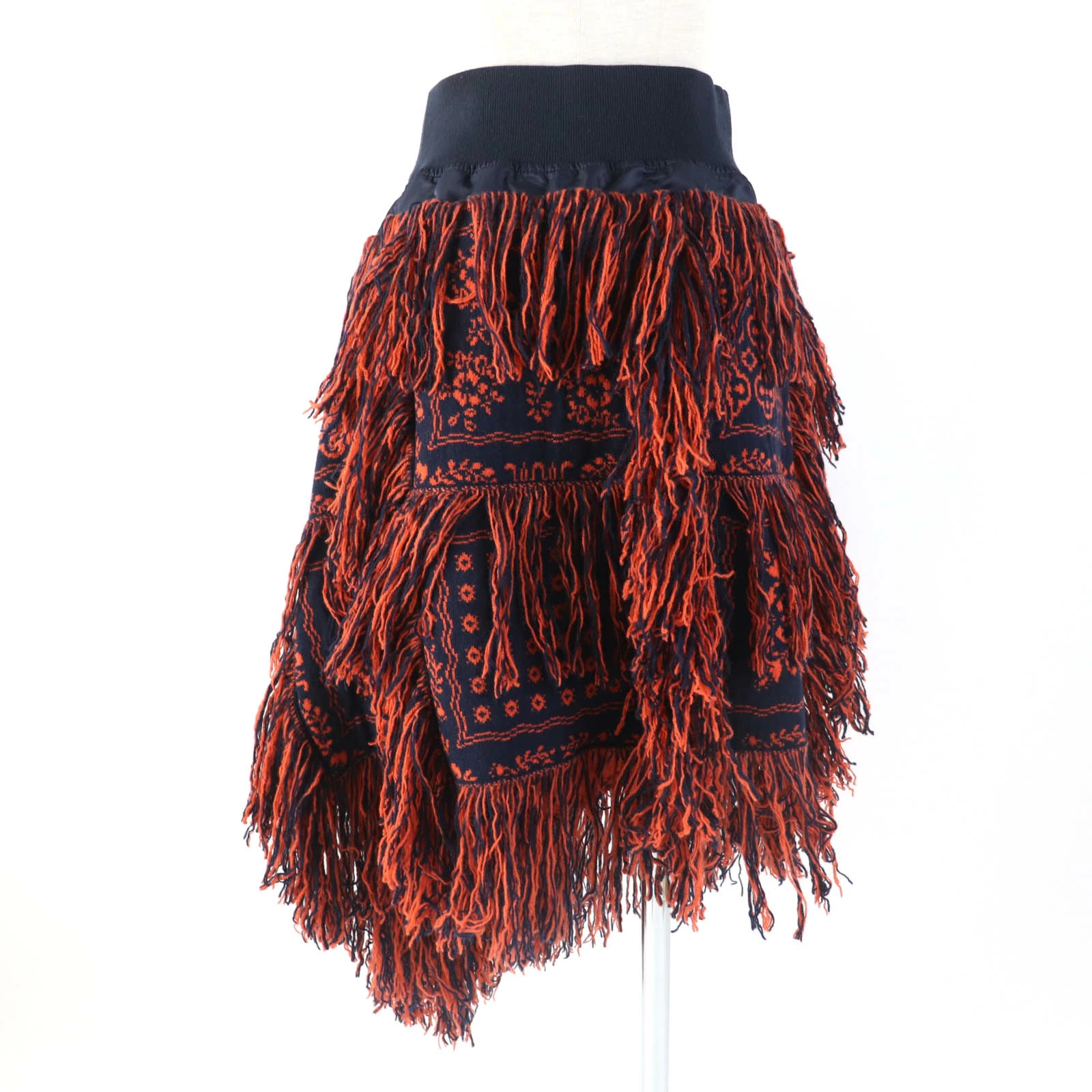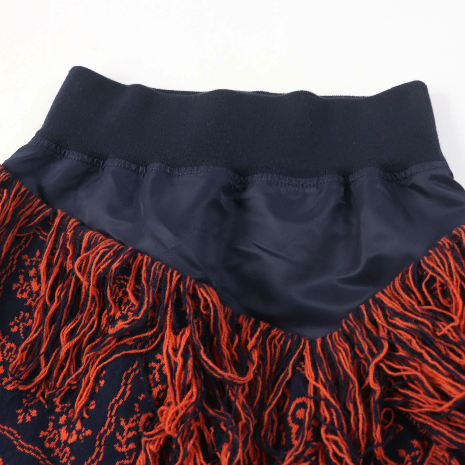 Excellent condition Sacai REYN SPOONER 18-03930 100% wool fringe knit skirt, navy and orange, size 1, made in Japan, authentic, women's [pre-owned]