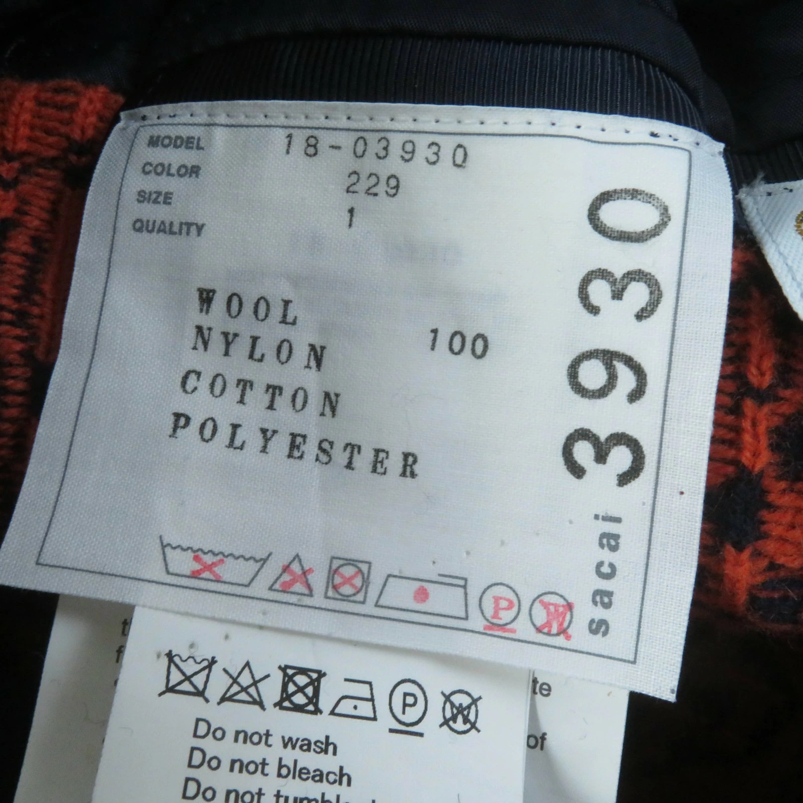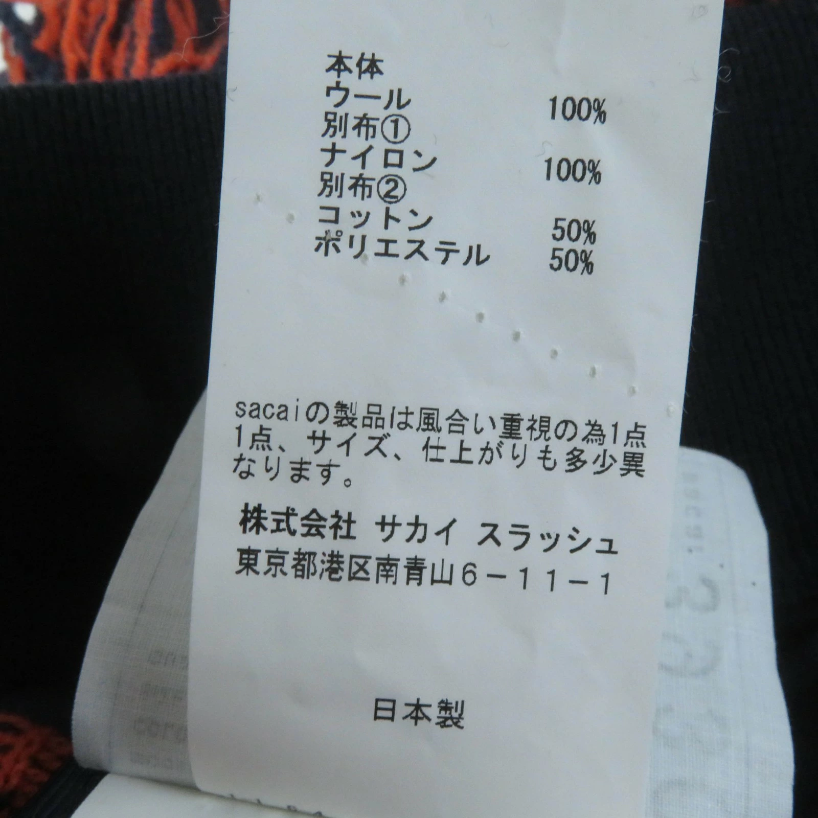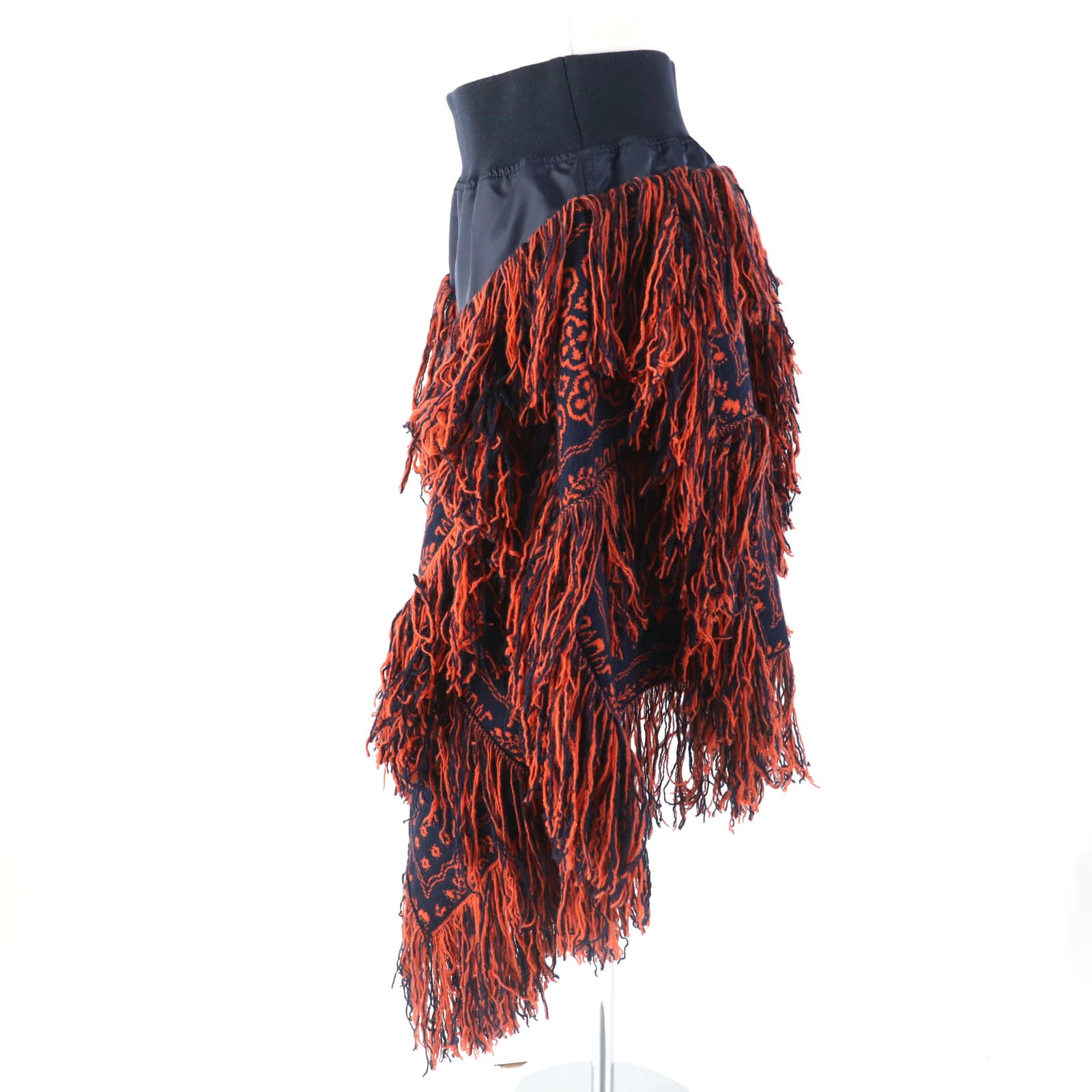 Excellent condition Sacai REYN SPOONER 18-03930 100% wool fringe knit skirt, navy and orange, size 1, made in Japan, authentic, women's [pre-owned]