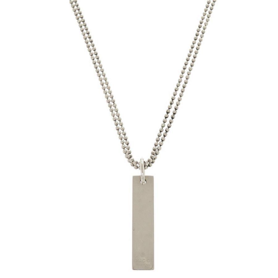[管理番号]7H1303B4m34[ブランド]グッチ(GUCCI)[タイプ]プレート ダブルボールチェーン[対象]メンズ[カラー]シルバー[重量]23.5[生産国]イタリア[サイズ]チェーン長さ:約約50cmトップW約10mm x H約42mm[素材]シルバー925[付属品]なし