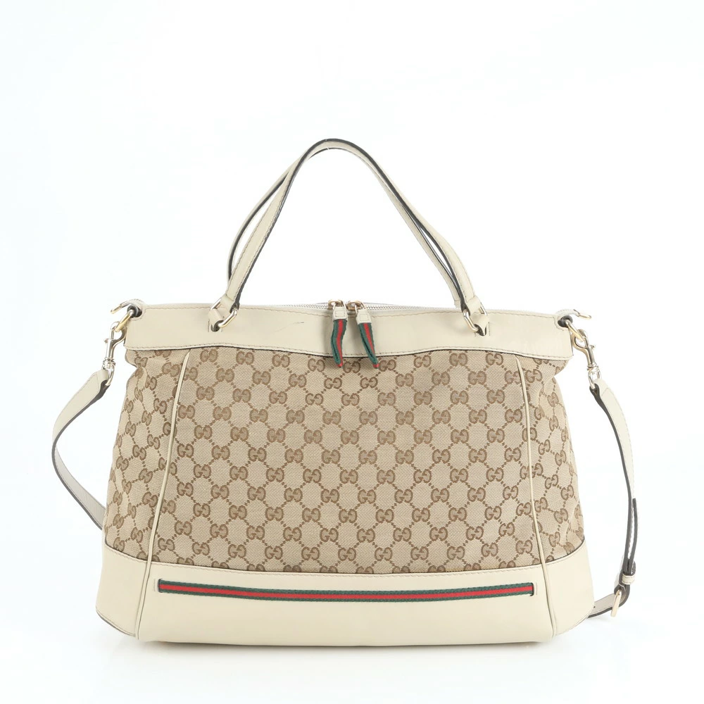 Excellent condition Gucci GG canvas Mayfair ribbon leather 2-way tote bag, crossbody/shoulder bag, 257349A4, women's, EUE CV16-4