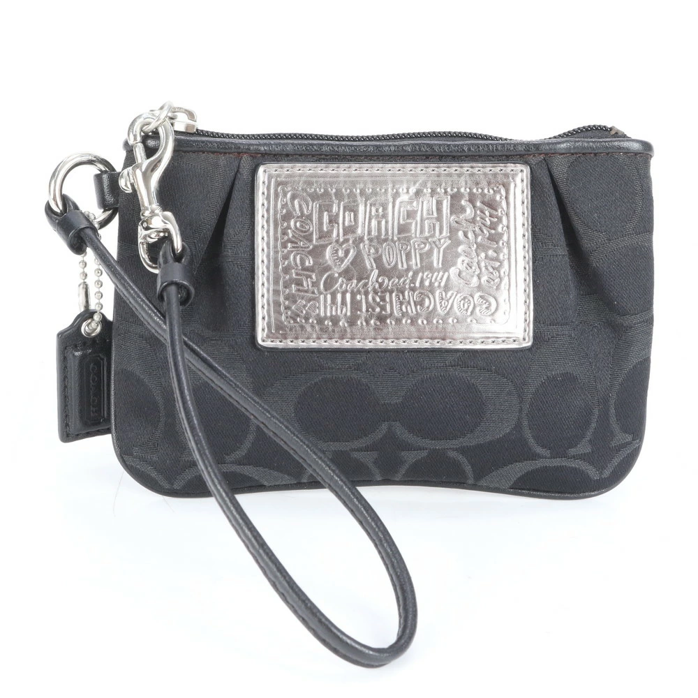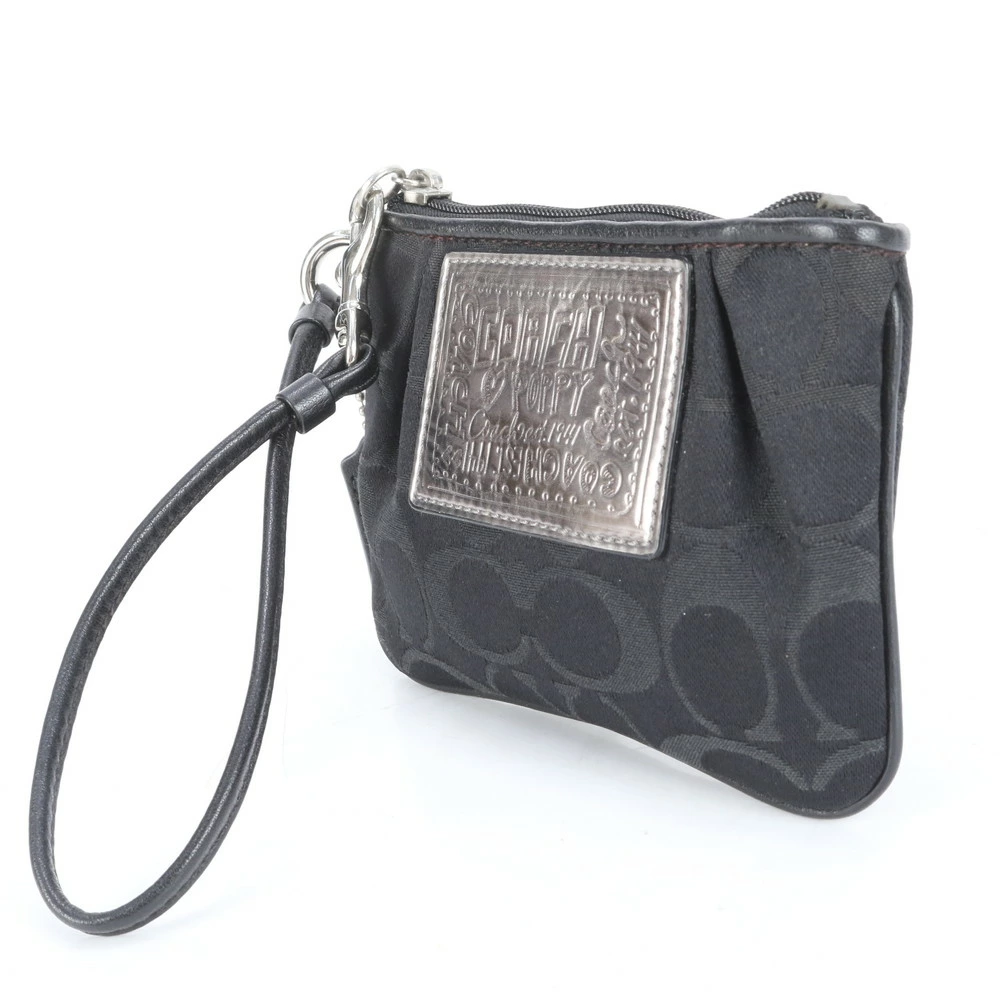 Excellent condition Coach Signature canvas and leather pouch with strap, perfect for makeup and other small items, black, women's RRE CJ6-8
