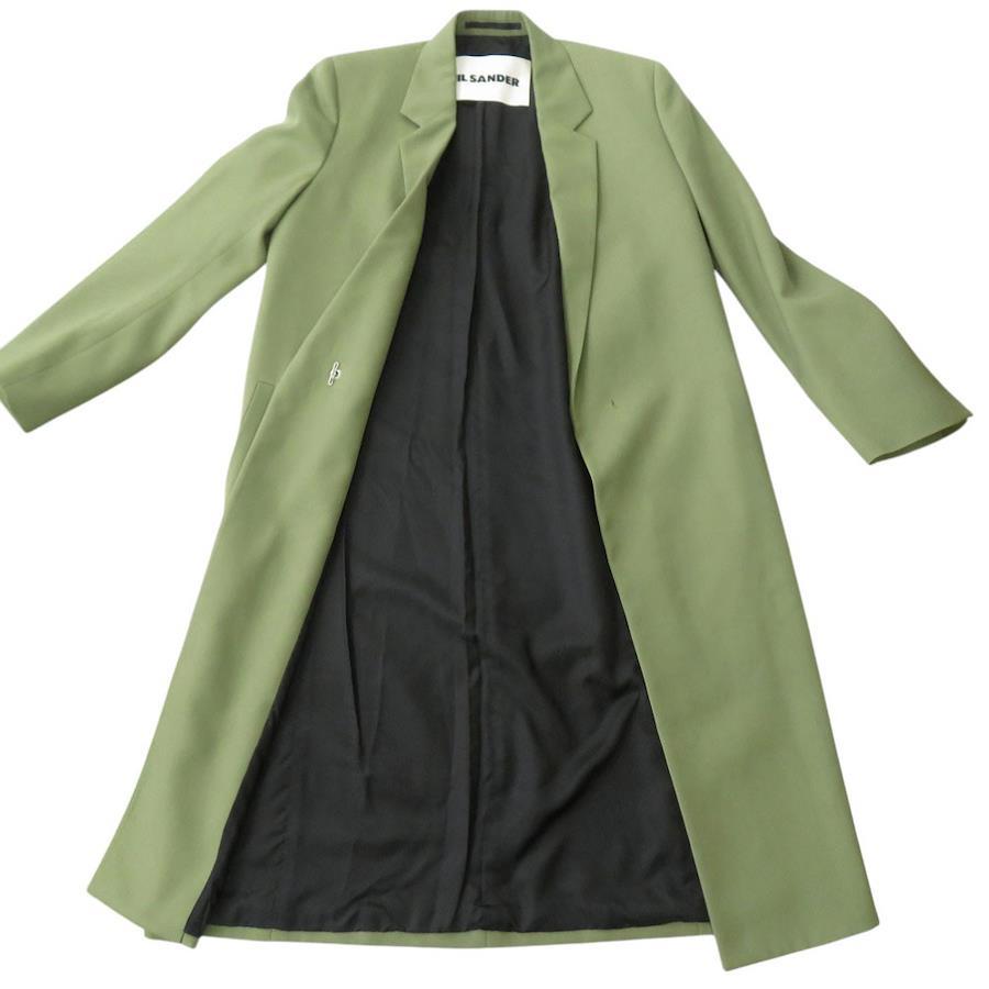 [管理番号]7I1148SS5[ブランド]ジルサンダー(JIL SANDER)[タイプ]チェスターコート[型番]JSMU105101 MU20200021[対象]レディース[カラー]カーキ[金具]シルバー[季節・シーズン]2022SS[生産国]イタリア[サイズ]表記サイズ:44肩幅:約約41cm着丈:約約112cm身幅:約約51cm袖丈:約約63cm[素材]ウール キュプラ[付属品]なし