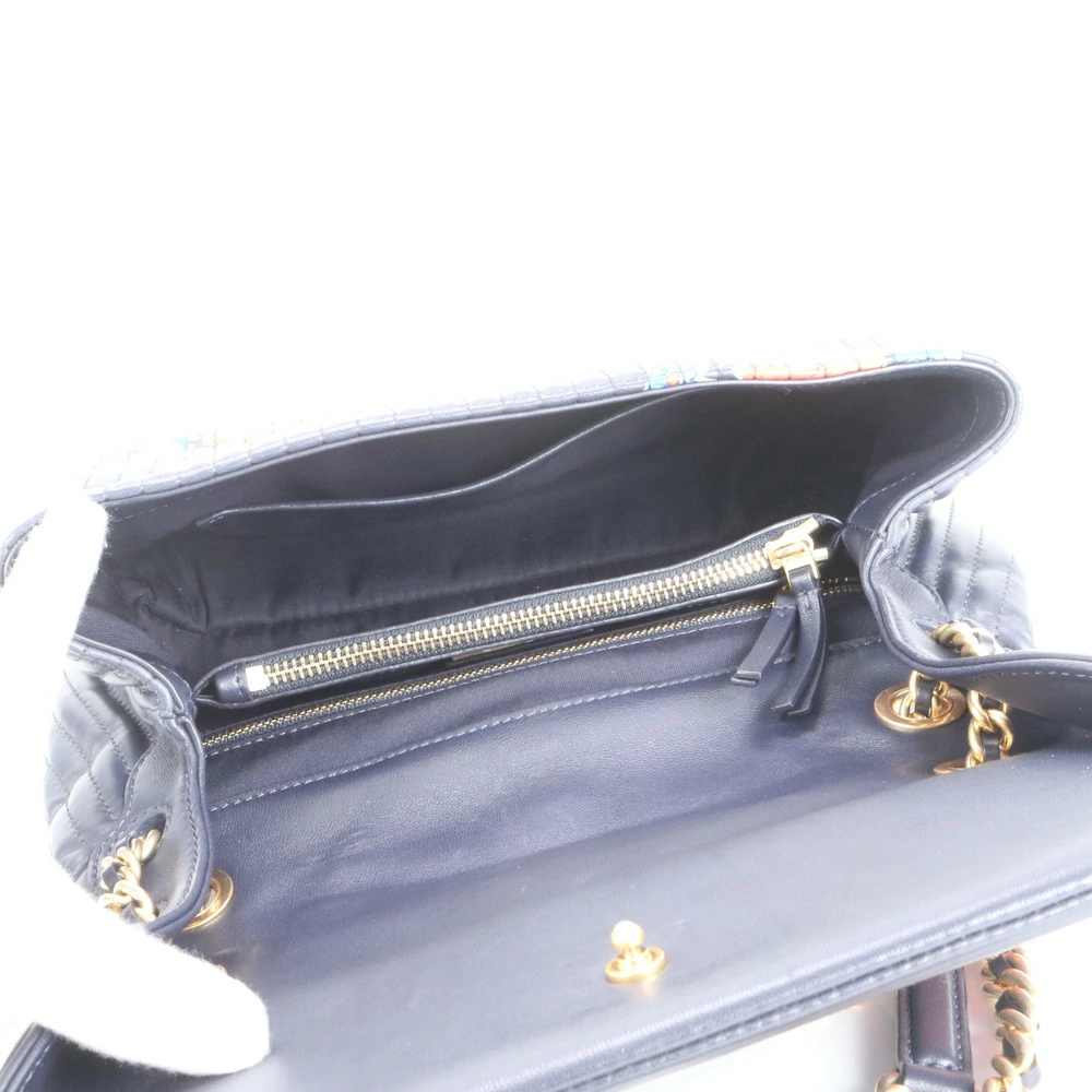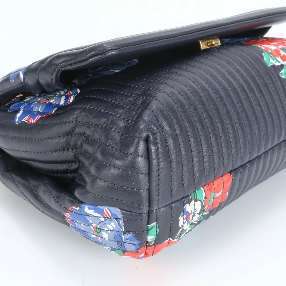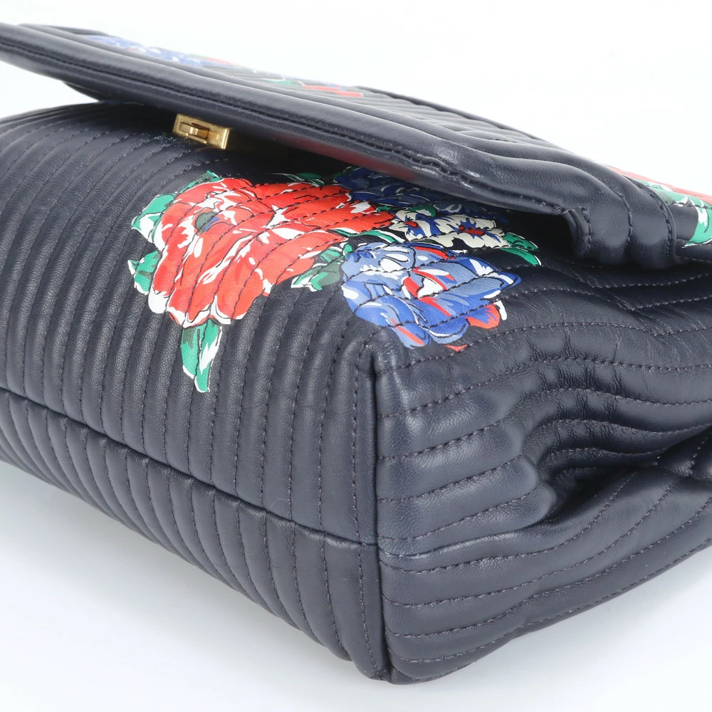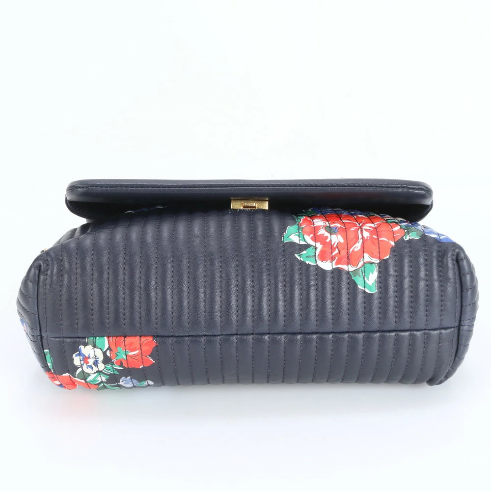 Excellent condition Tory Burch floral leather gold chain shoulder bag in navy blue, stylish for women, RUE CU19-4