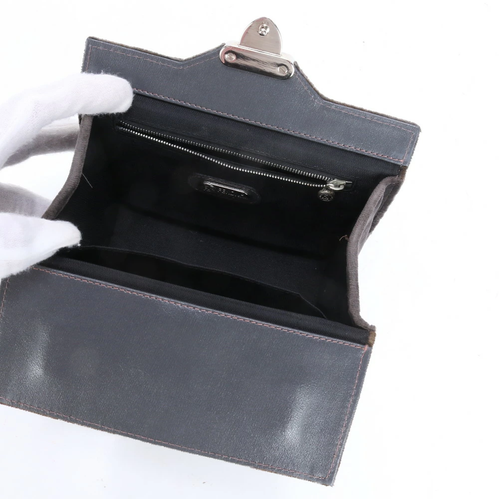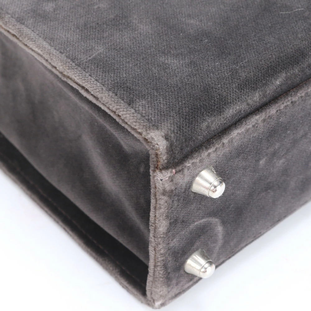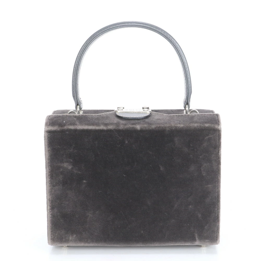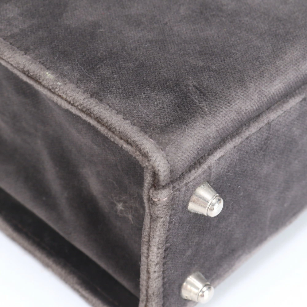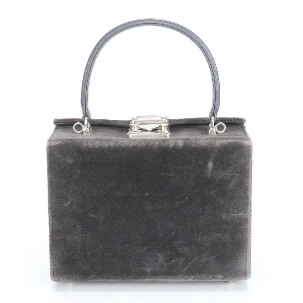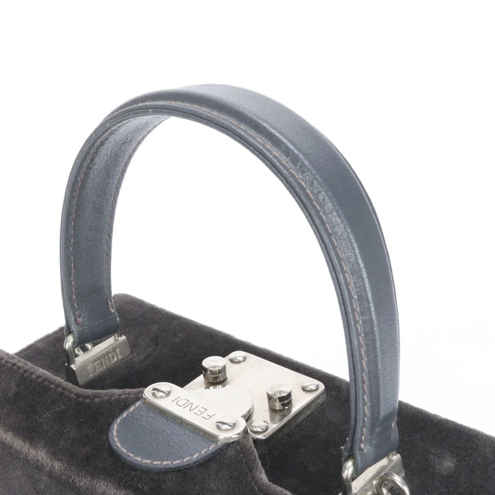 Excellent condition Fendi leather vanity handbag, top handle tote, gray velour, women's MME CA5-1