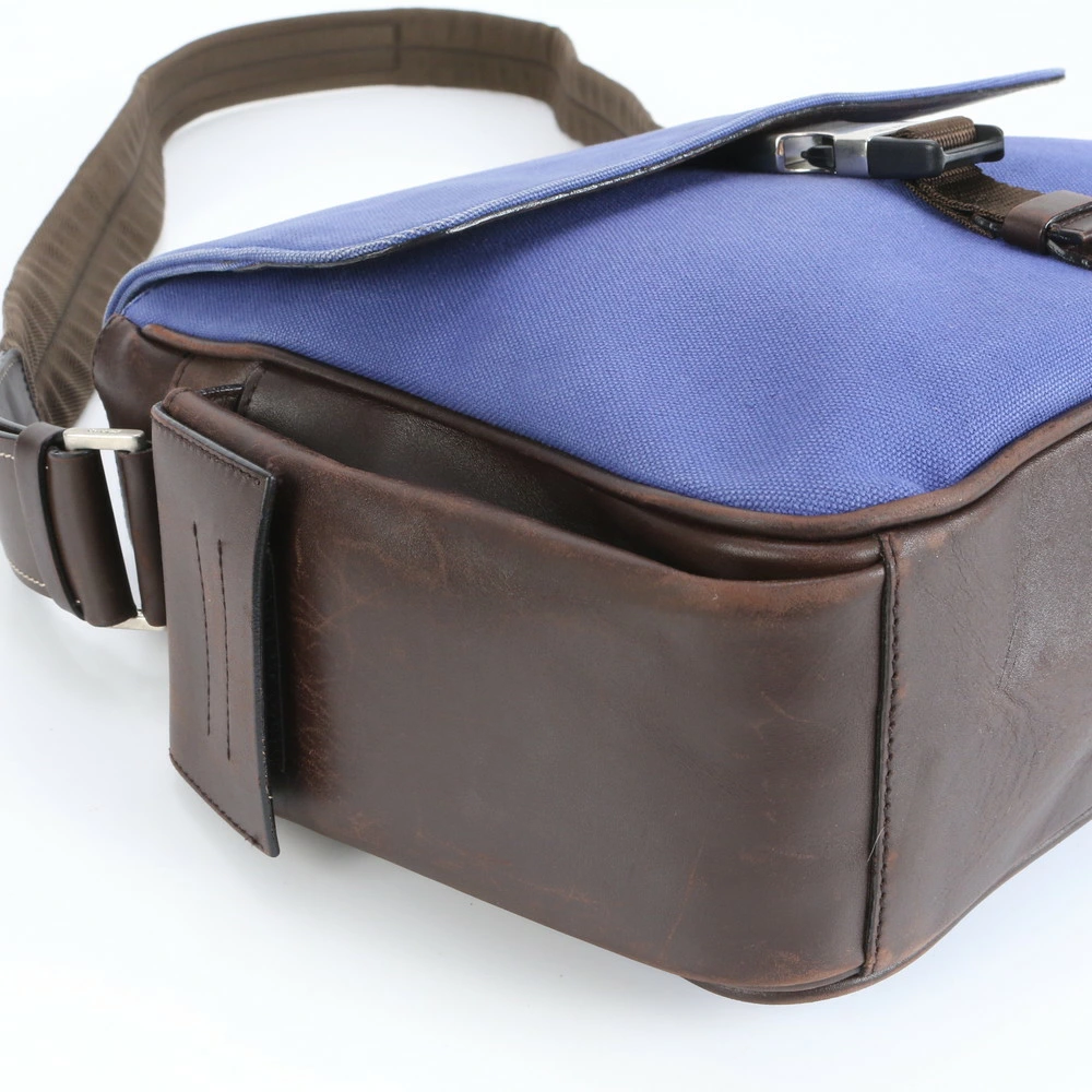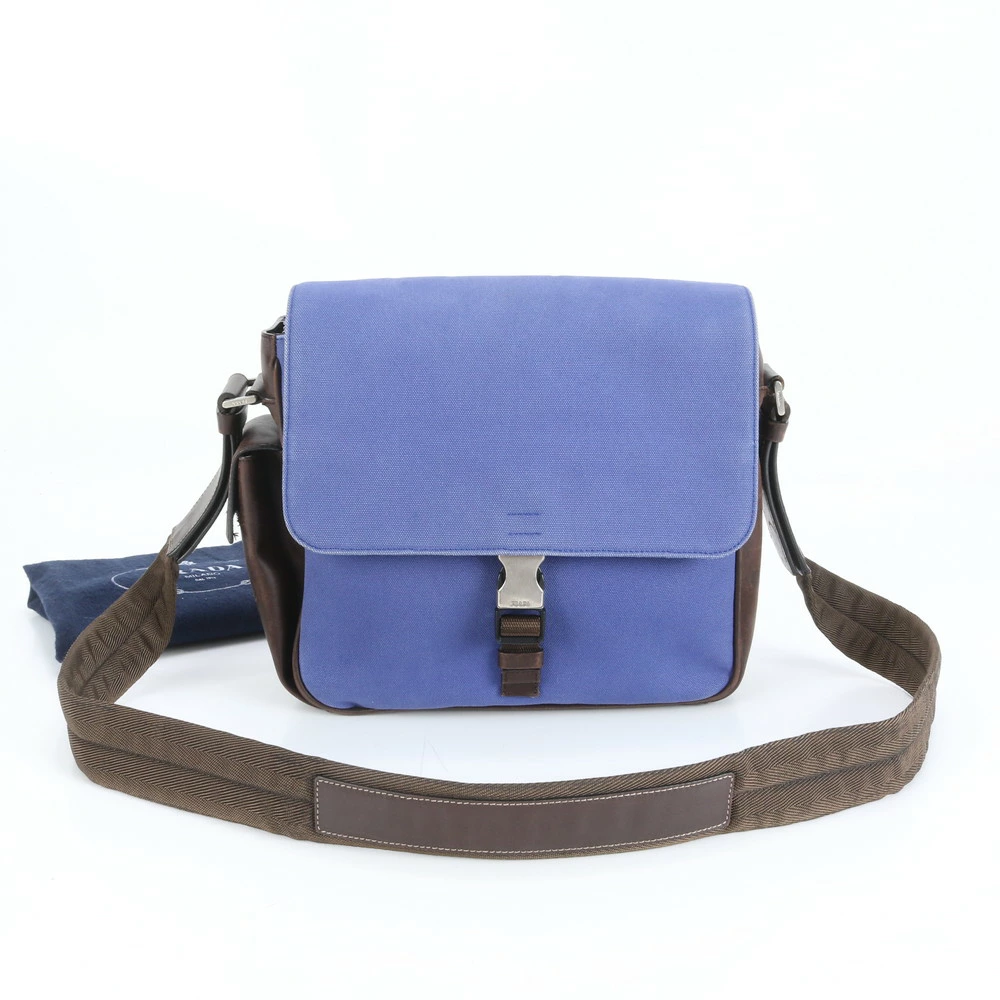 Excellent condition Prada leather and canvas shoulder bag, crossbody messenger bag, blue, genuine leather, men's RWM CZ5-1