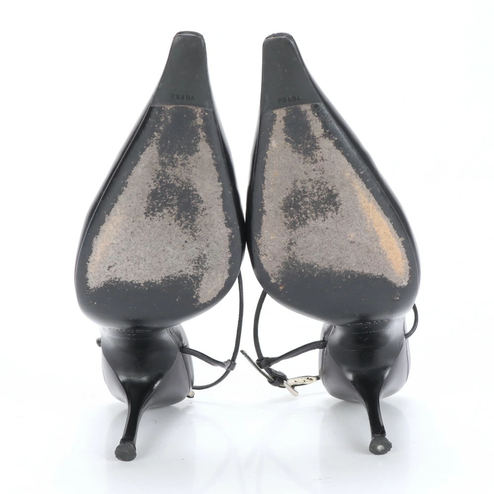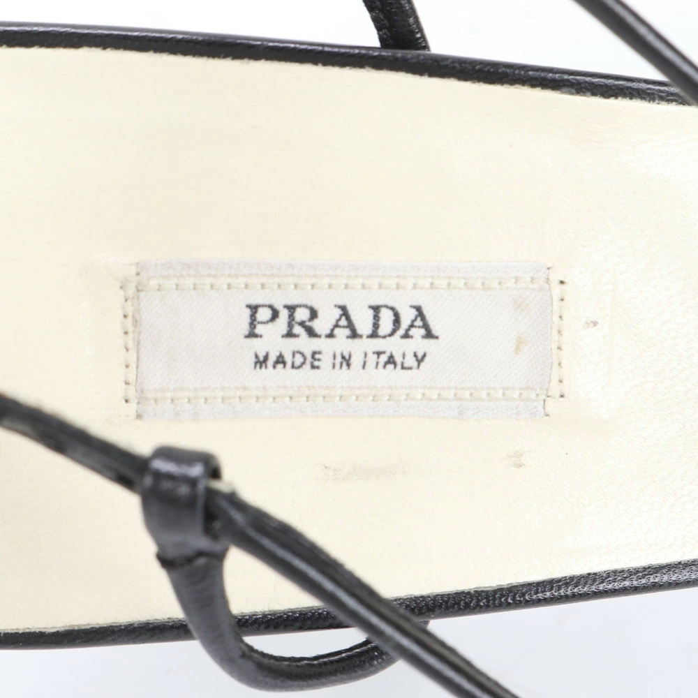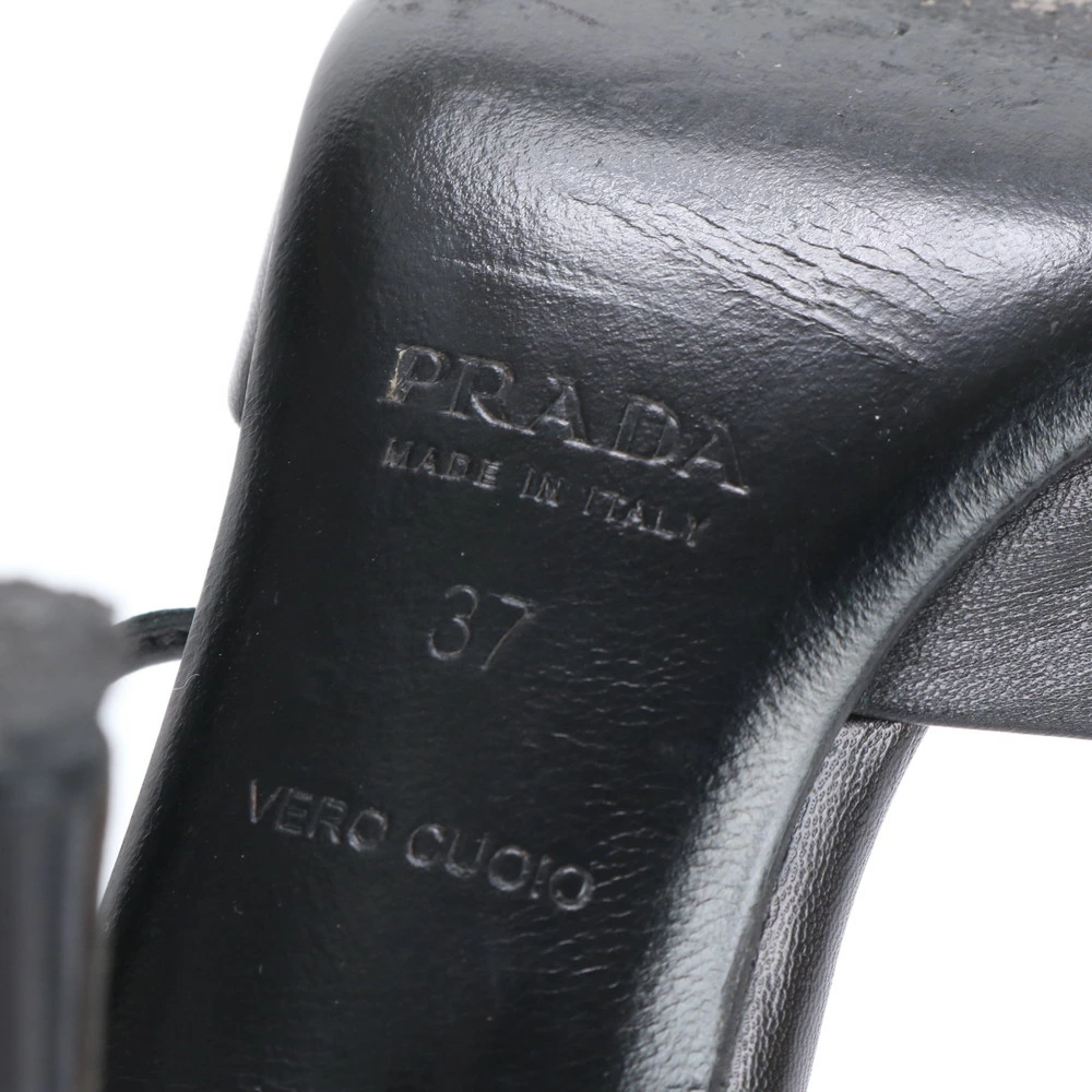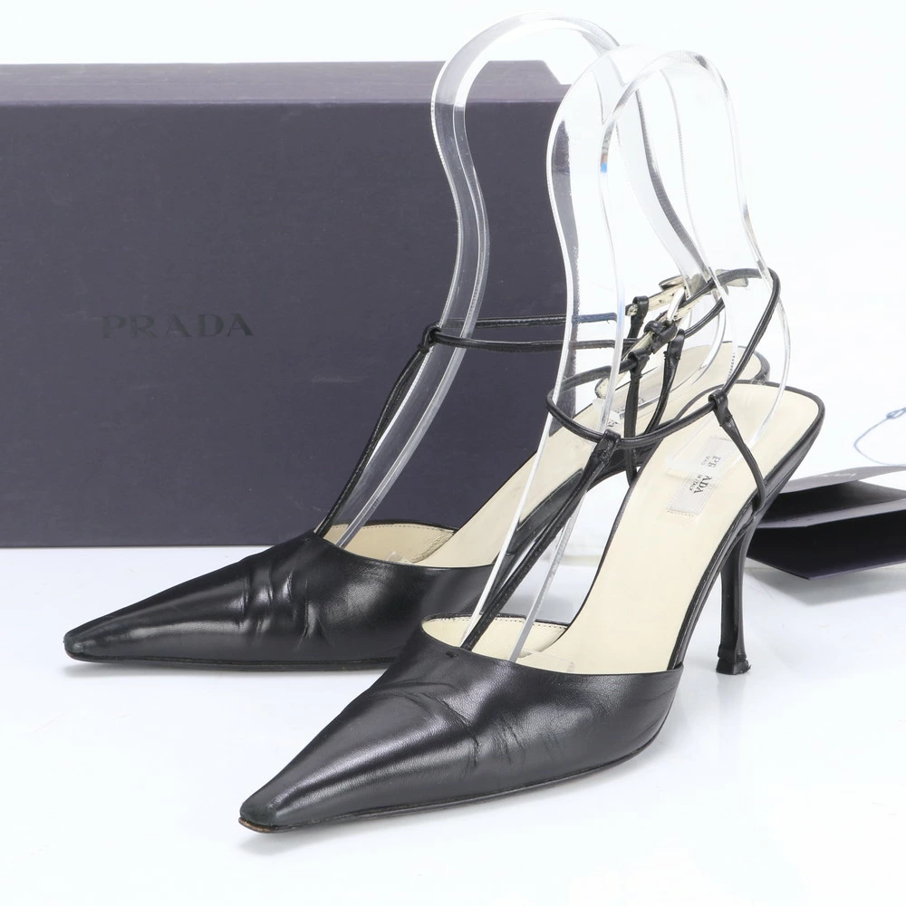 Excellent condition Prada T-strap leather heeled sandals, shoes, mules, loafers, size 37 (equivalent to 24cm), women's EEE BR13-10