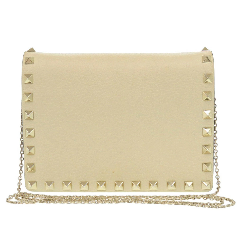 美品 ヴァレンティノ ガラヴァーニ チェーンショルダー ロックスタッズ TV-P249VSH2 レザー ベージュ ショルダーバッグ 1218【中古】Valentino Garavani