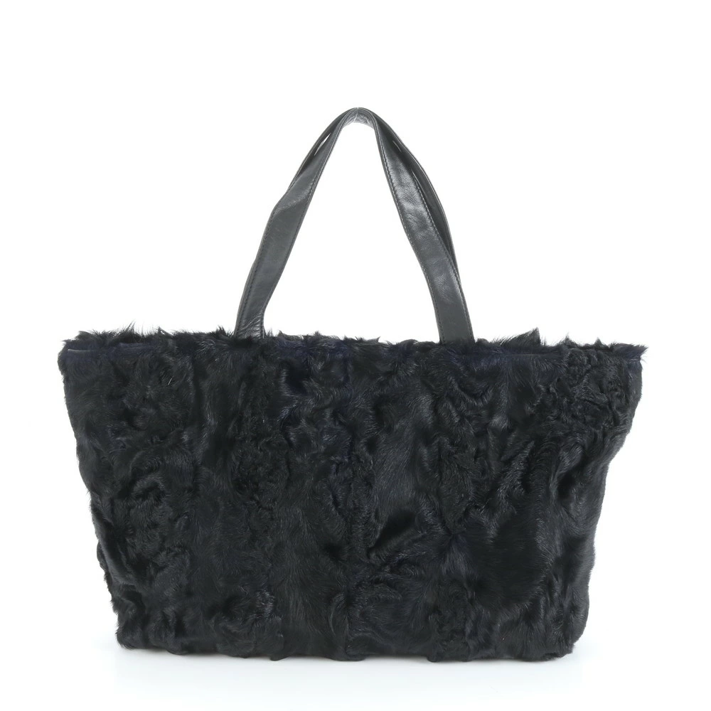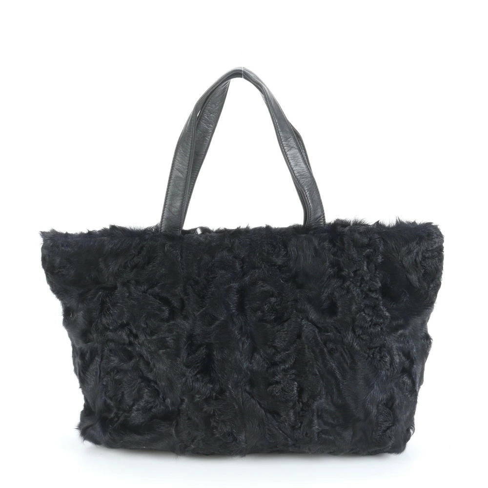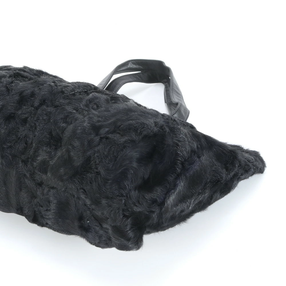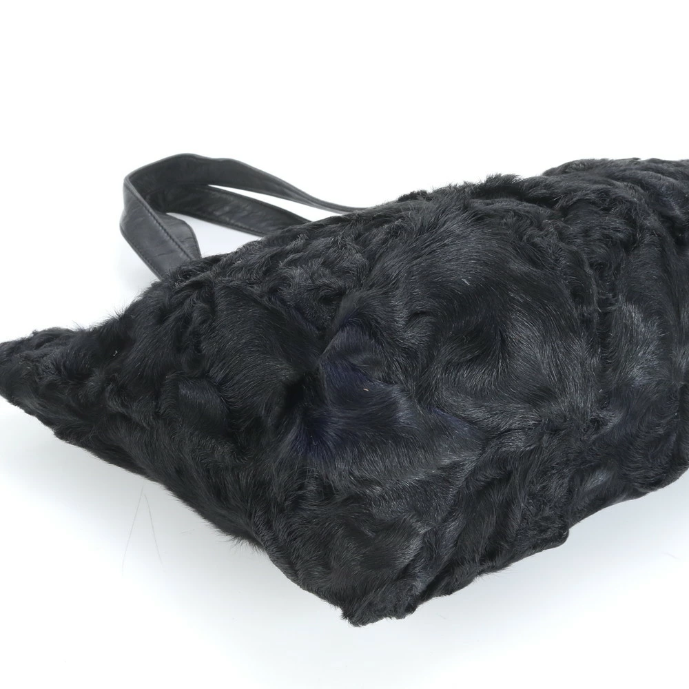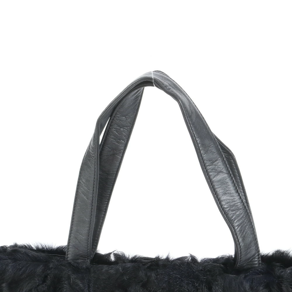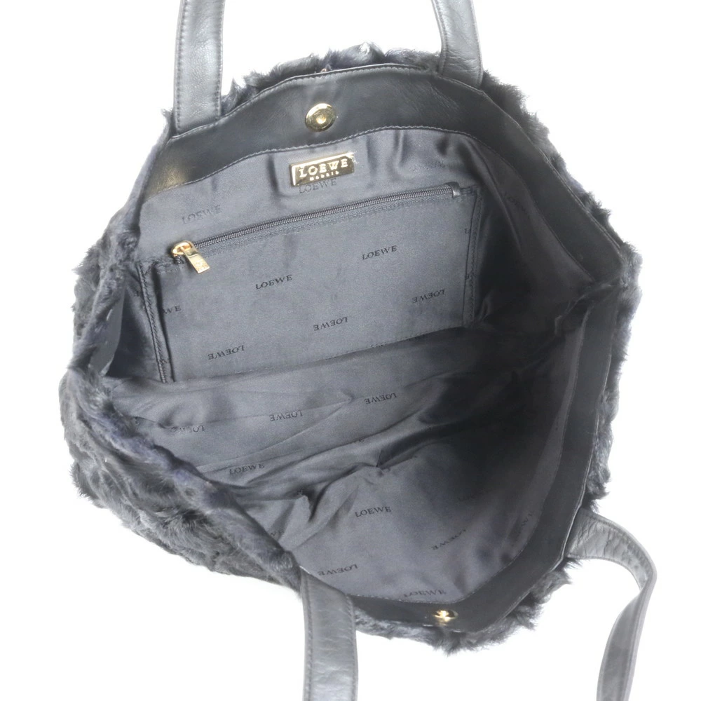 Excellent condition vintage Loewe fur and leather tote bag, shoulder bag, black, women's, EEE CU25-2