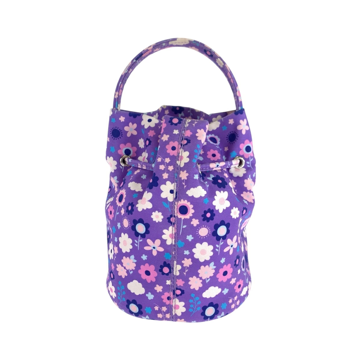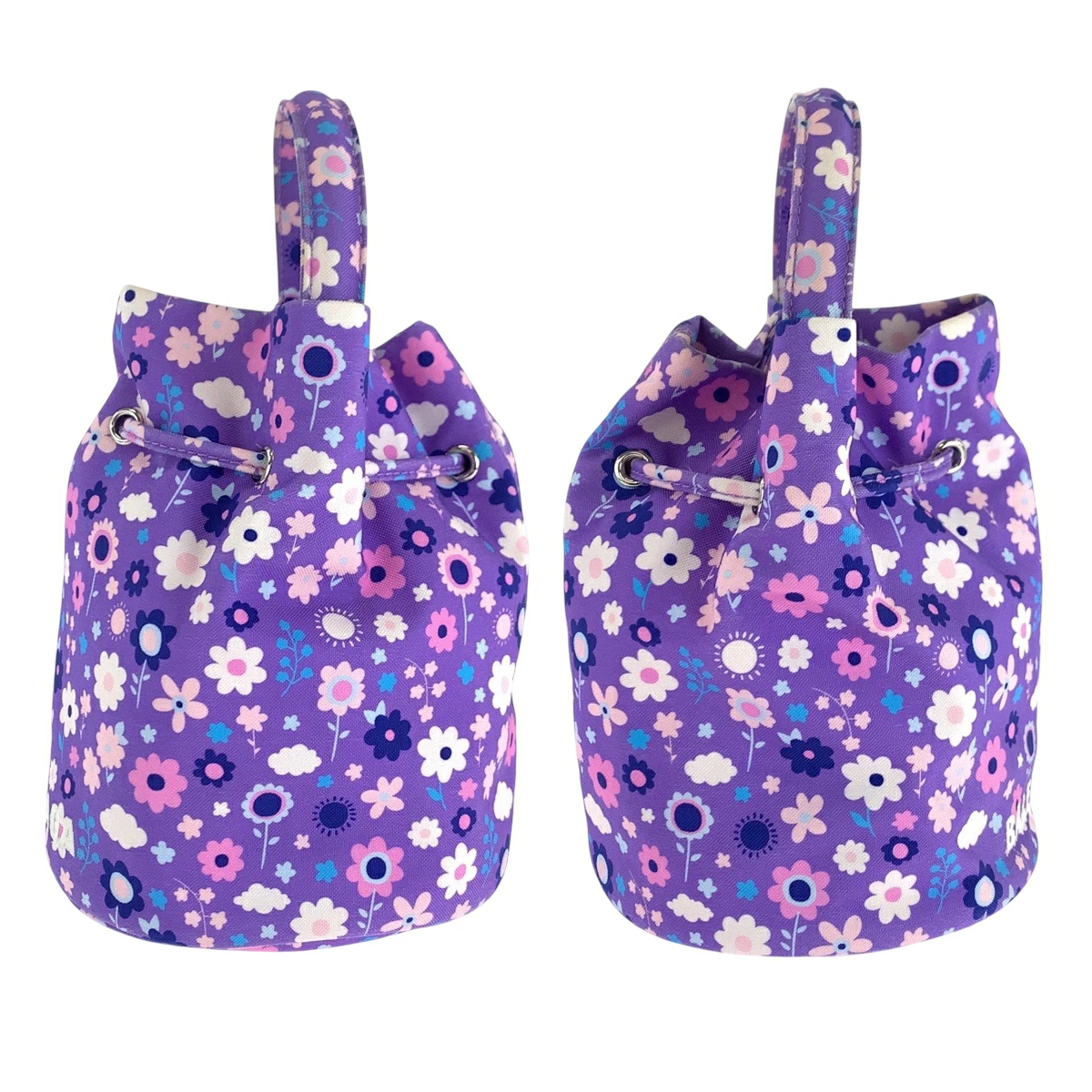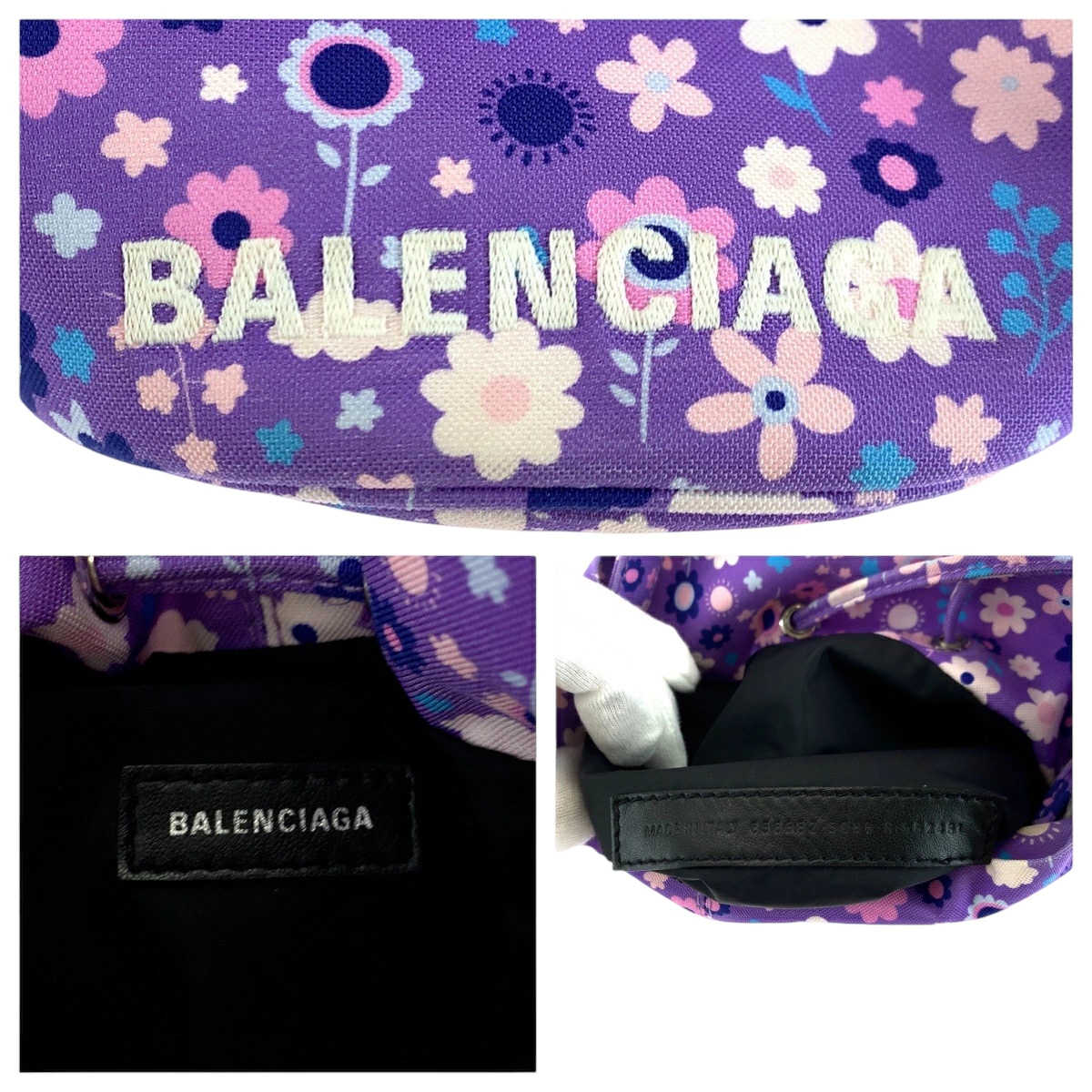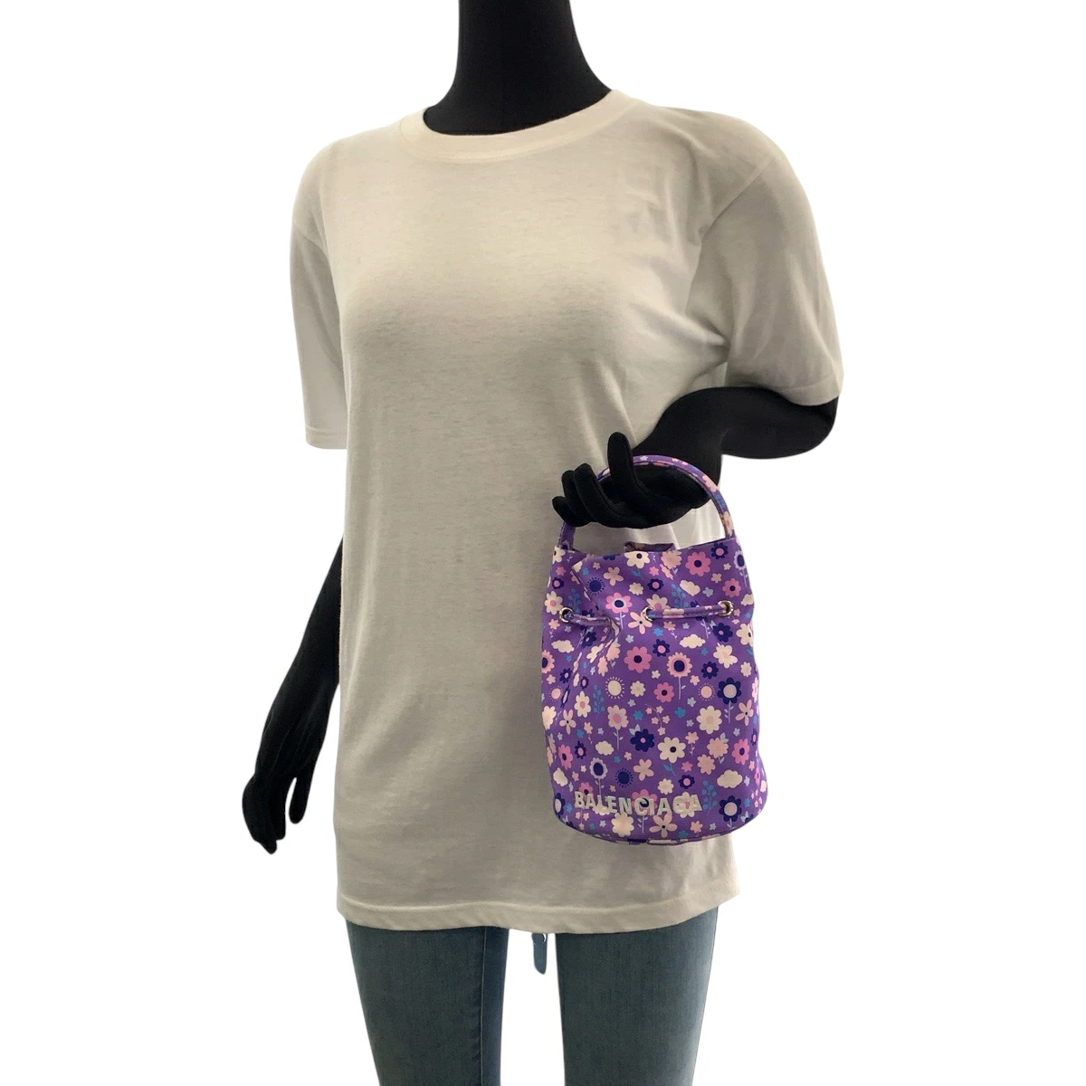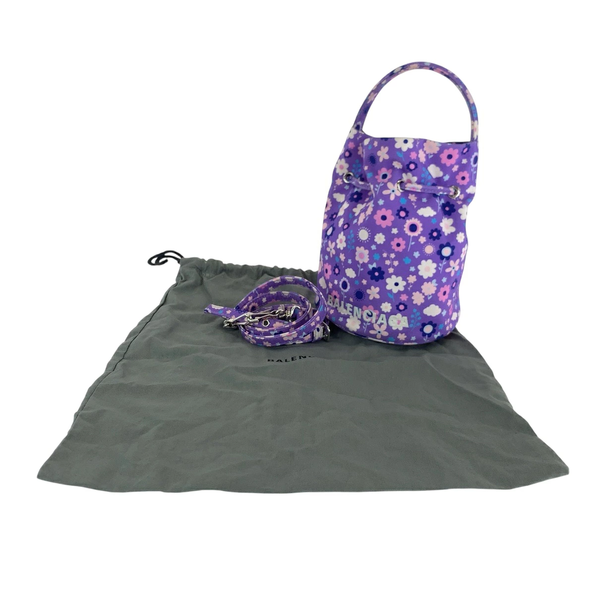 Excellent condition BALENCIAGA Drawstring Bucket Bag in Purple and Multicolored Flower Pattern with Silver Hardware, Ikat Nylon Canvas (Product Code: 656682), Shoulder/Handbag, 2-Way, Women's (Product Code: 502960) [Pre-owned]