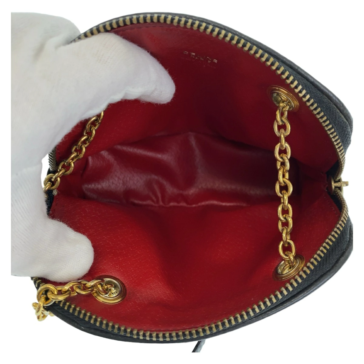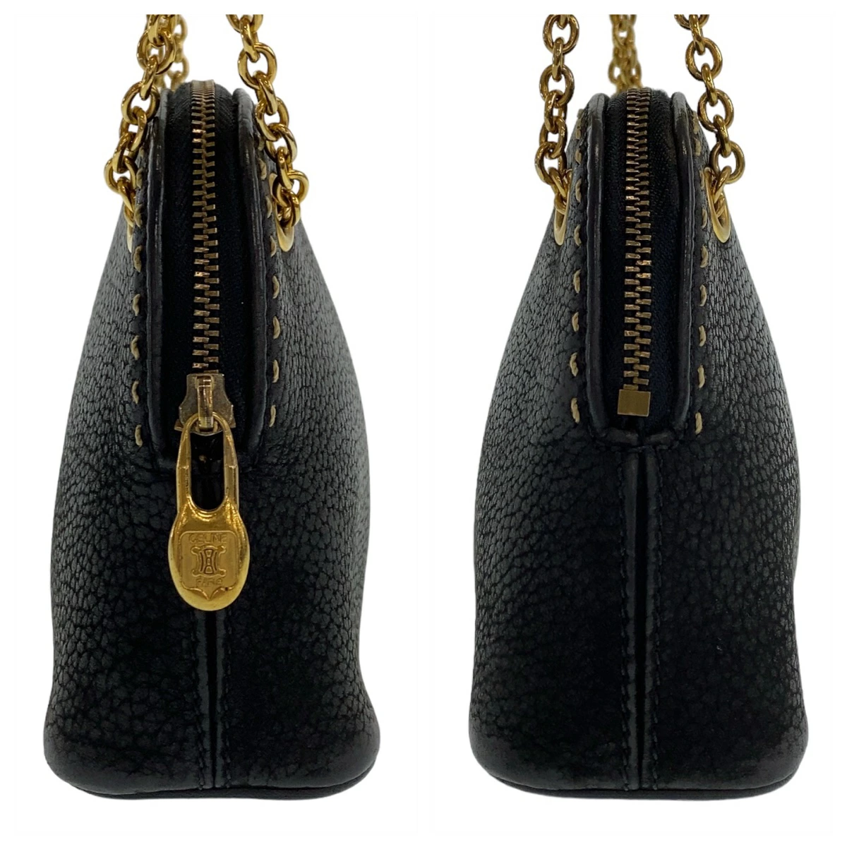Pre-owned, excellent condition Celine Vintage Triomphe black leather mini shoulder bag with gold hardware, accessory pouch, women's item 503411.