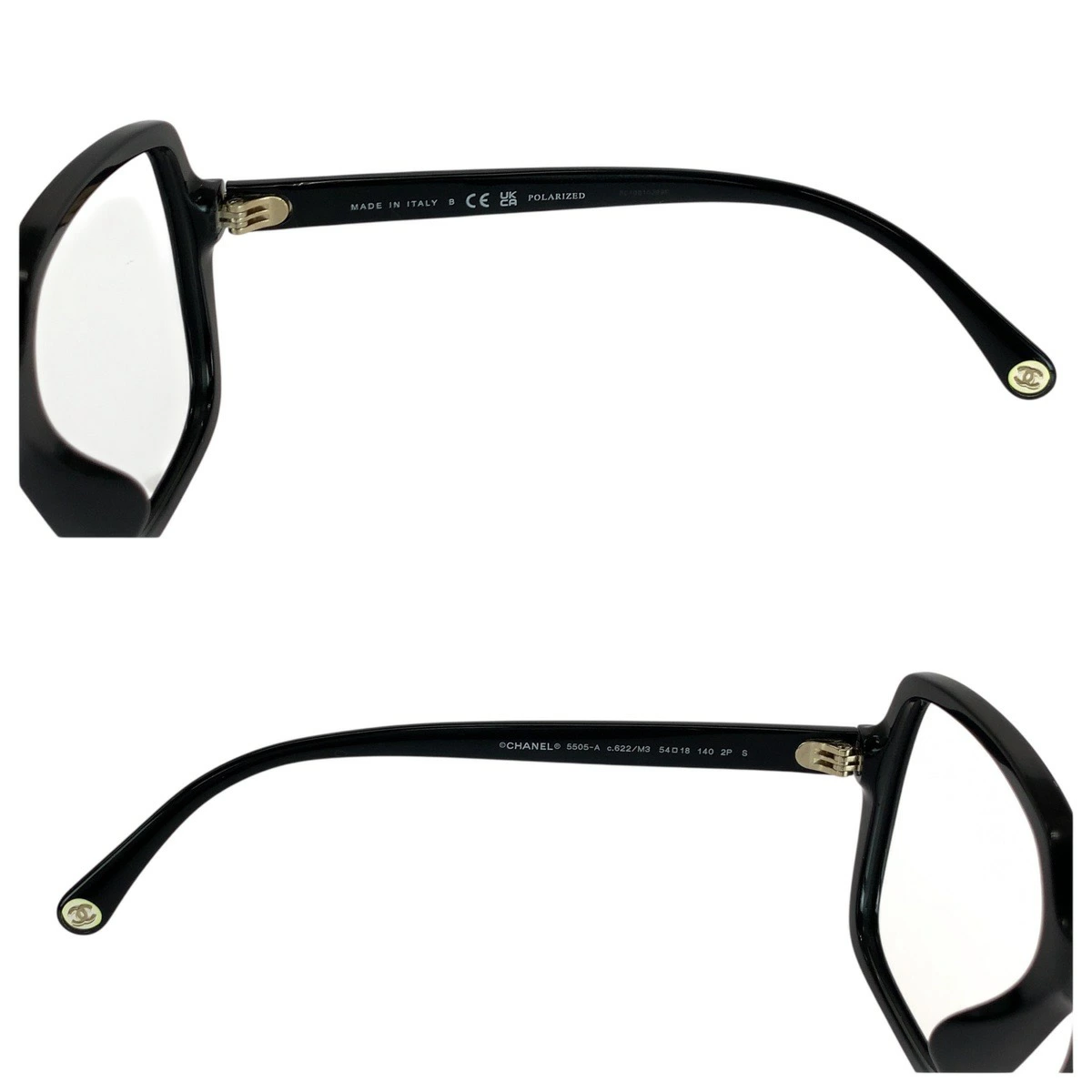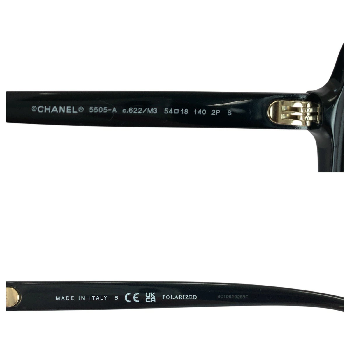 Excellent condition CHANEL Coco Mark black sunglasses with gold hardware and plastic frame, size 5505-A c.622/M3 54□18 140 2P S, unisex square frame, women's, 505151 [pre-owned]