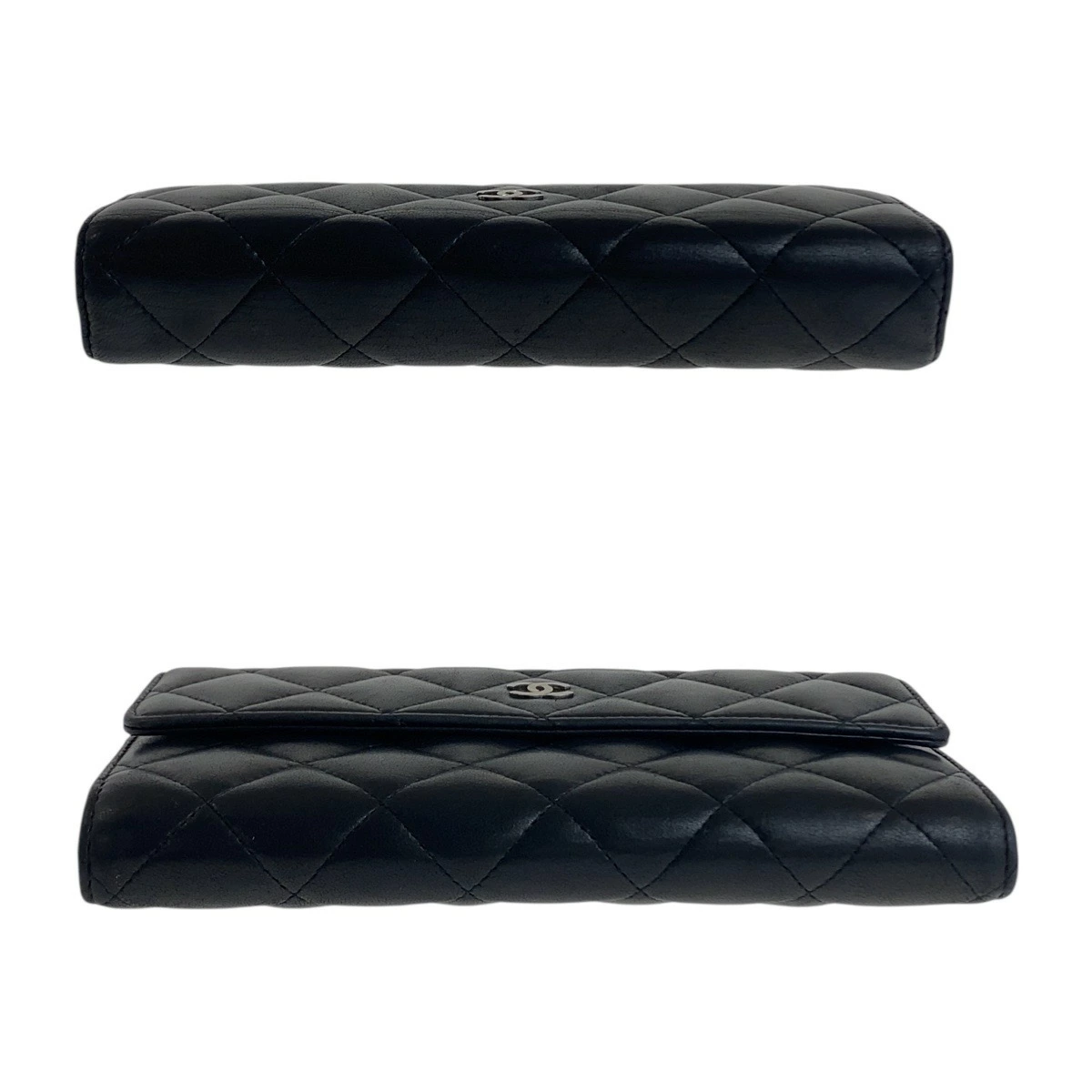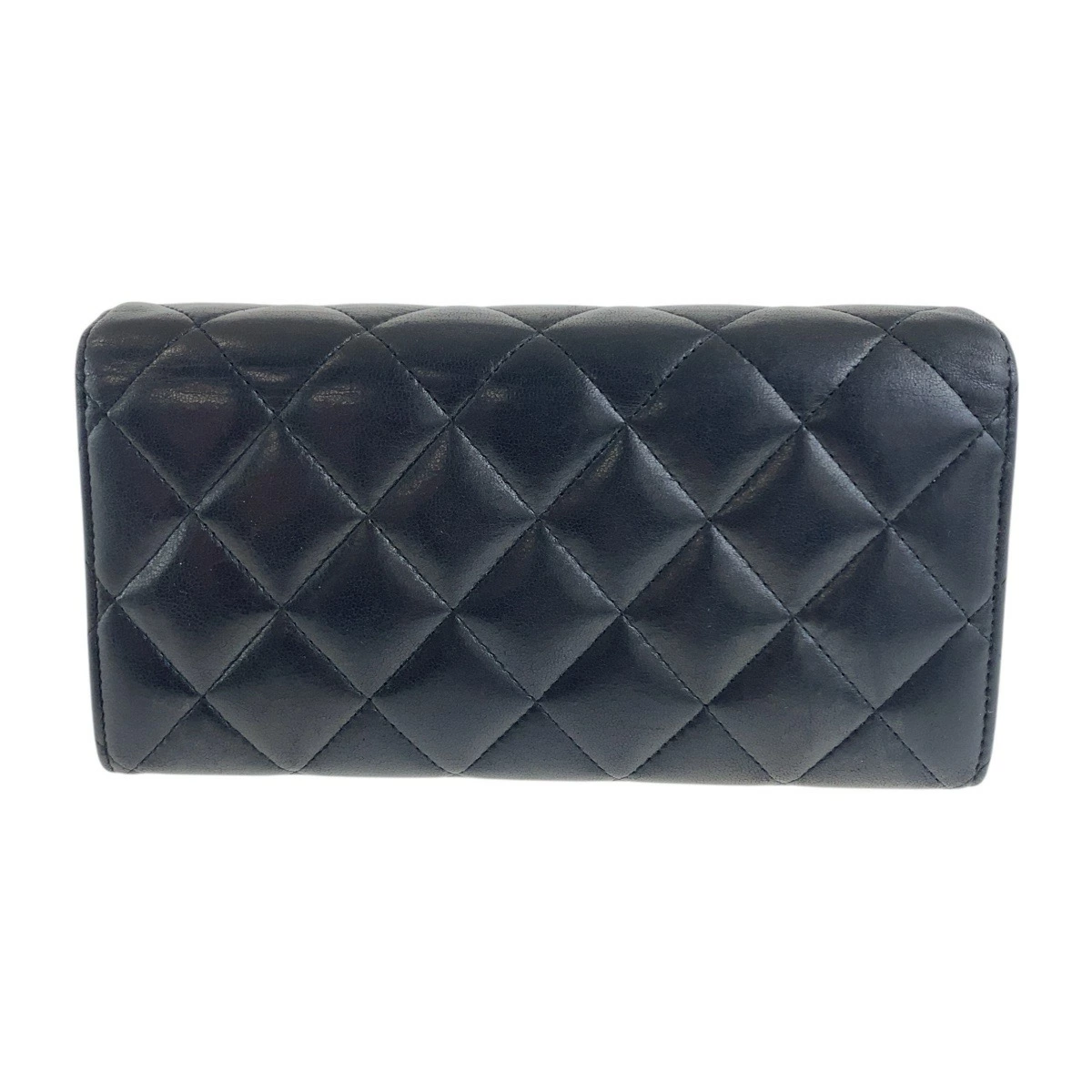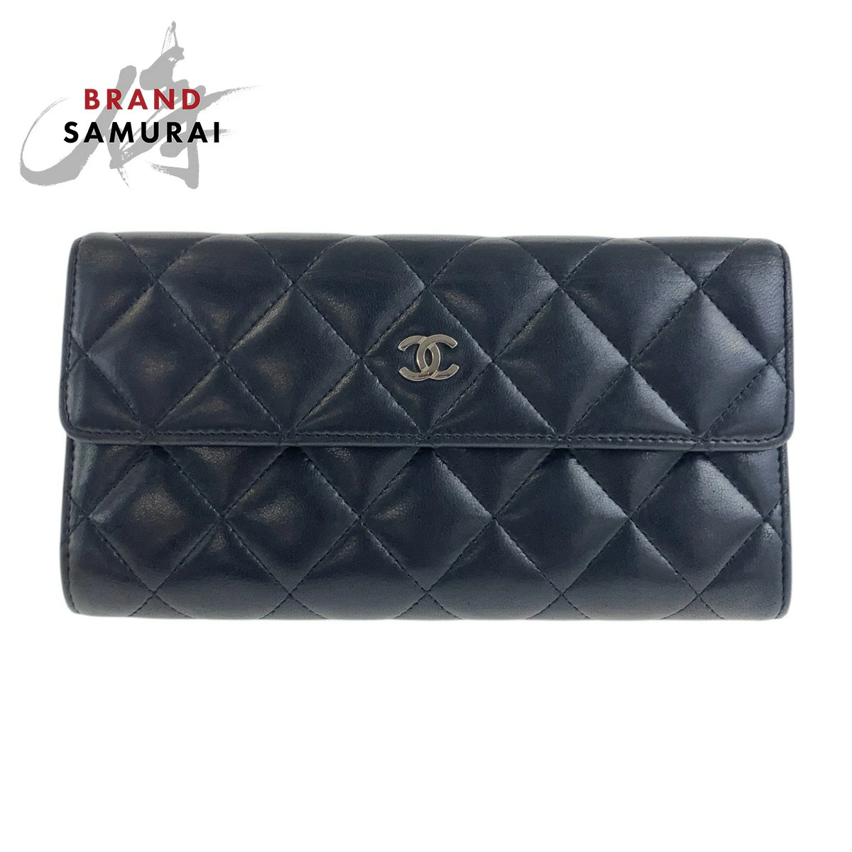 Excellent condition CHANEL Matelasse Coco Mark black lambskin long wallet with silver hardware, women's 504935 [pre-owned]