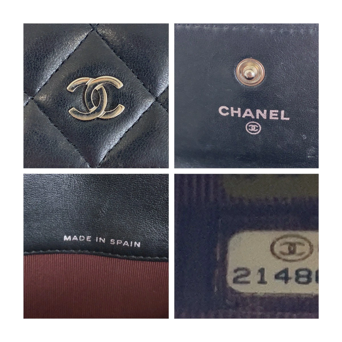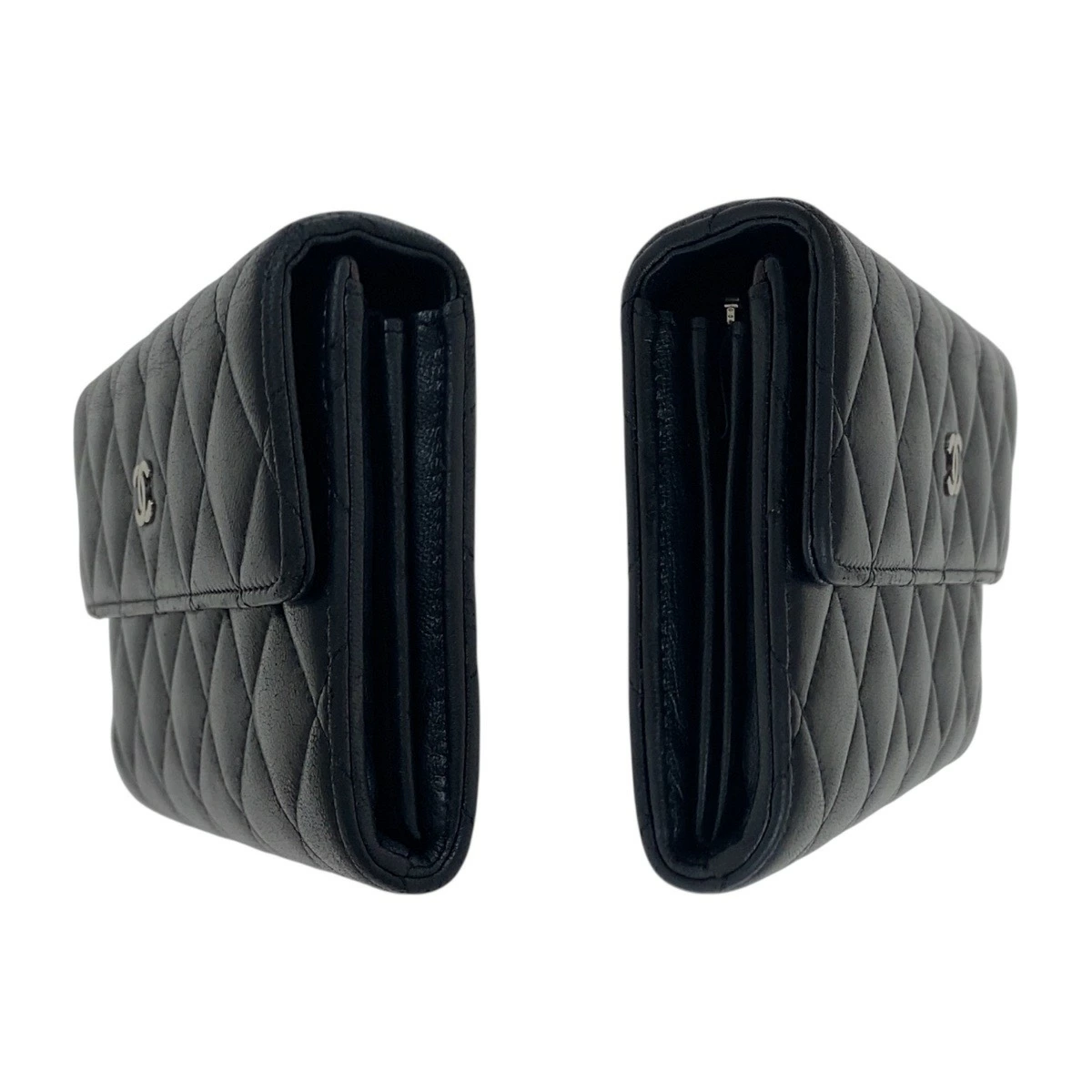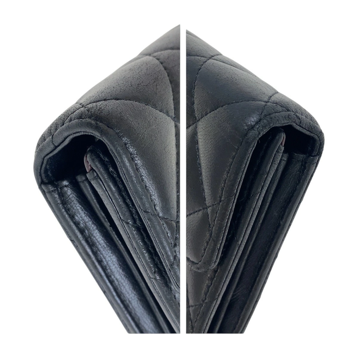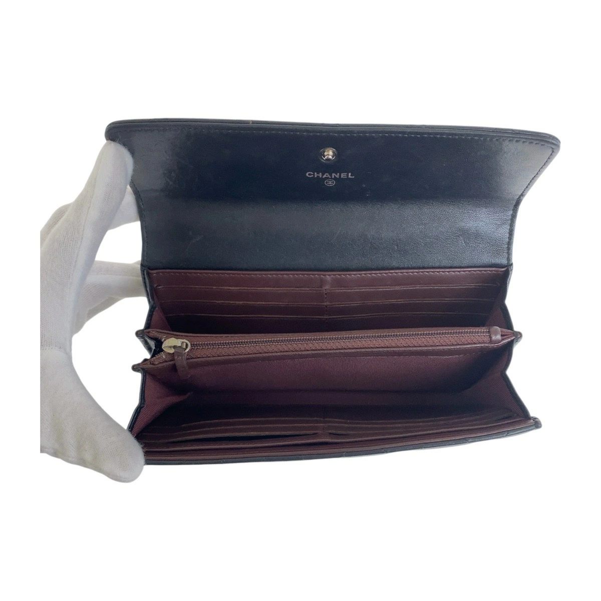 Excellent condition CHANEL Matelasse Coco Mark black lambskin long wallet with silver hardware, women's 504935 [pre-owned]