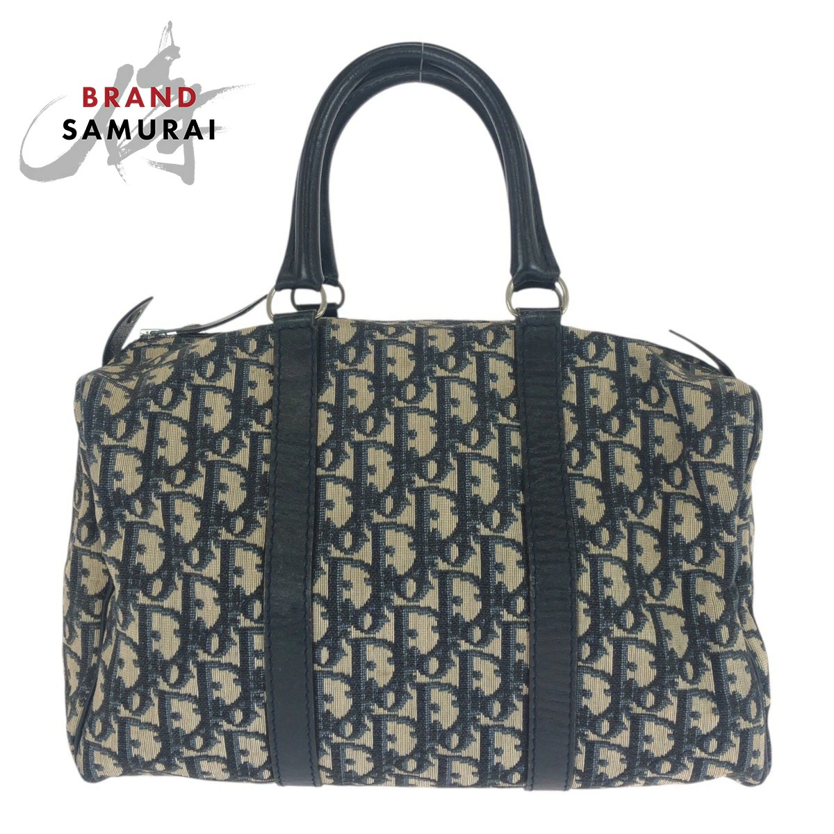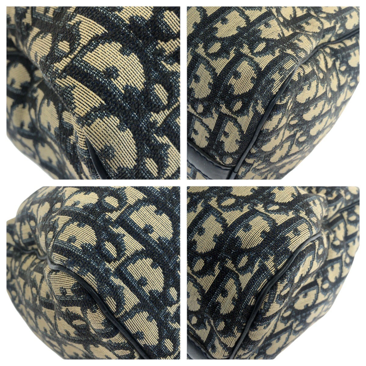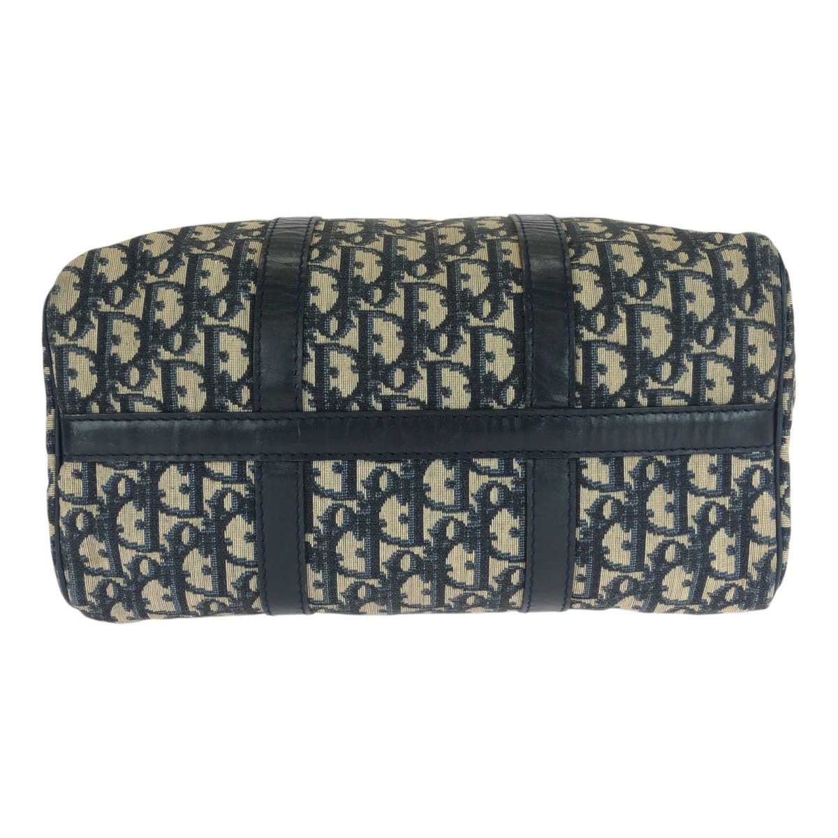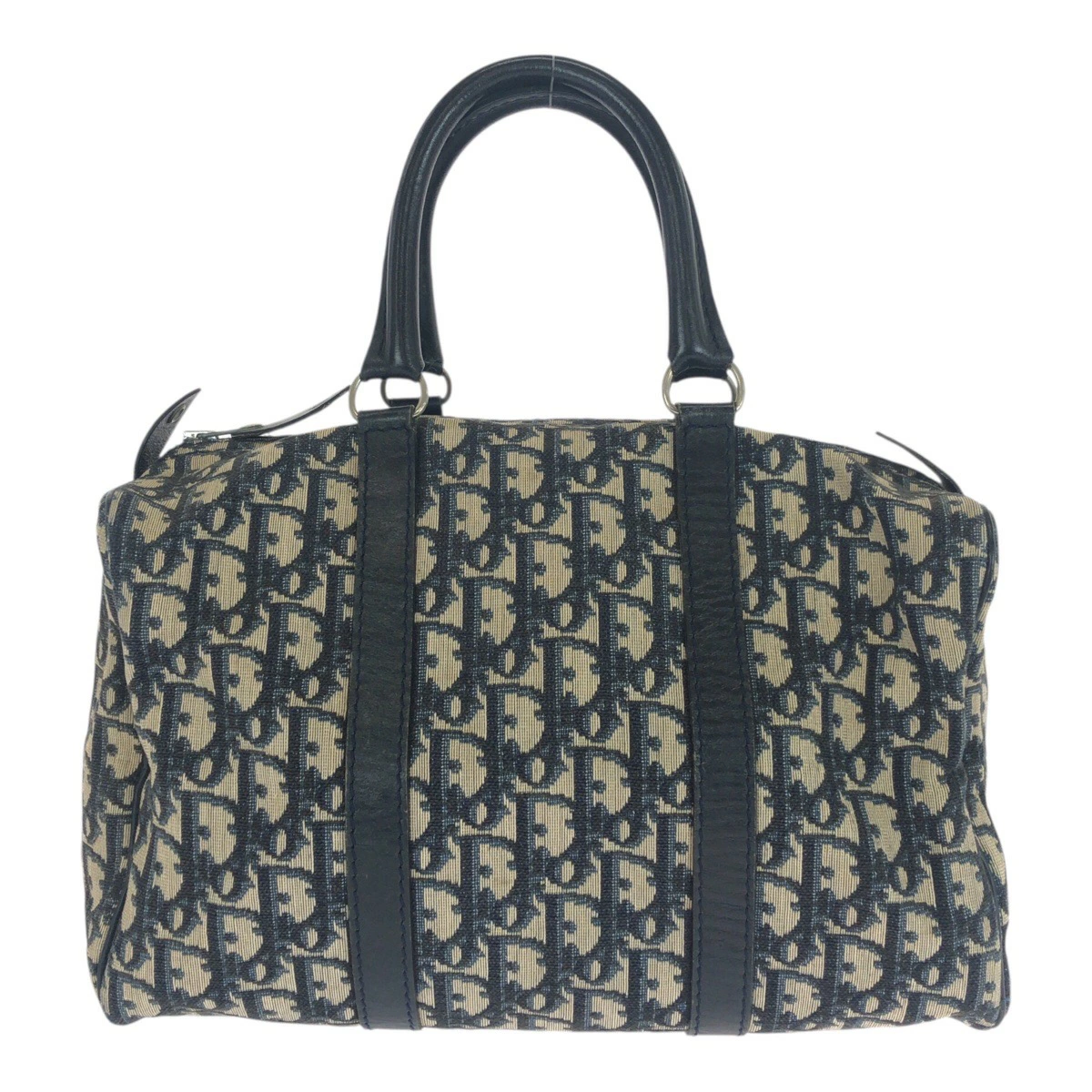 Excellent condition Dior Vintage Trotter navy/beige canvas/leather tote bag with silver hardware. Also available: Mini Boston bag for women. 505877. [Pre-owned]