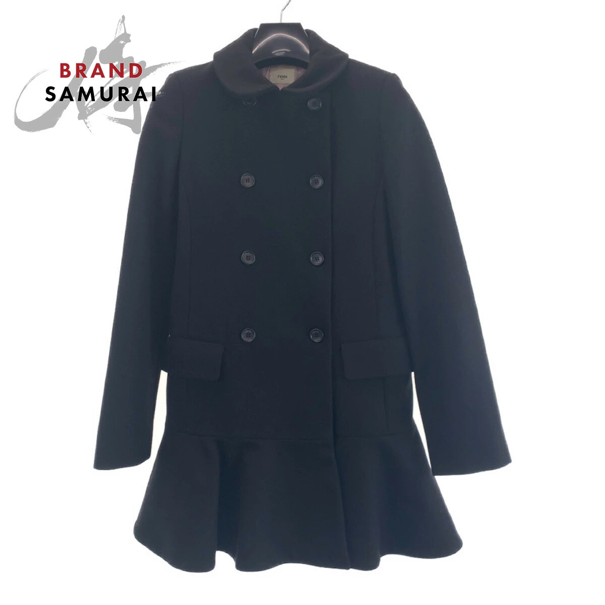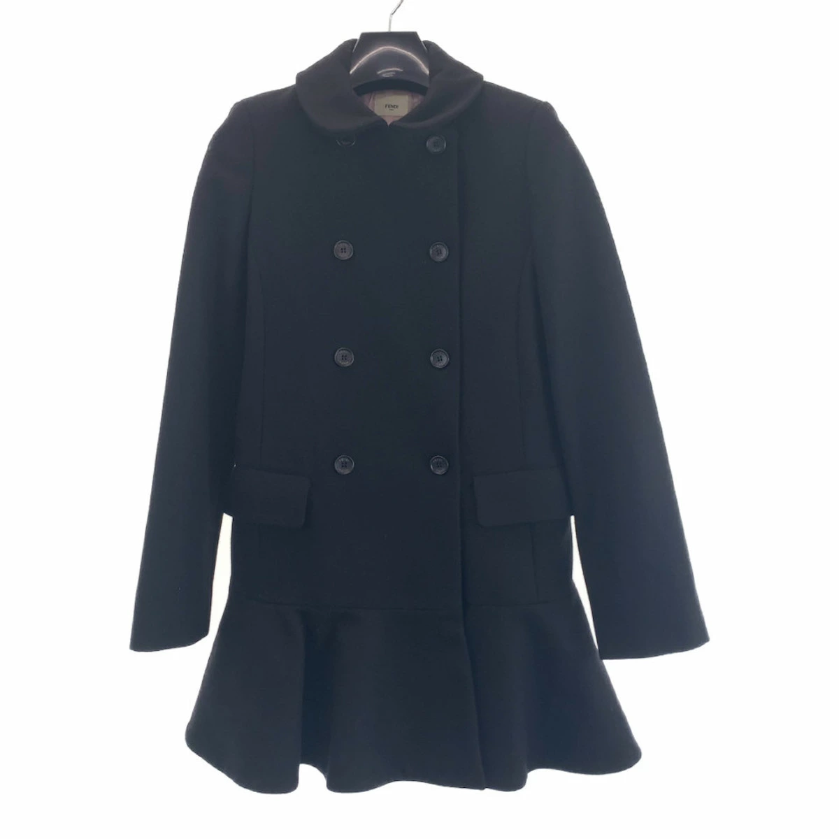 Excellent condition FENDI size 12 black wool/rayon peacoat, ruffled mid-length coat, half-length coat, kids' item 102260 [pre-owned]