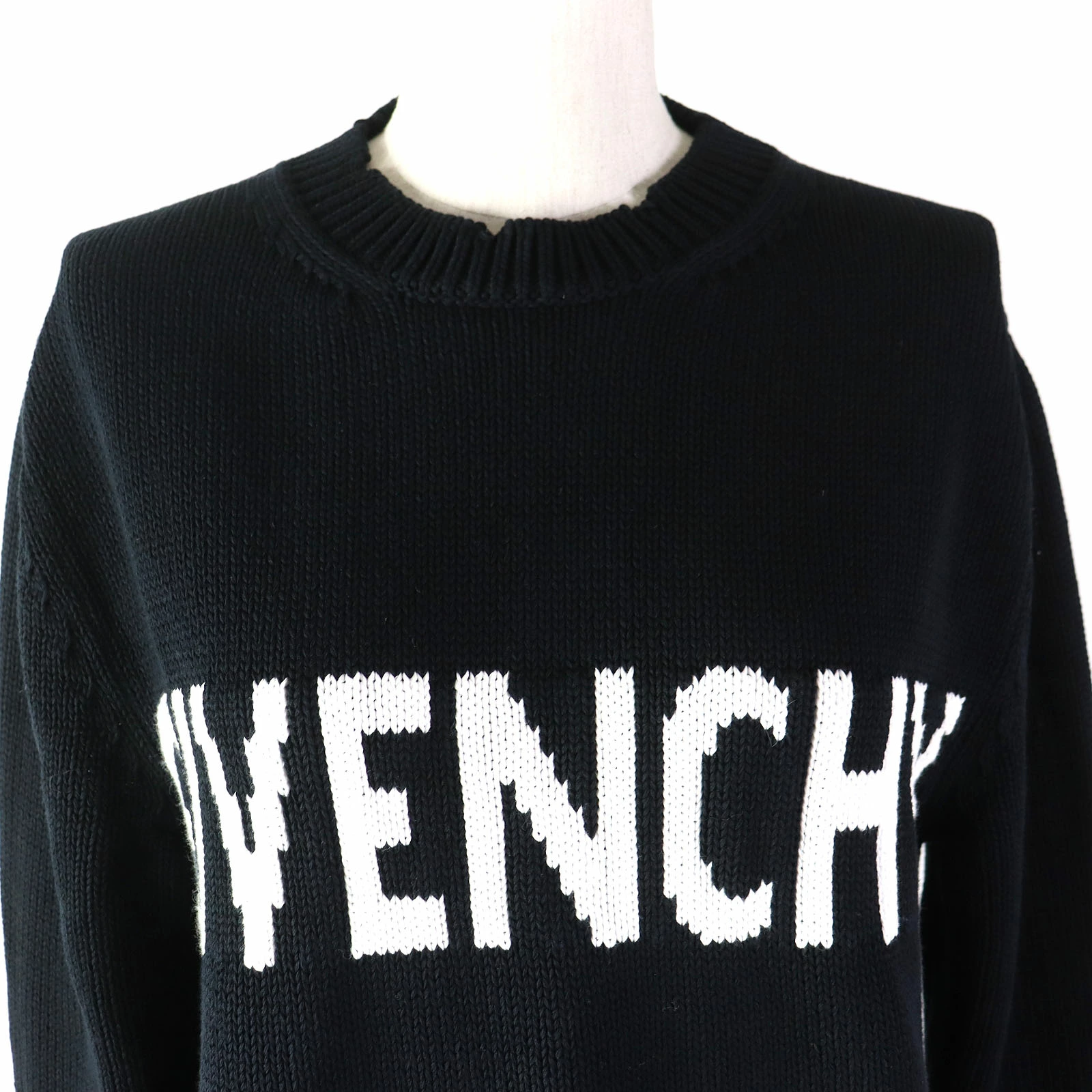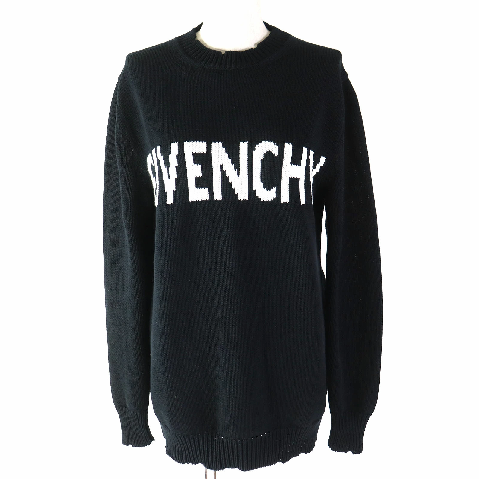 Excellent condition GIVENCHY BW907F4Z5B 100% cotton long-sleeve knit with logo, black, size S, made in Italy, authentic, women's [pre-owned]