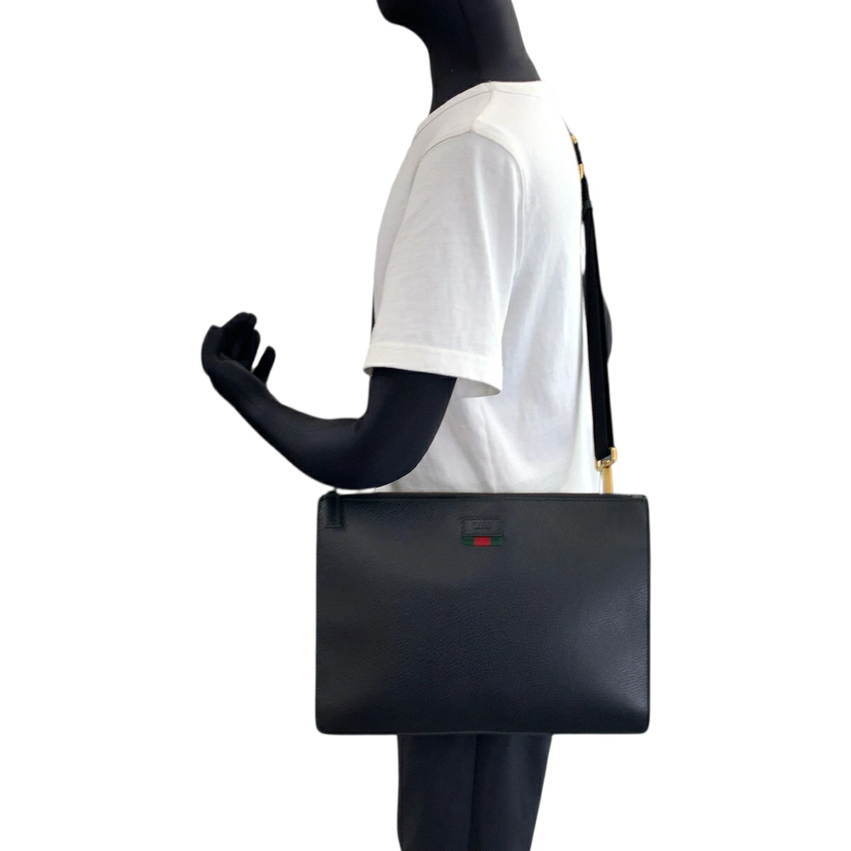 Excellent condition GUCCI Sherry Line black leather bag with gold hardware (450976), suitable for both shoulder and clutch use (503808). [Pre-owned]
