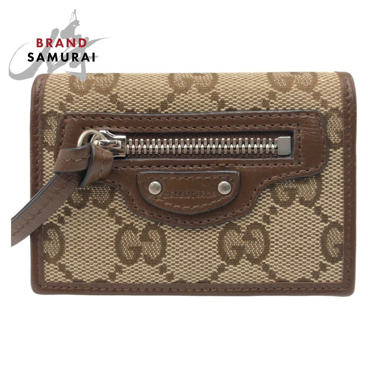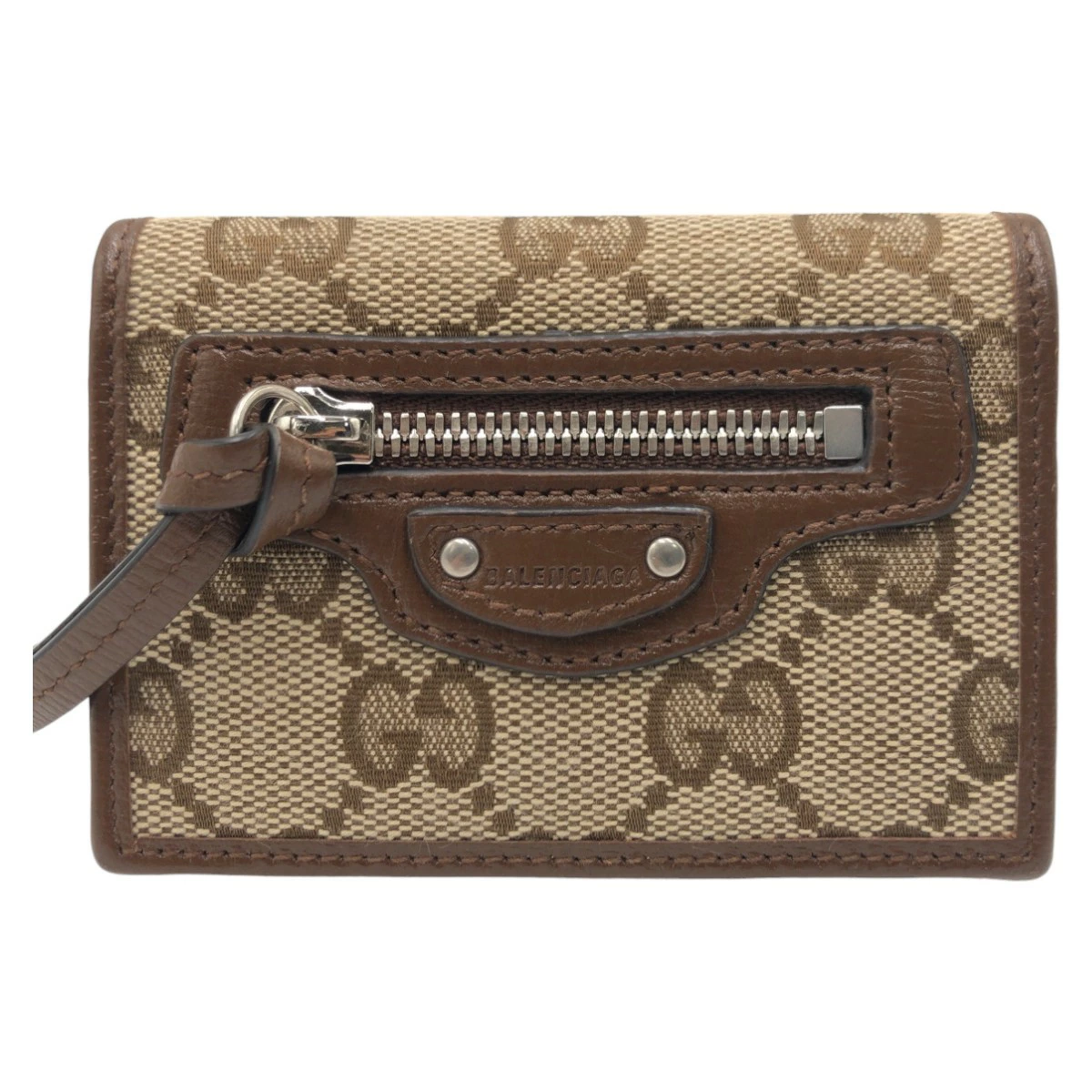 Excellent condition GUCCI Balenciaga collaboration The Hacker Project brown GG canvas compact wallet with silver hardware, women's 506016 [pre-owned]