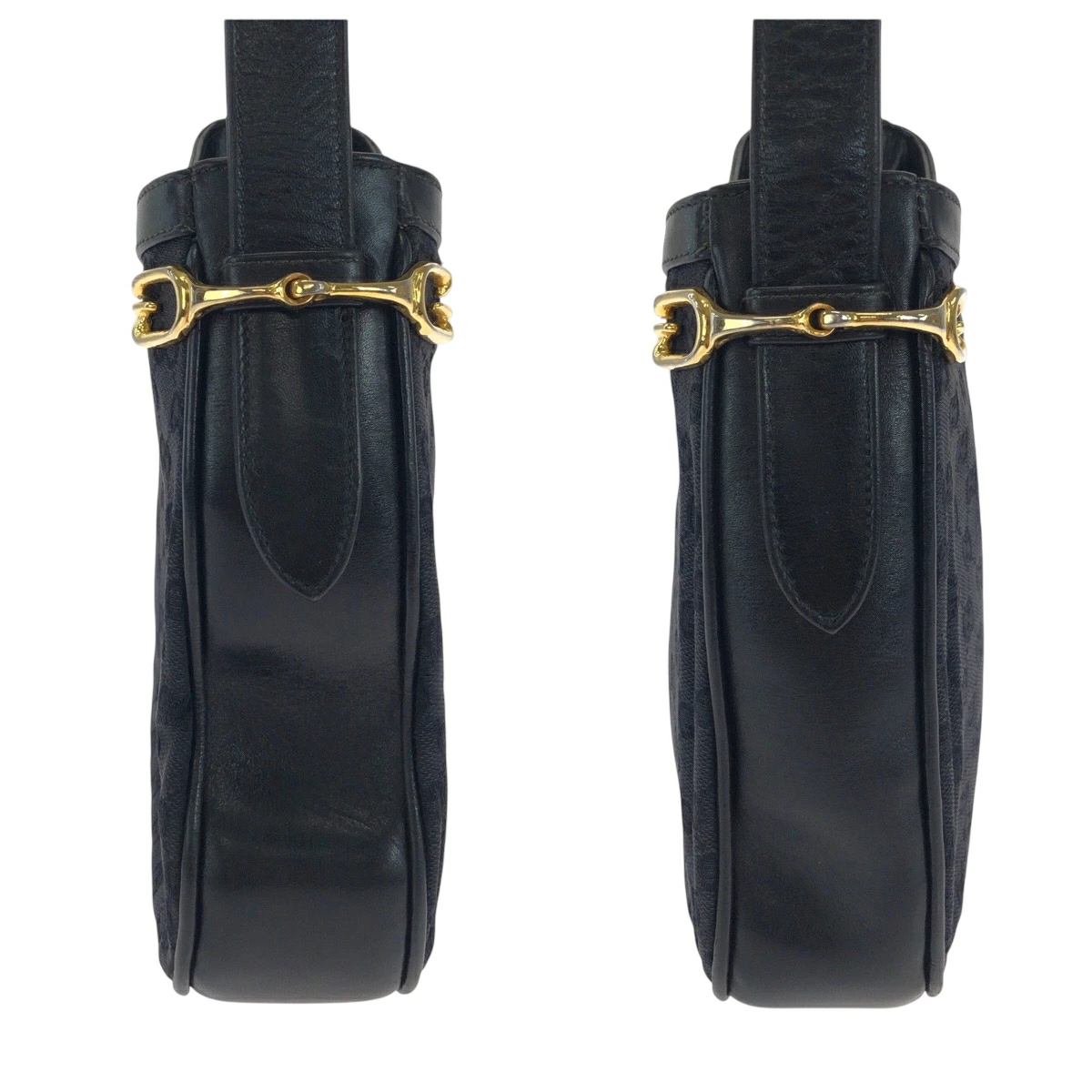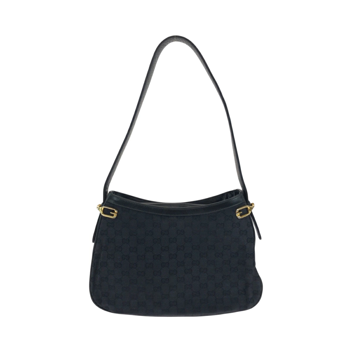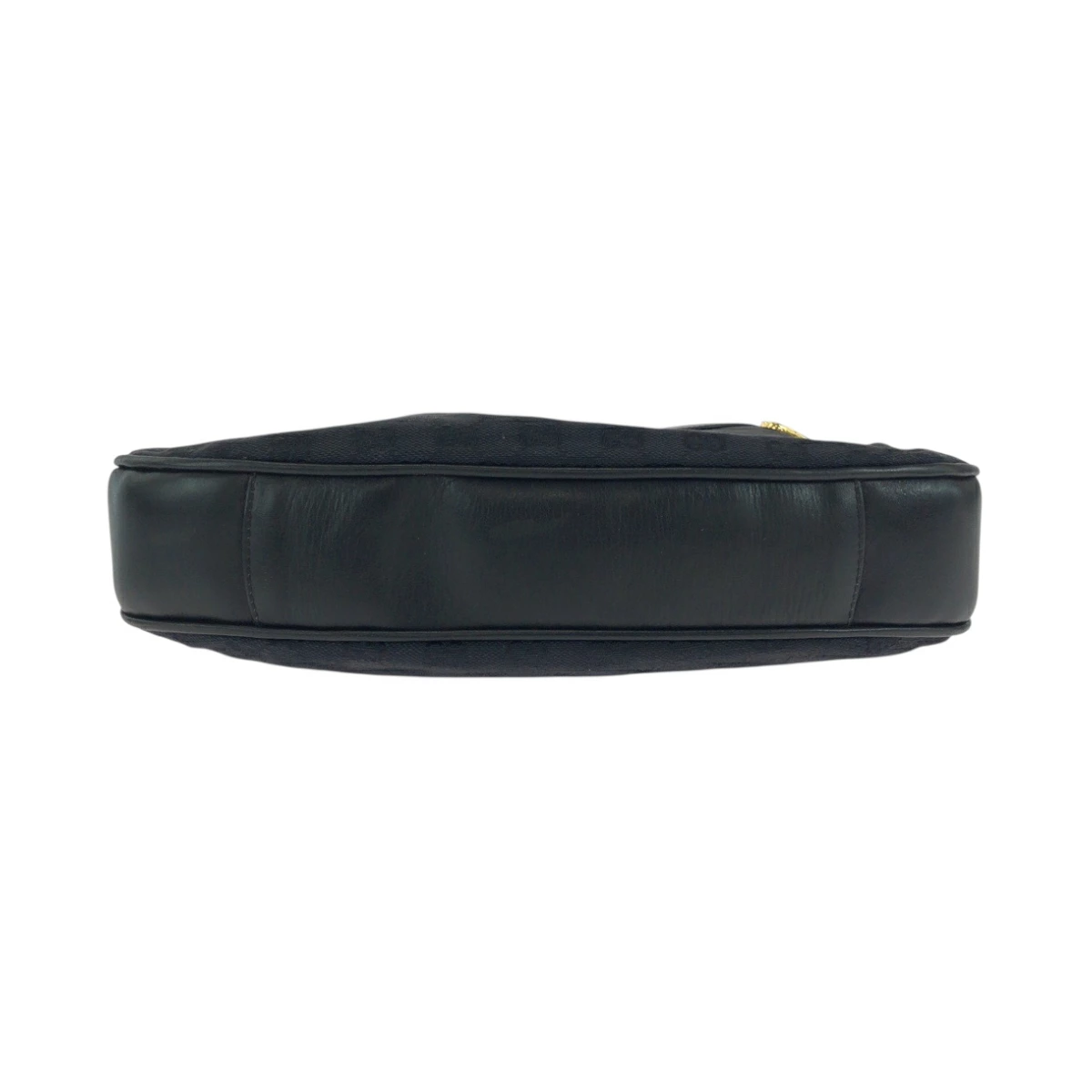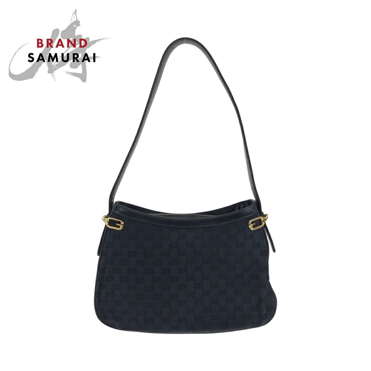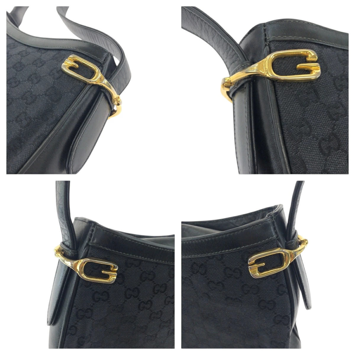 Excellent condition GUCCI black GG canvas hobo shoulder bag with gold hardware, women's, 503033 [pre-owned]