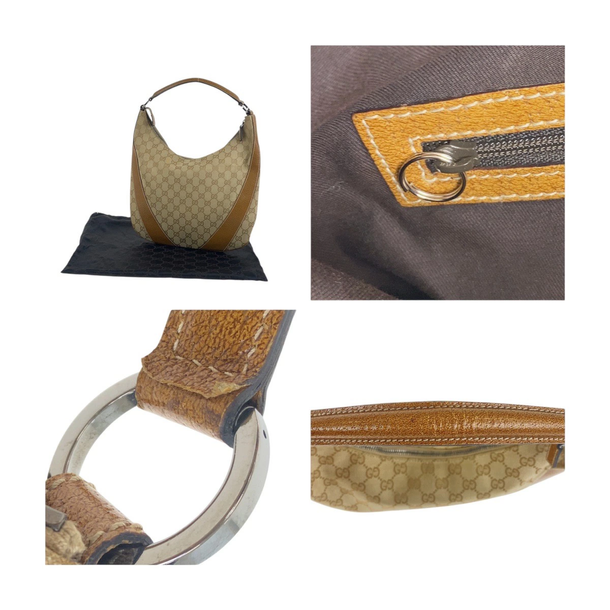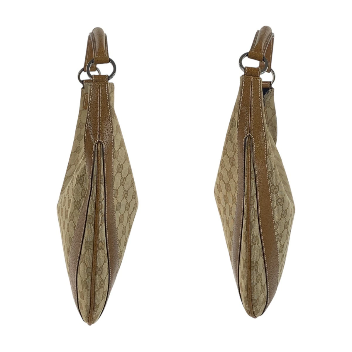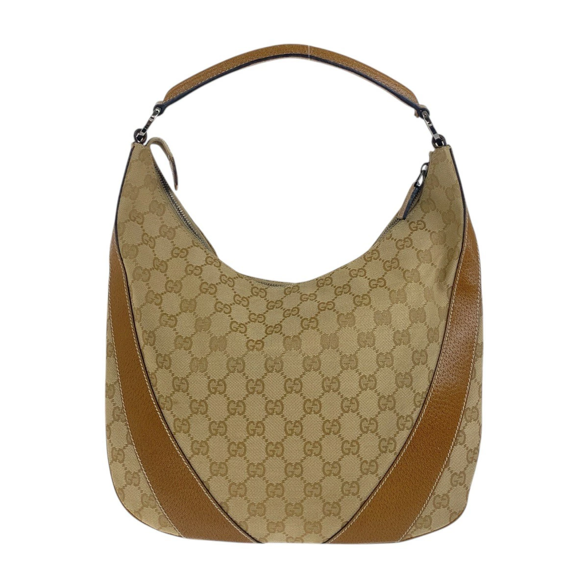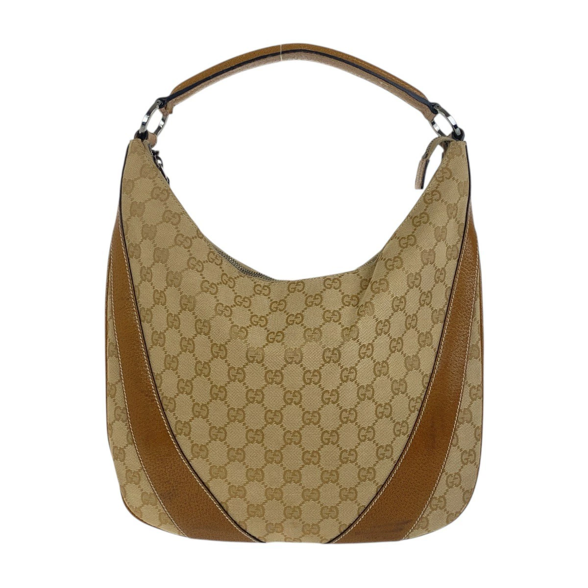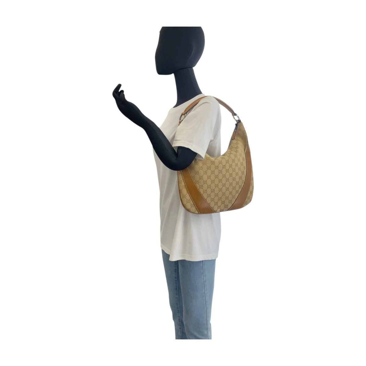 Excellent condition GUCCI Hobo Shoulder Bag (503870) in beige and brown with silver hardware and GG canvas/leather (124357) [Pre-owned]