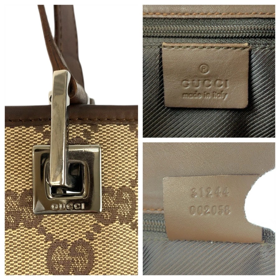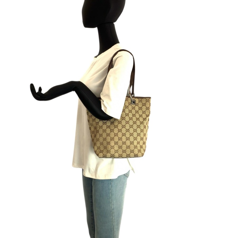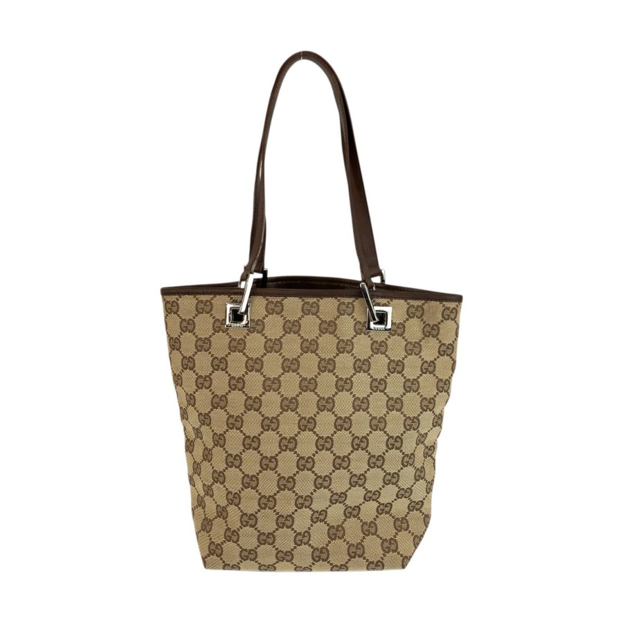 Excellent condition GUCCI tote bag/shoulder bag for women, beige/brown with silver hardware, GG canvas/leather, 31244, 601683 [Pre-owned]