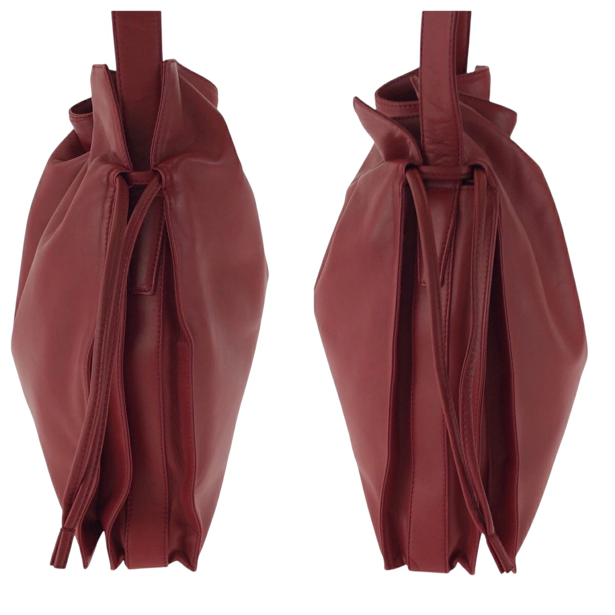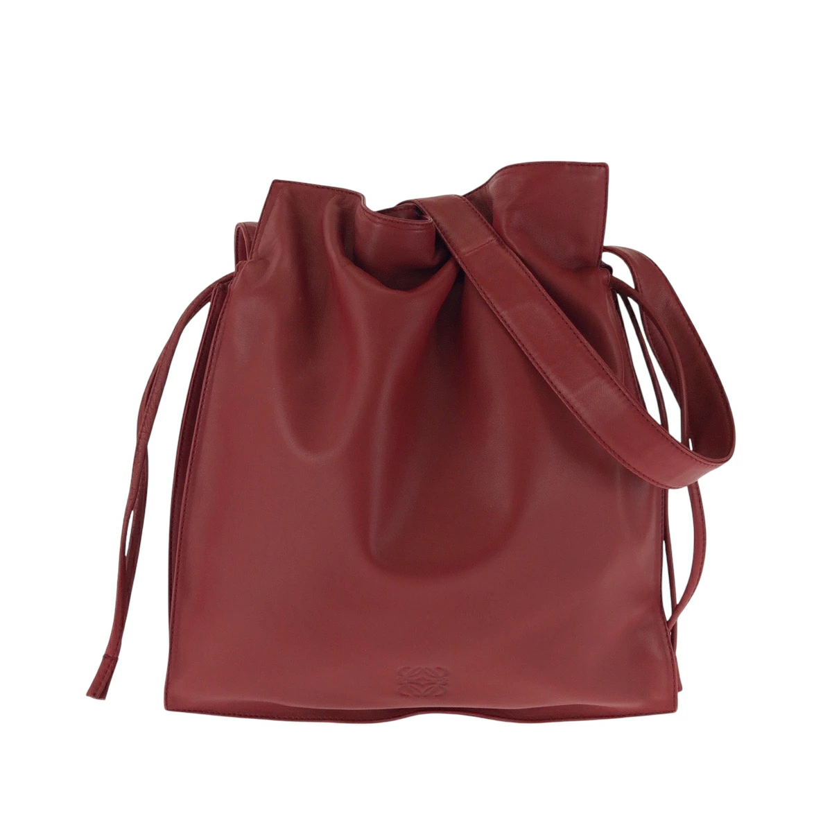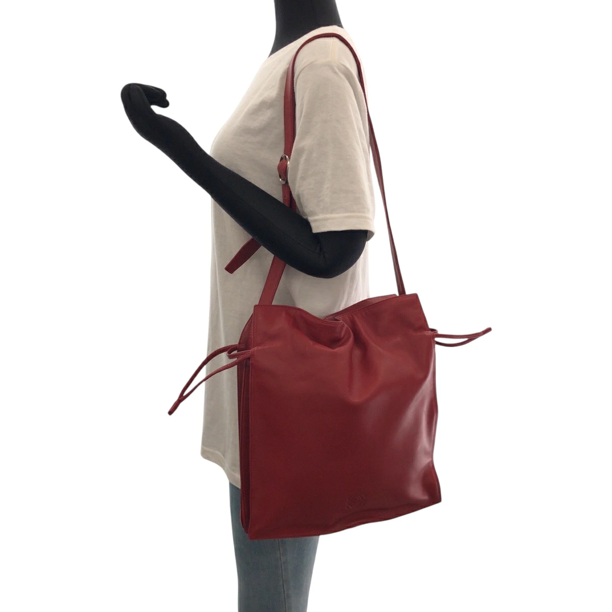 Excellent condition LOEWE Anagram Flamenco Red Leather Drawstring Shoulder Bag with Silver Hardware, Women's, 501284 [Pre-owned]