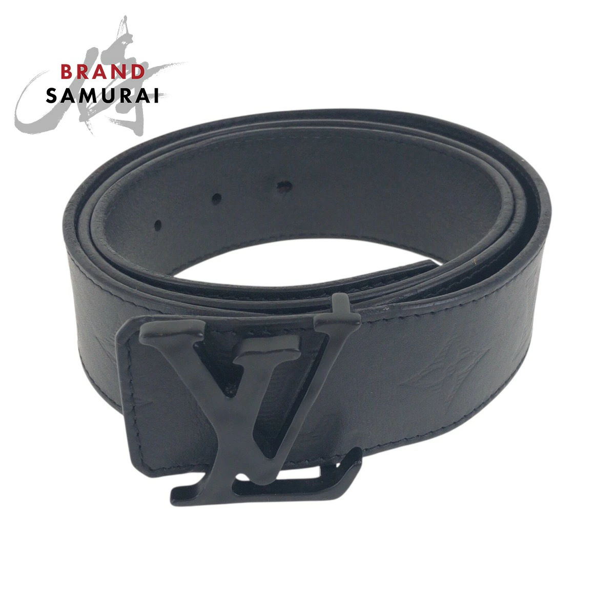 Excellent condition LOUIS VUITTON Monogram Shadow Santur 40-inch/100cm black leather belt M0220, unisex, men's, 504816 [pre-owned]