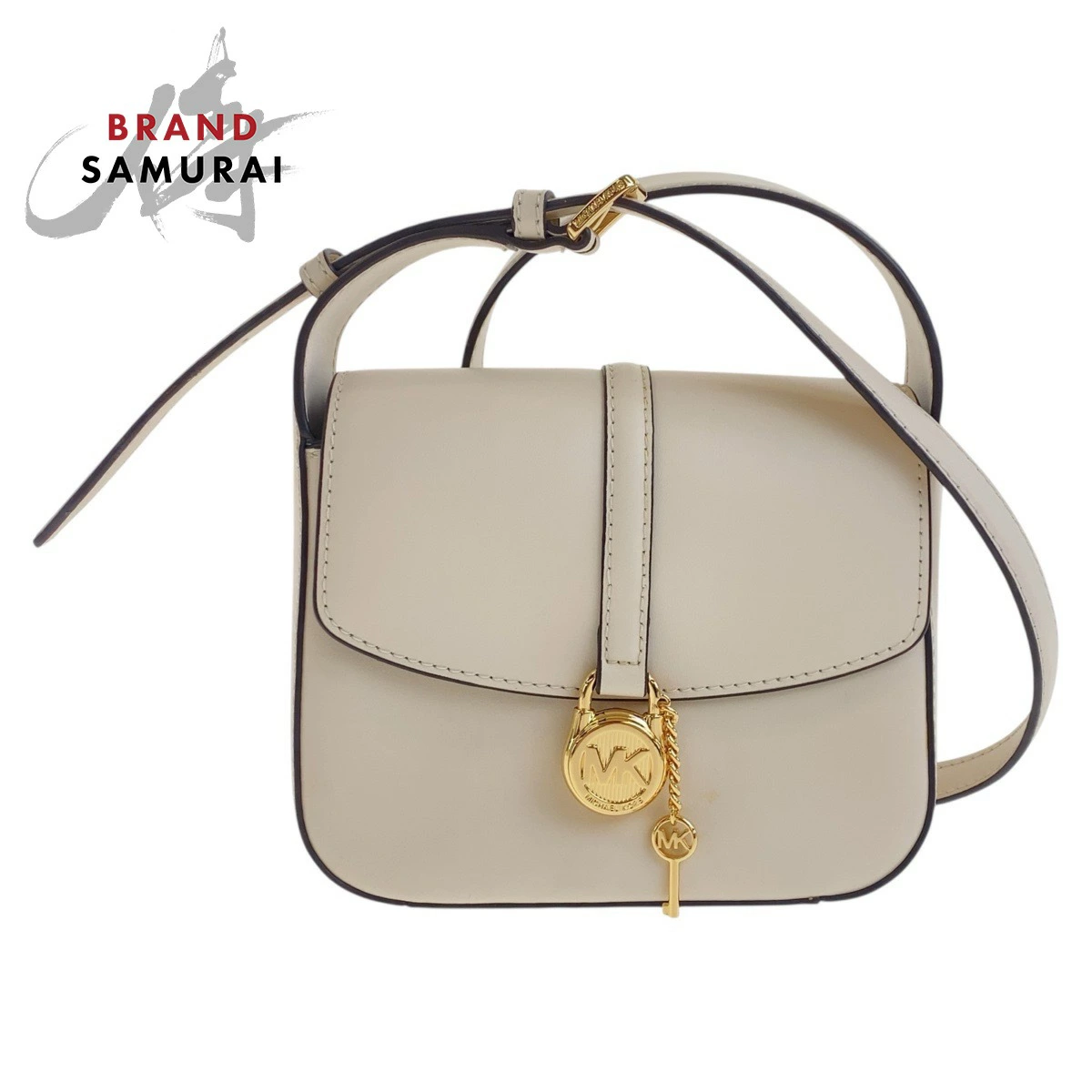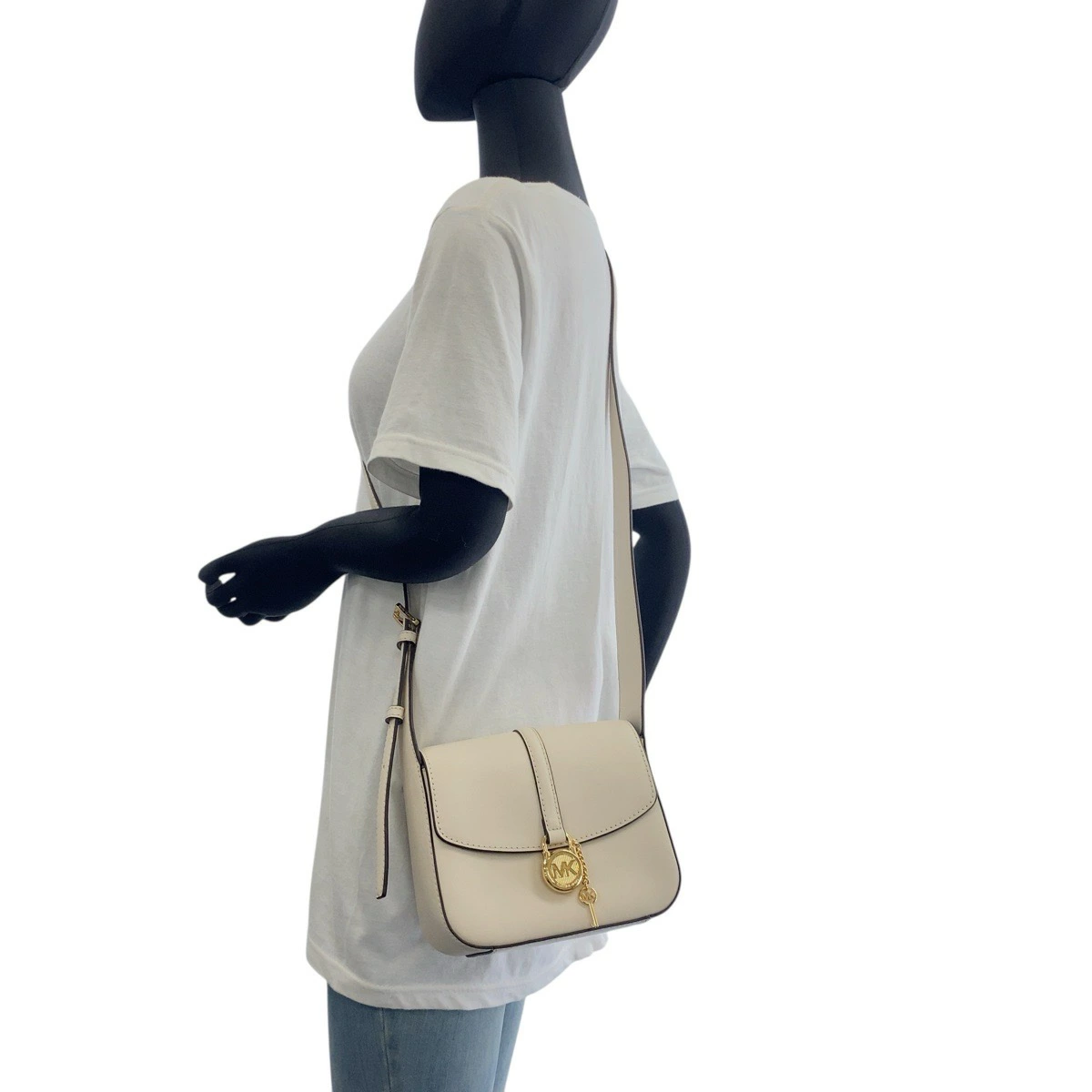 Excellent condition Michael Kors LYRA flap crossbody bag, small, in white and ivory with gold hardware and leather, 35F4G1YC1L, shoulder bag/pouch, women's, 504447. [Pre-owned]