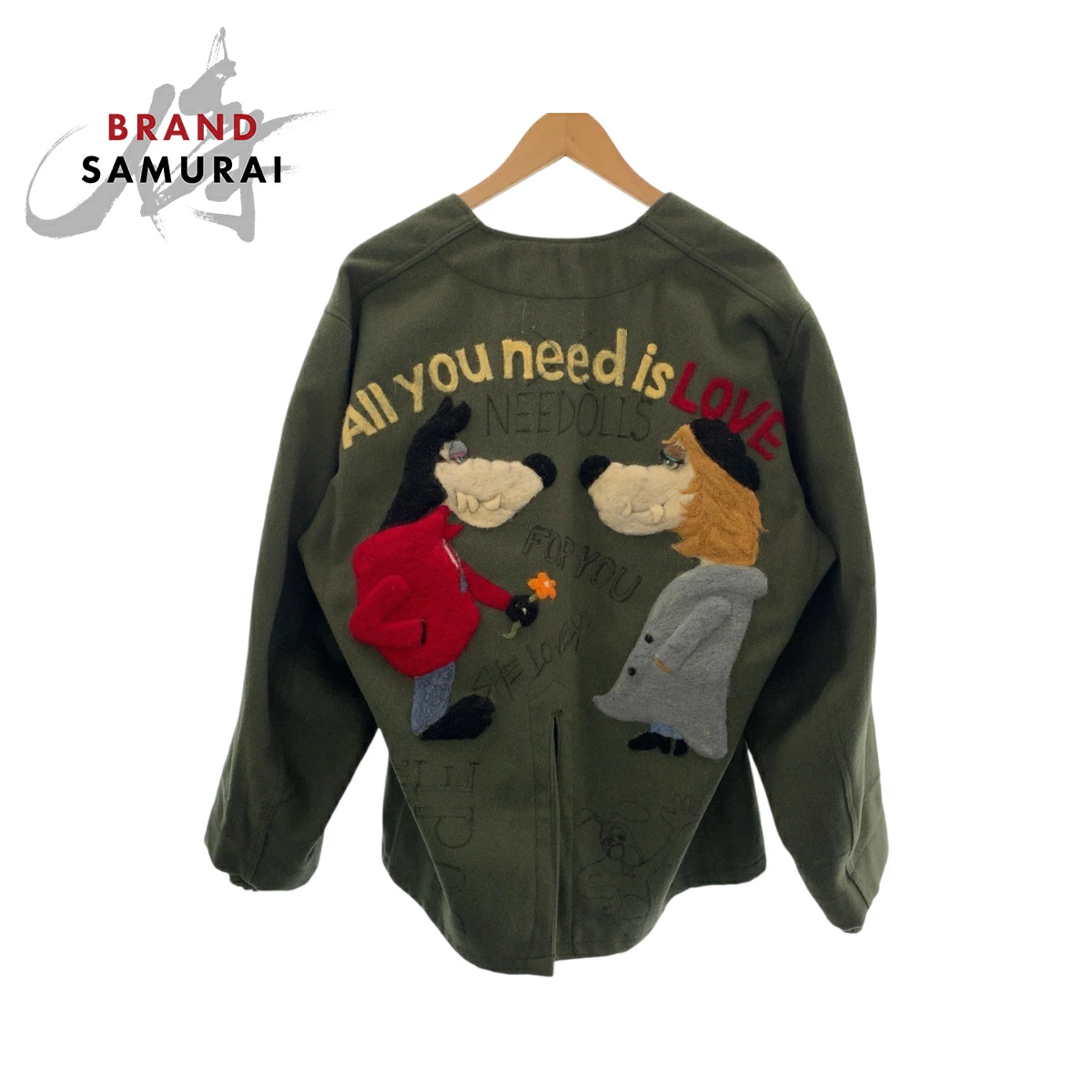 Excellent condition Needles Dog Khaki Multicolor Wool Collarless Jacket/Coverall Men's 503297 [Pre-owned]