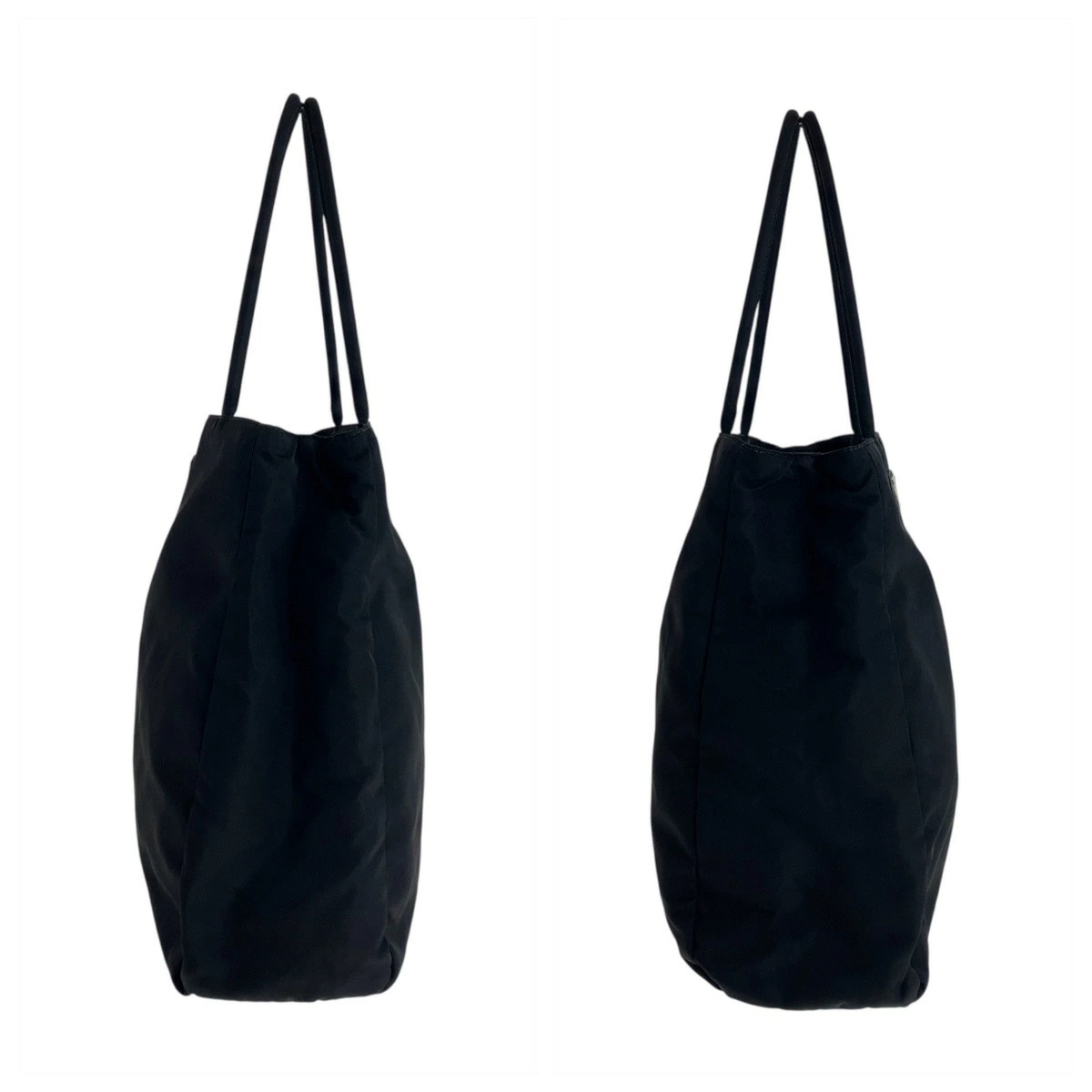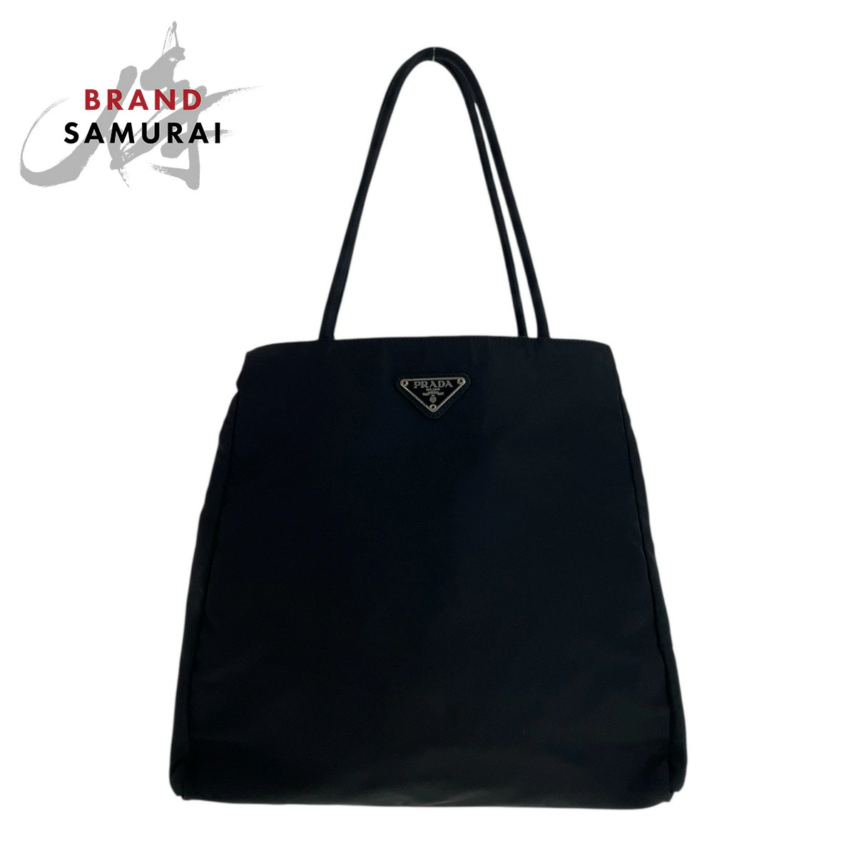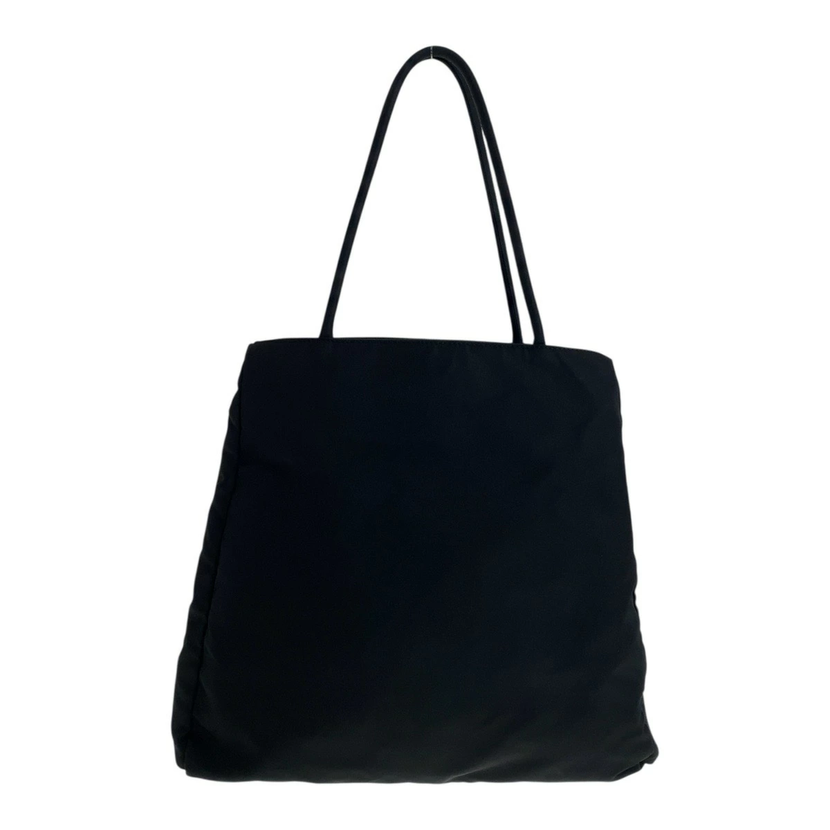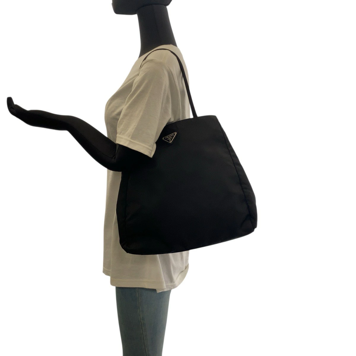 Excellent condition Prada Tessuto triangular logo plate in black with silver hardware. Nylon tote/shoulder bag, women's, 504246. [Pre-owned]