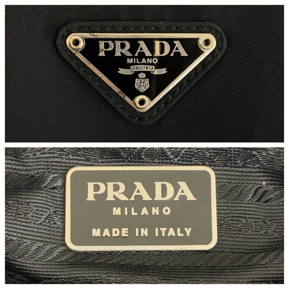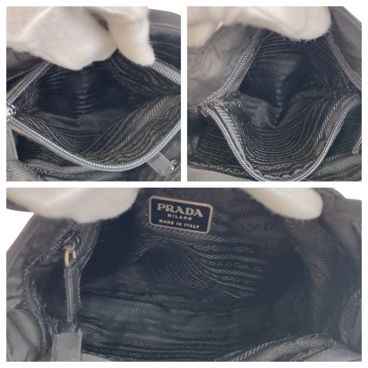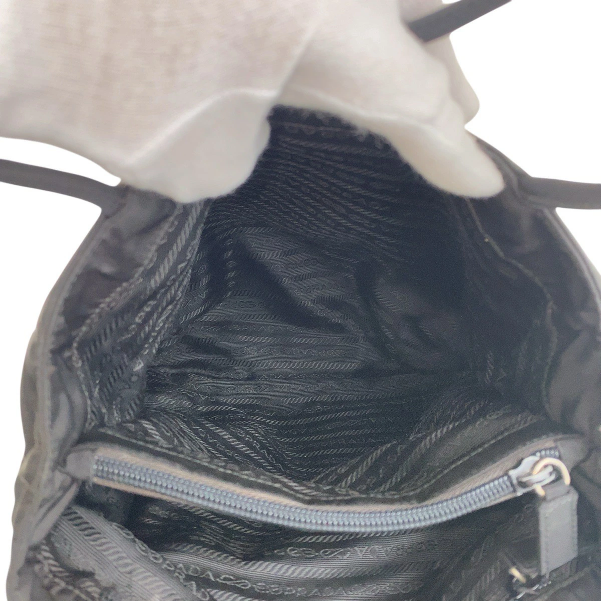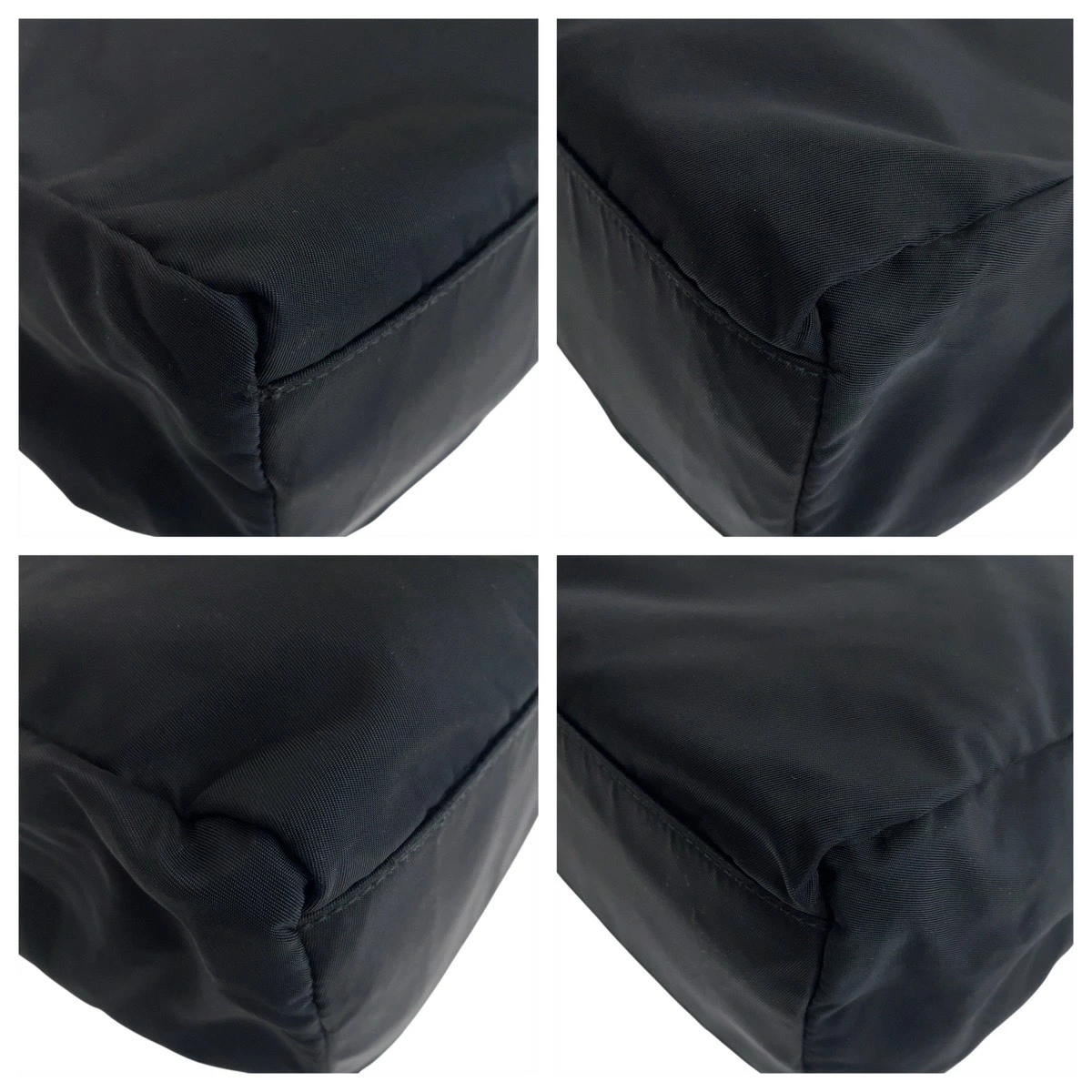 Excellent condition Prada Tessuto triangular logo plate in black with silver hardware. Nylon tote/shoulder bag, women's, 504246. [Pre-owned]