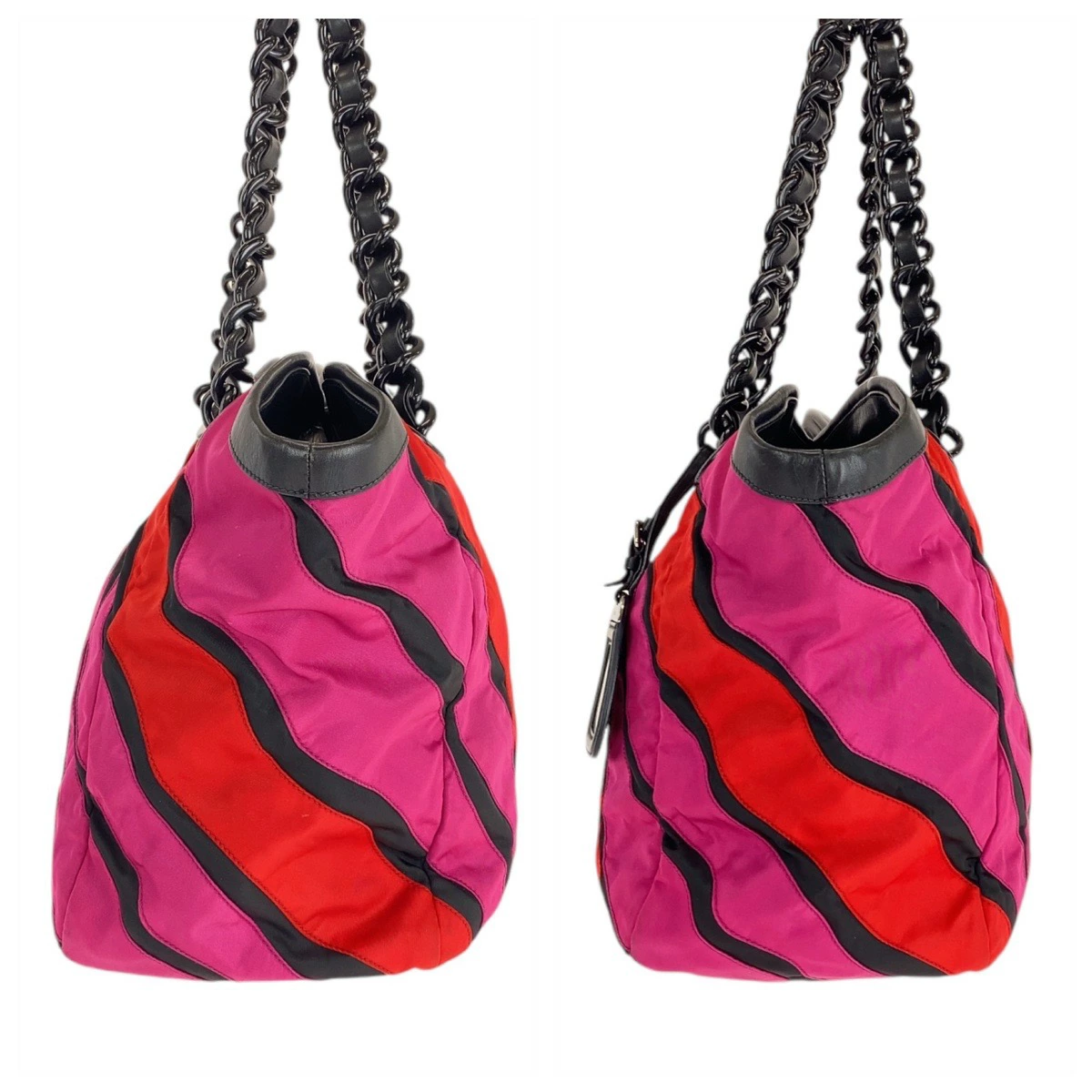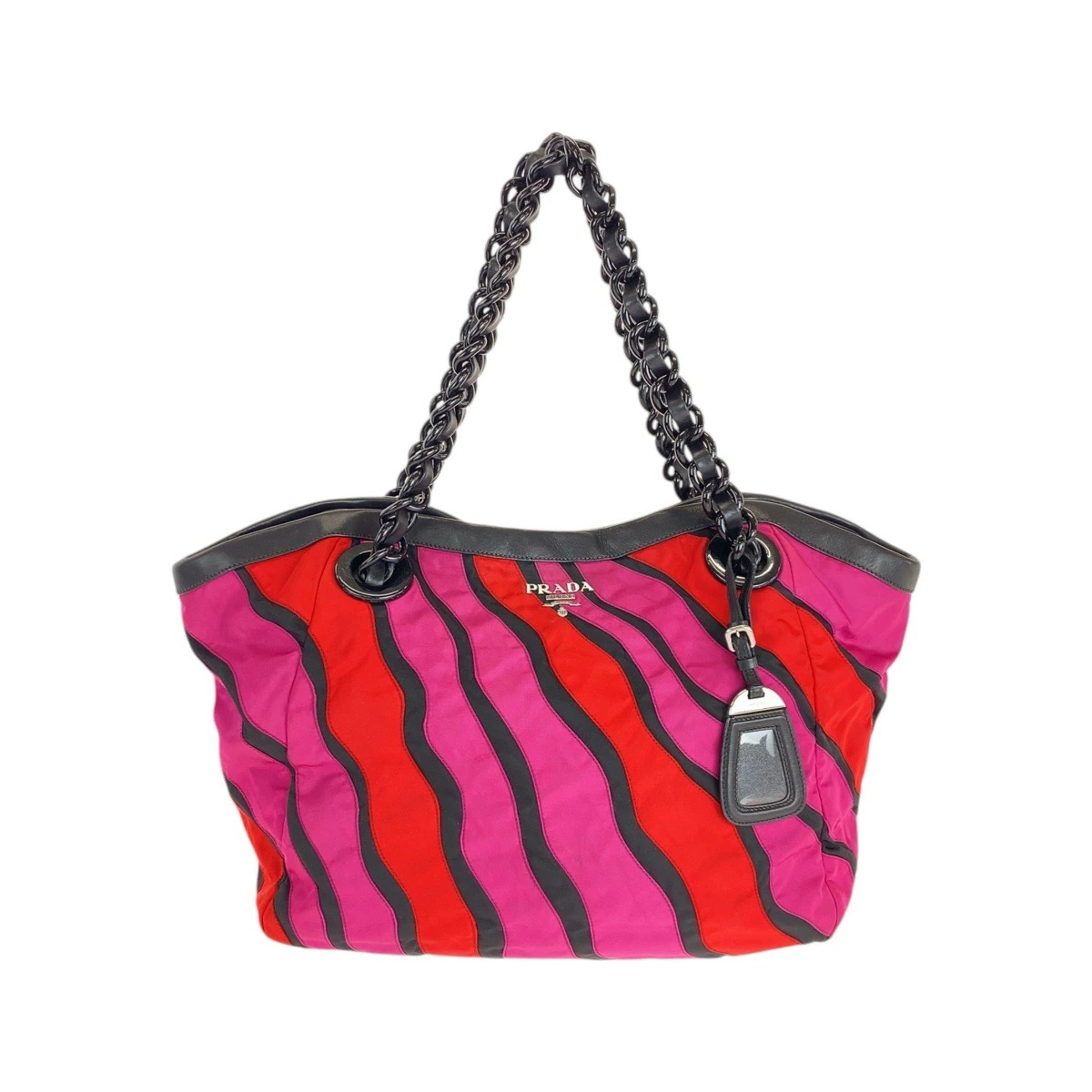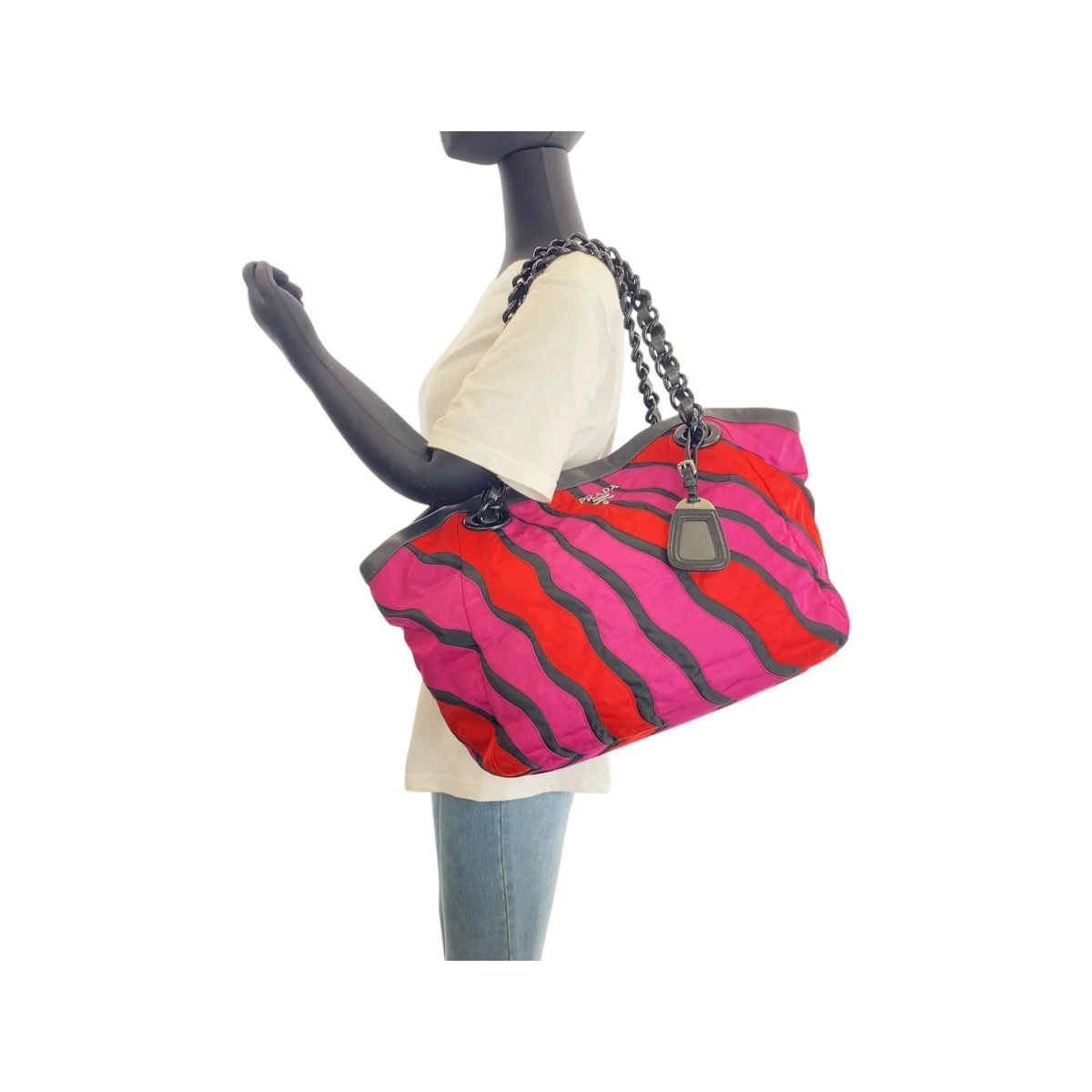 Excellent condition PRADA pink/red/silver hardware nylon/leather/plastic tote bag, handbag, women's, 500869 [pre-owned]