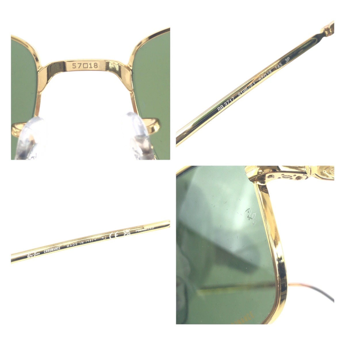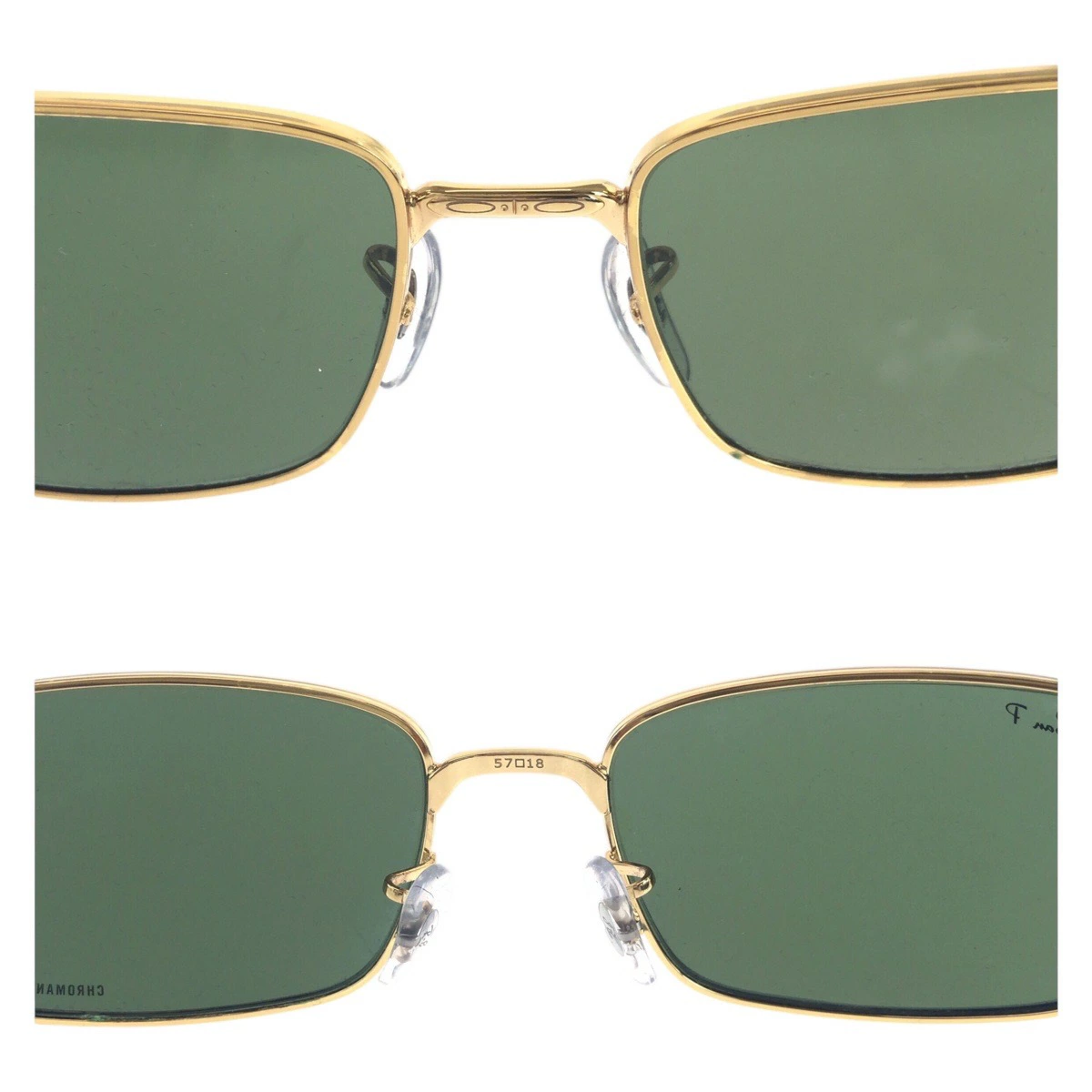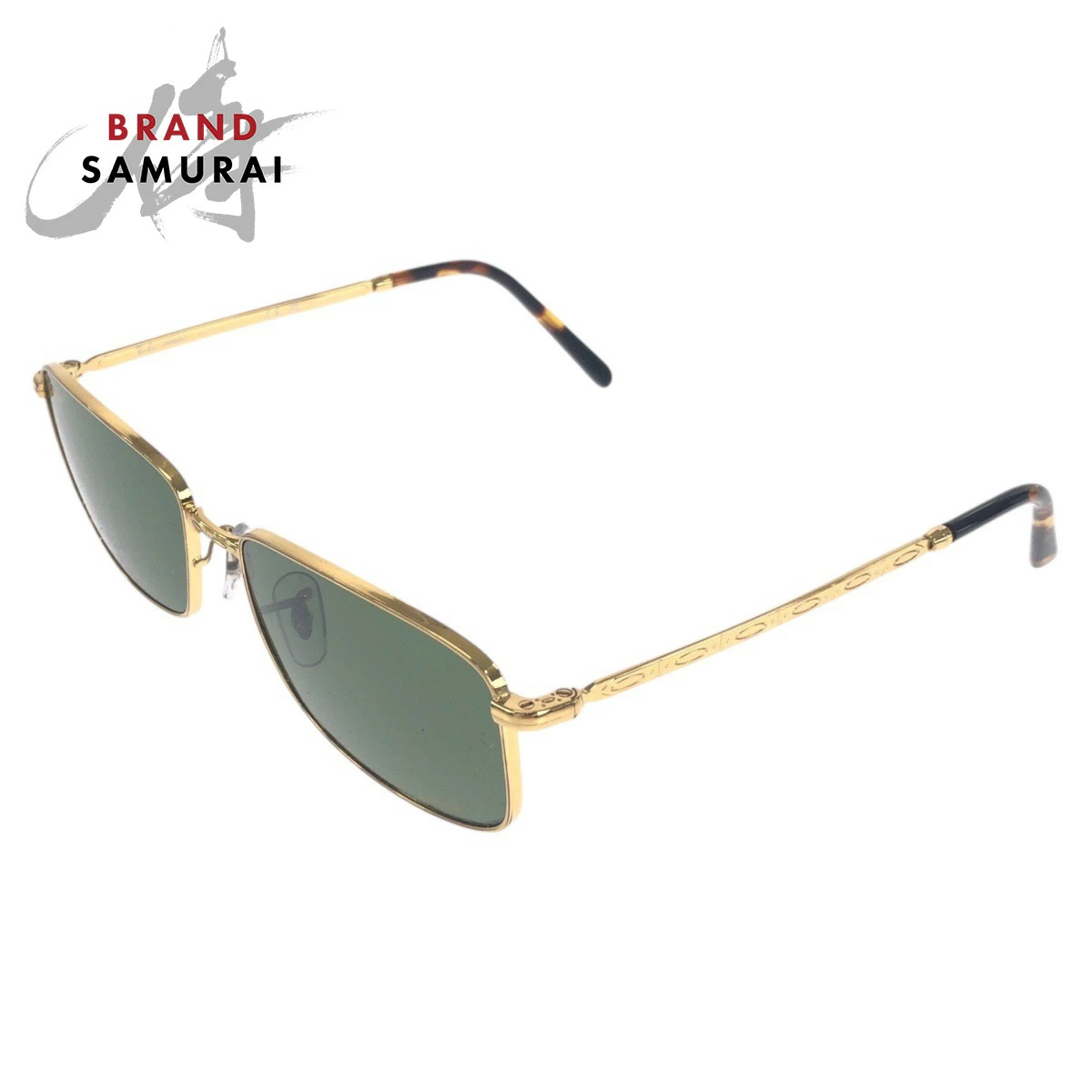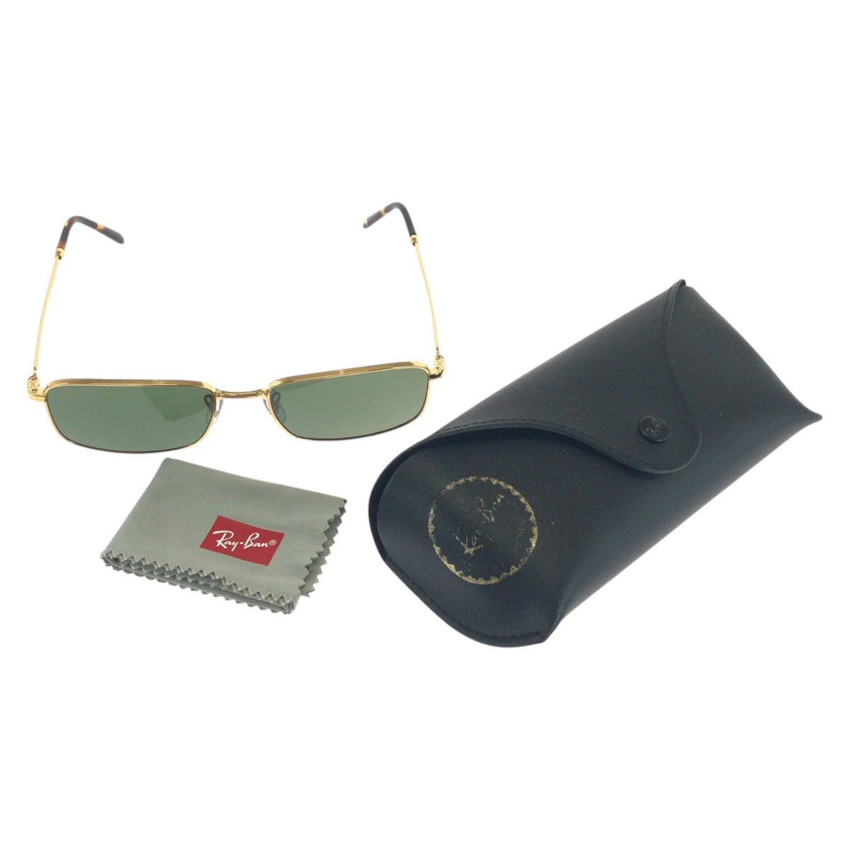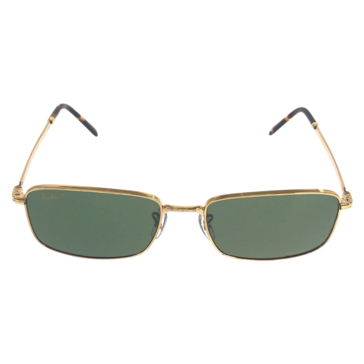 Excellent condition Ray-Ban gold and green alloy RB3717 square sunglasses for men, model 504280 [pre-owned]